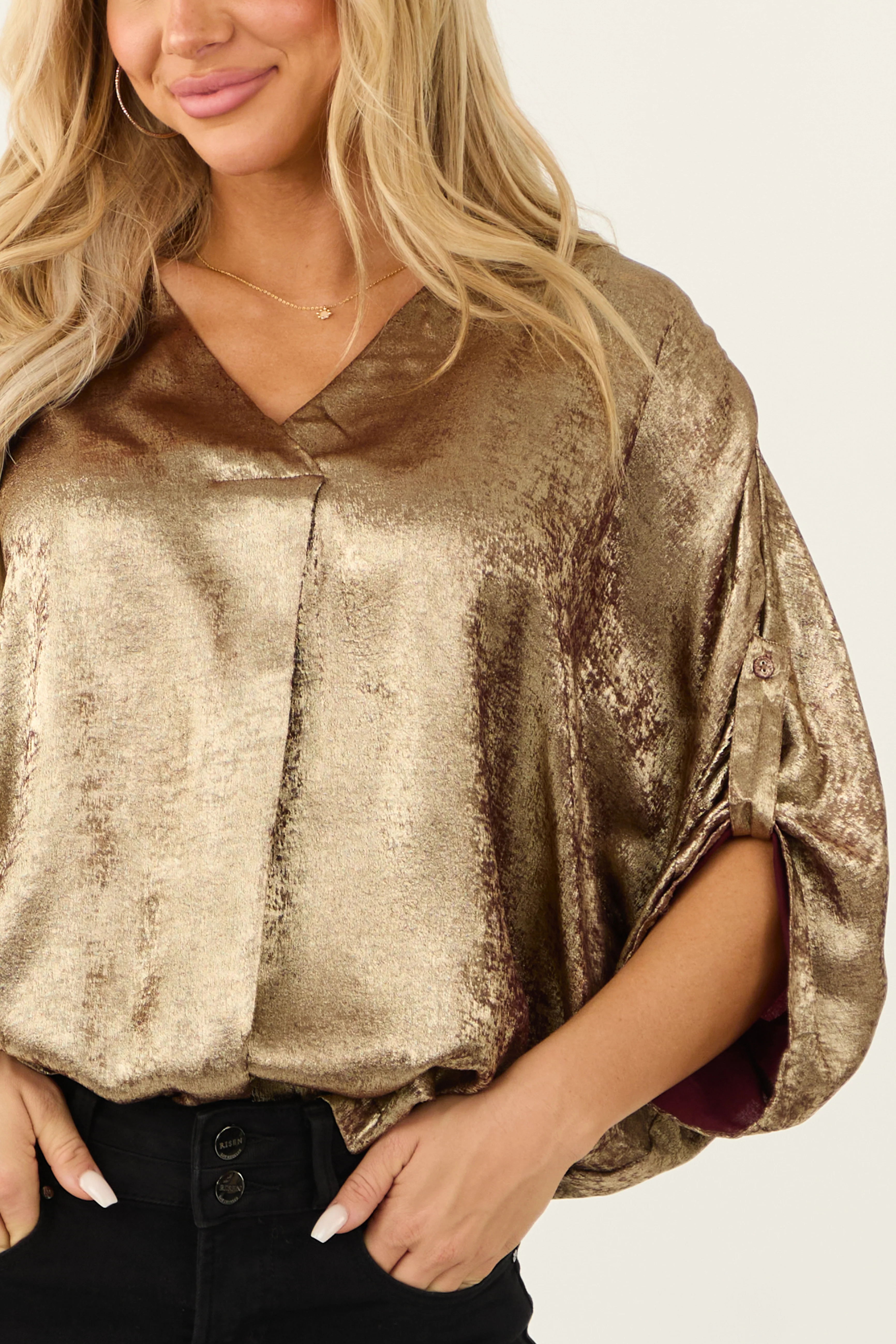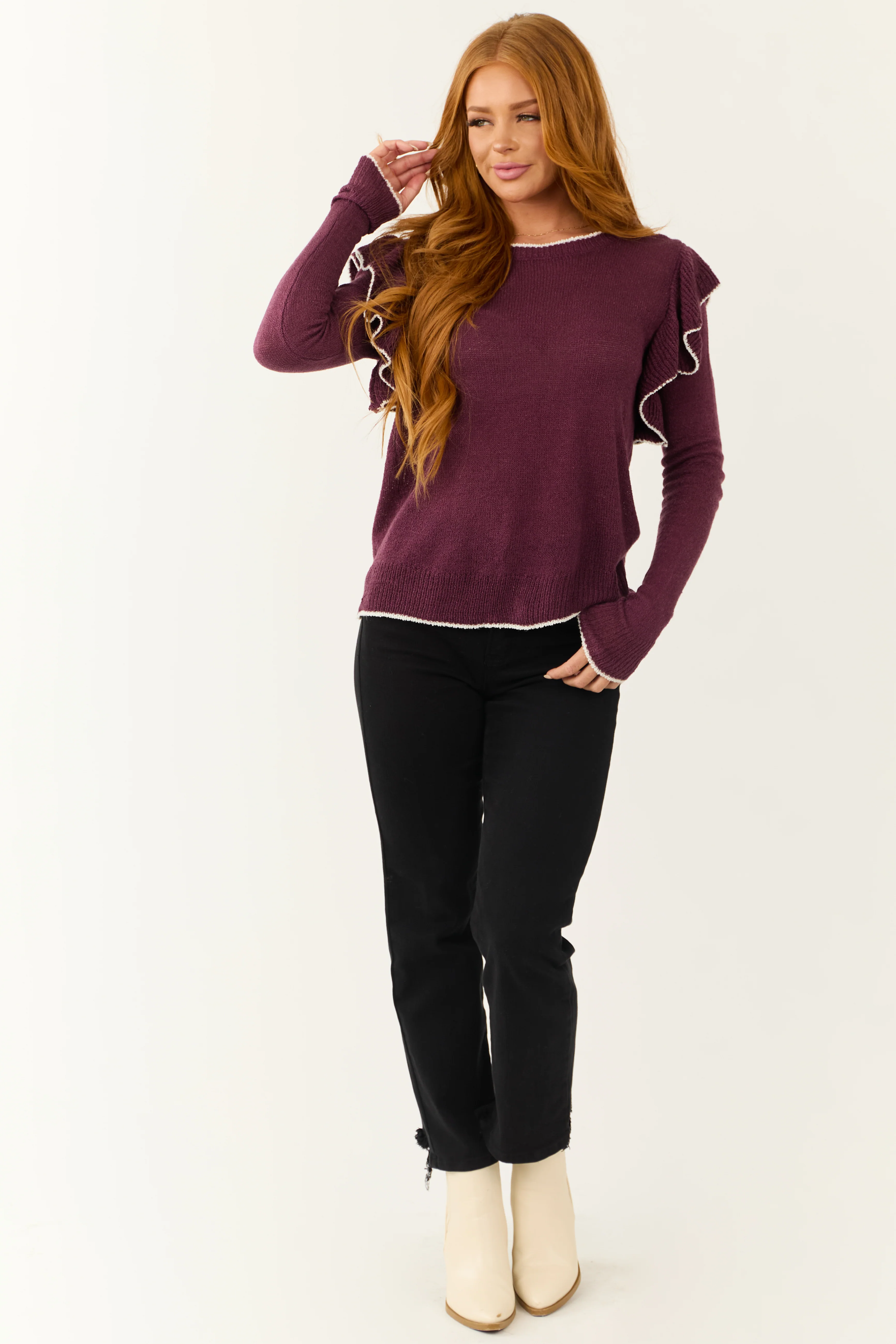 Plum Ruffle Long Sleeve Contrast Trim Top