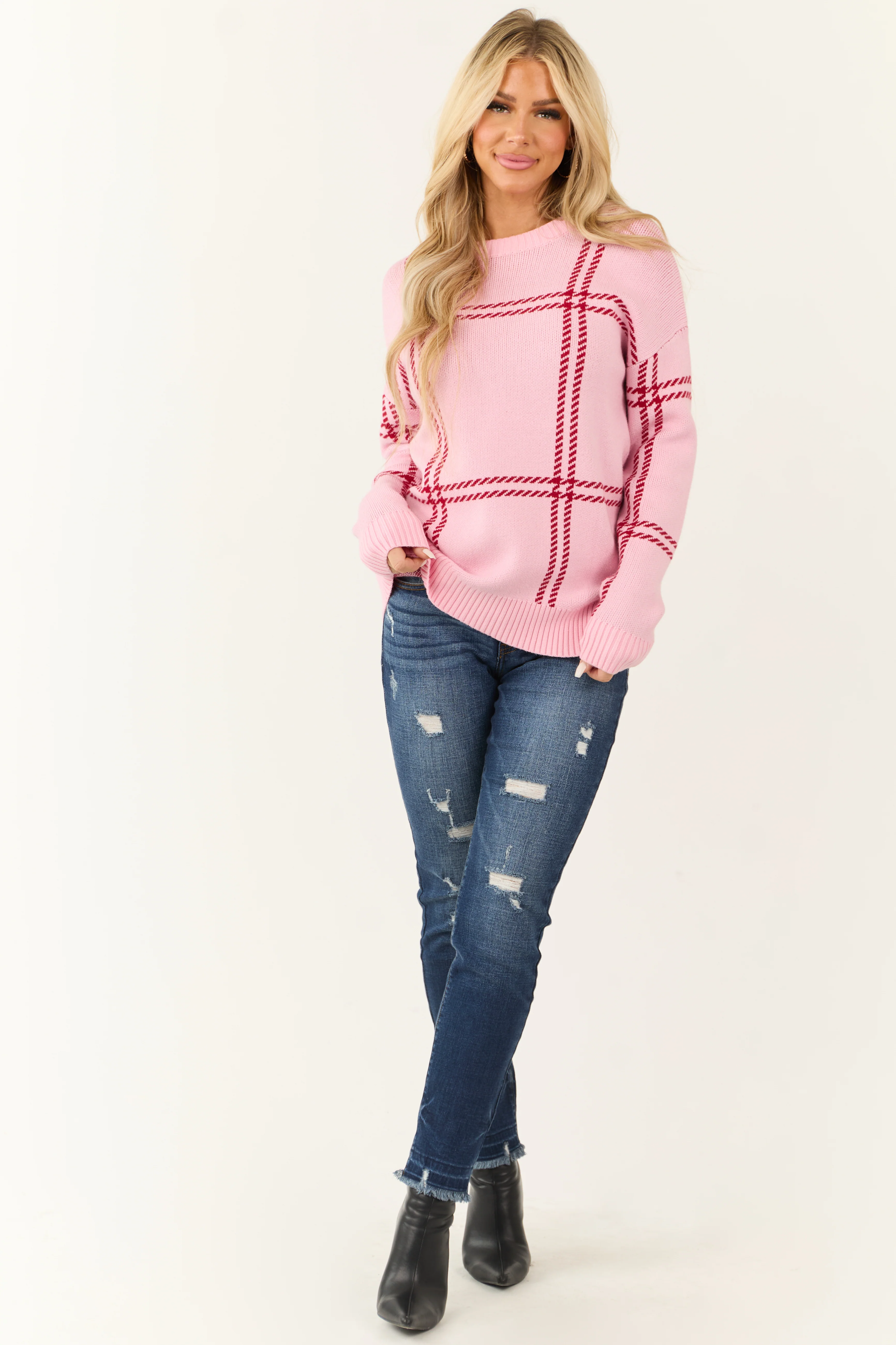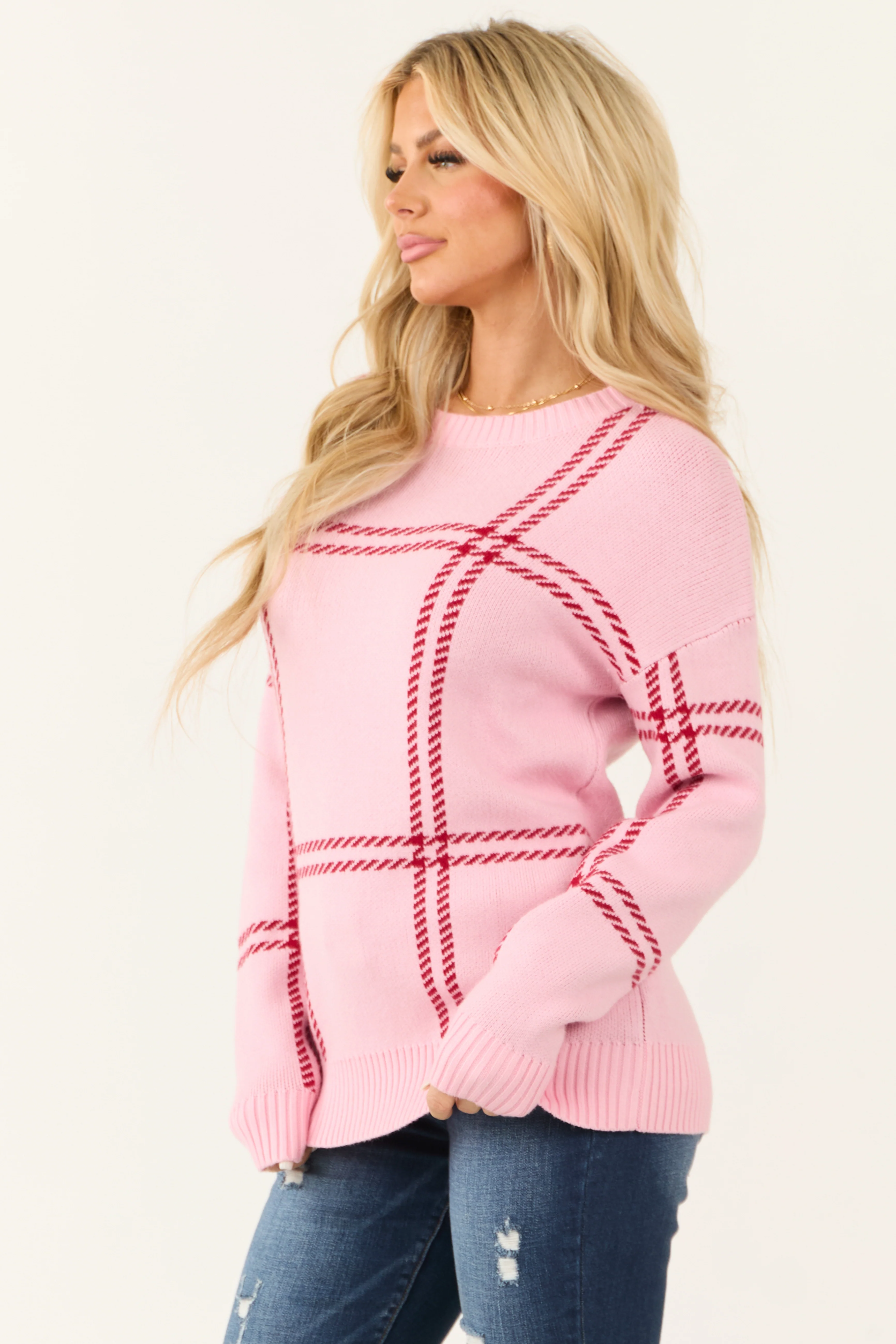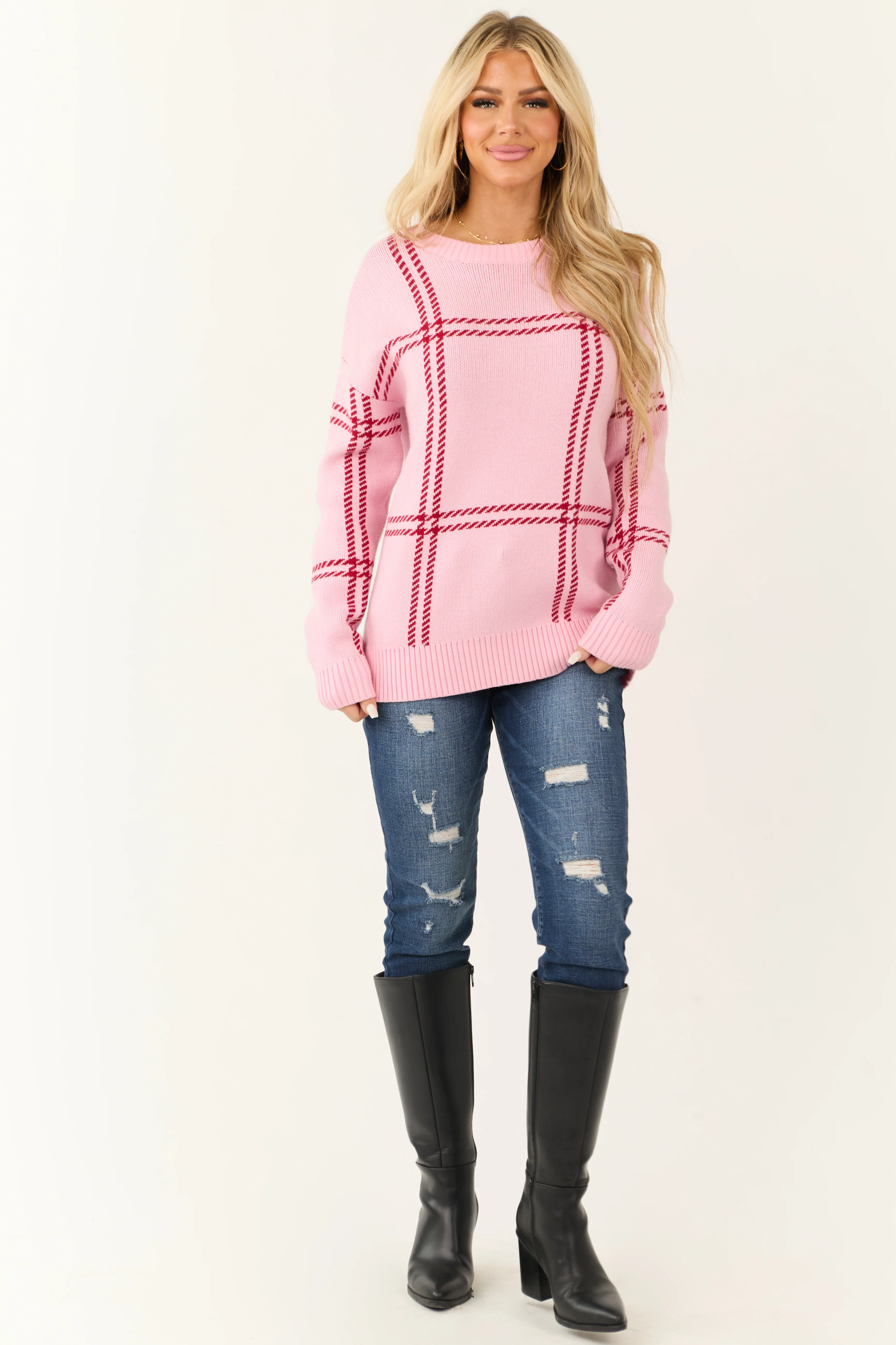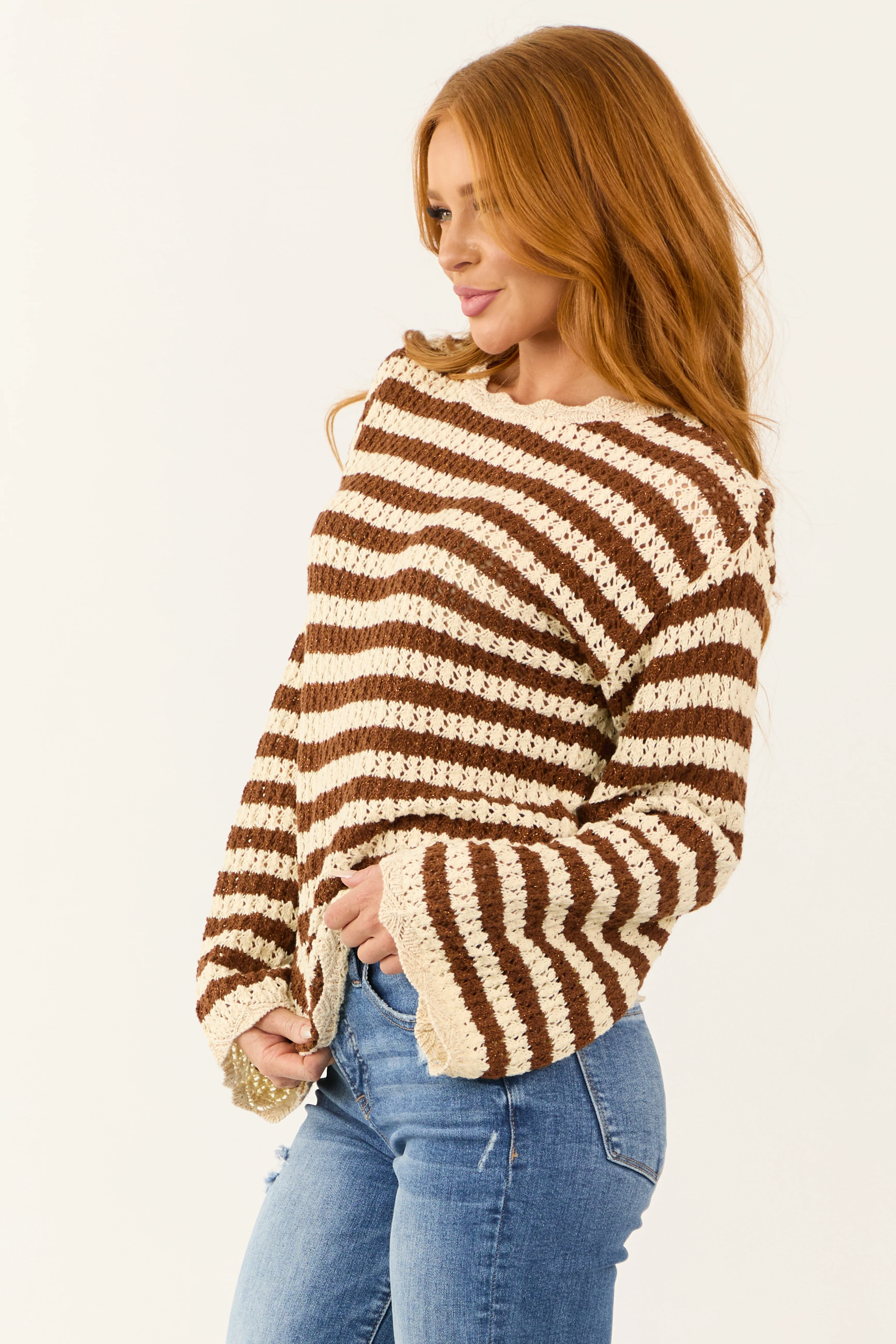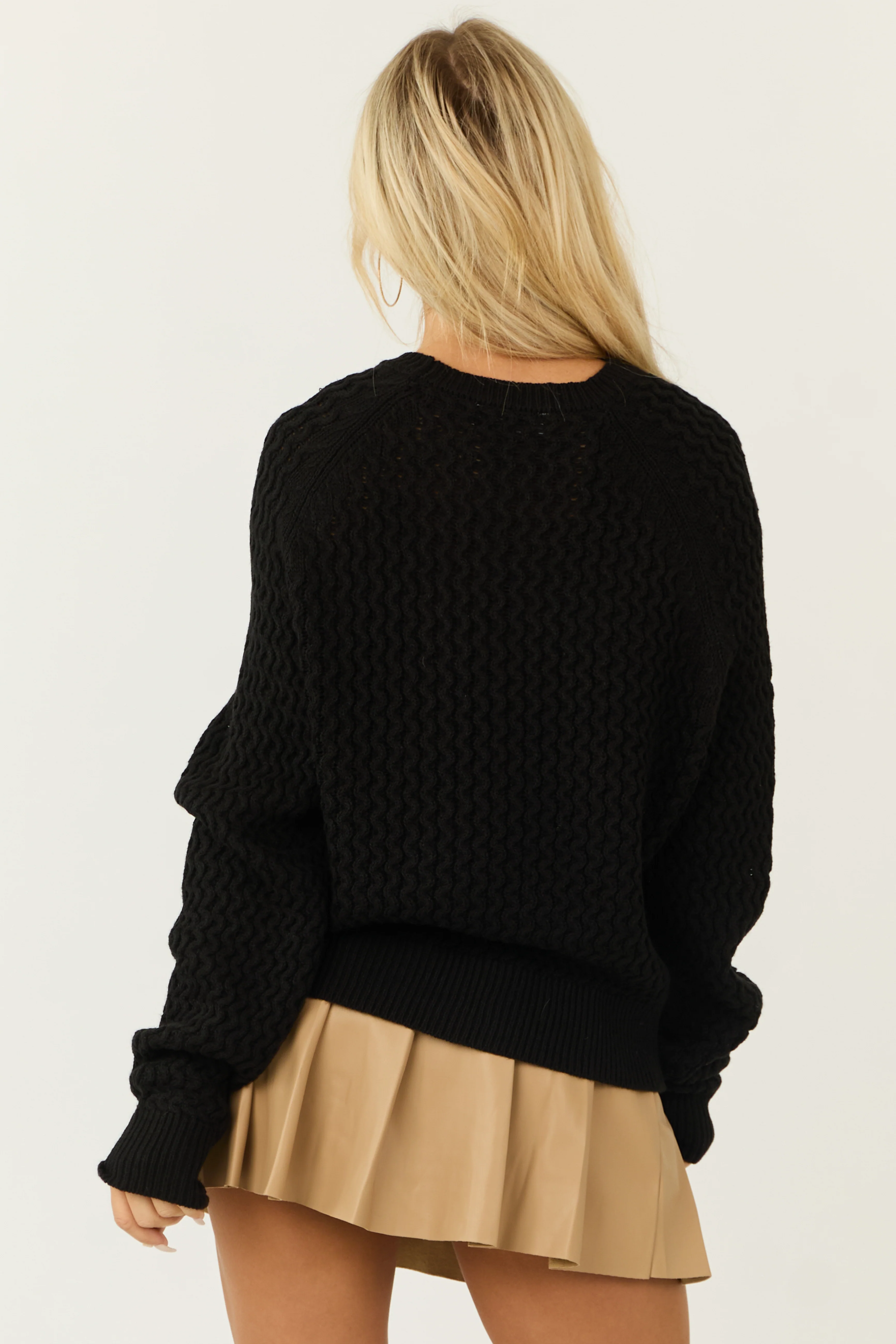 Black Long Sleeve Zig Zag Knit Crew Neck Sweater