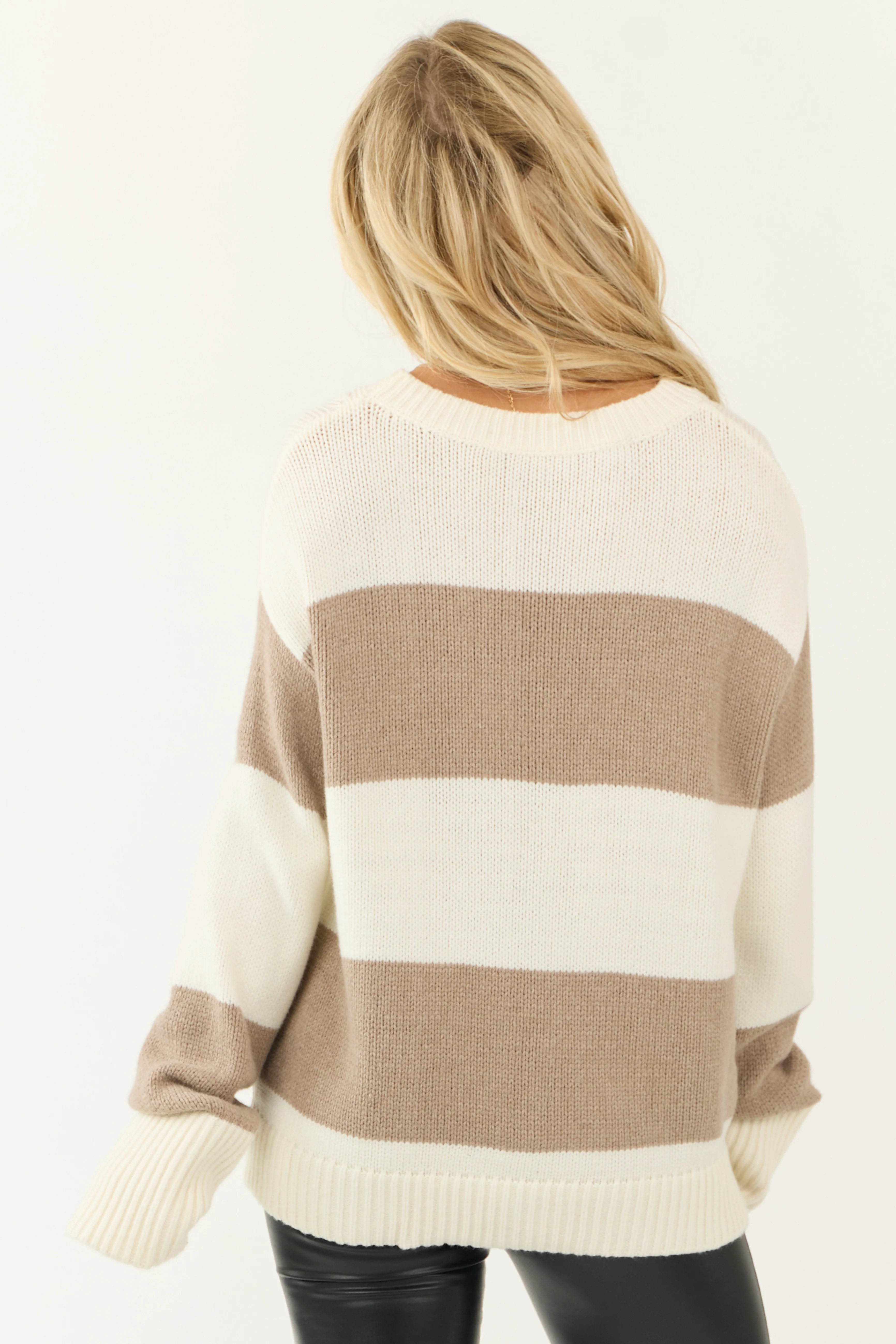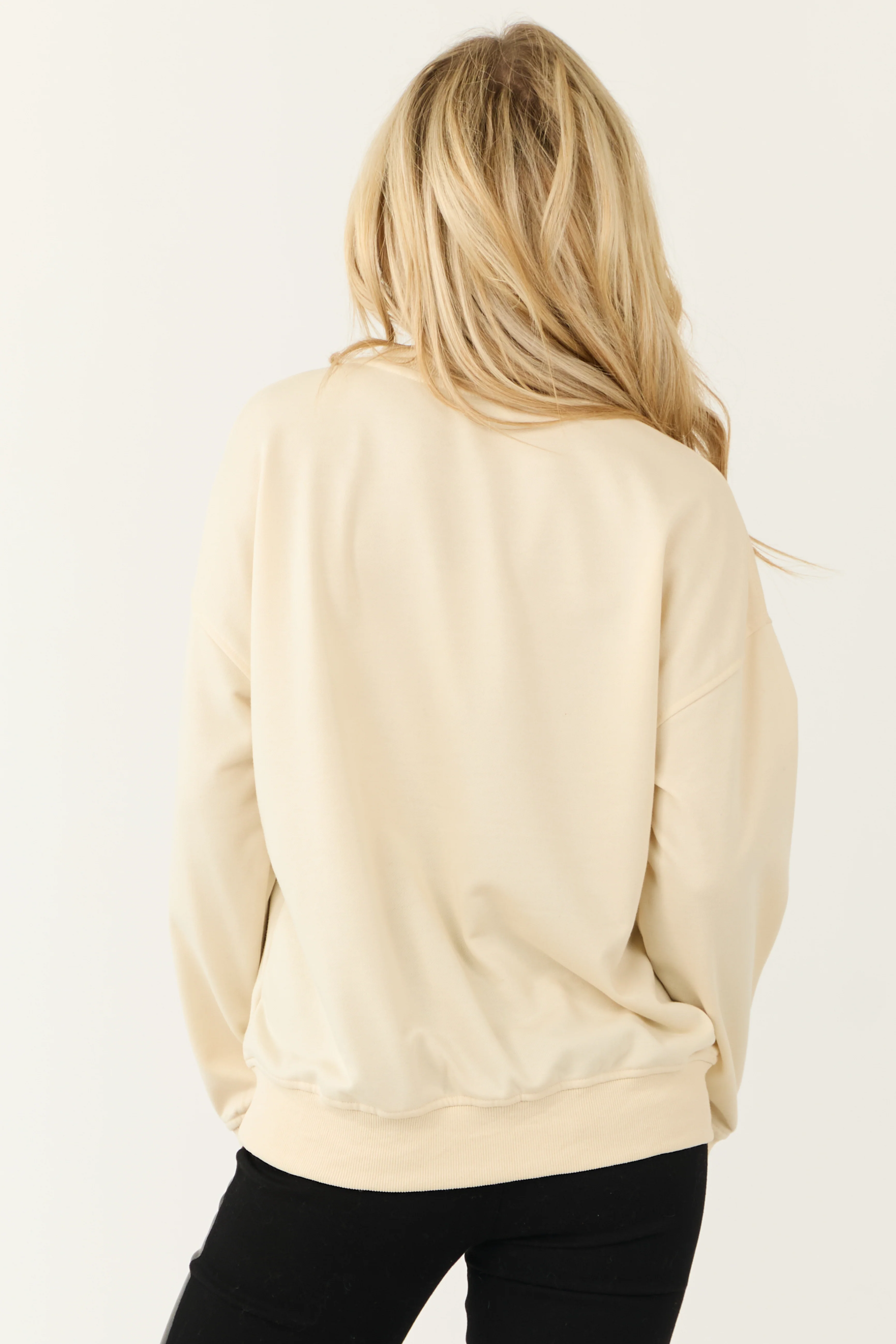 Cream Half Zip Up Knit Long Sleeve Sweatshirt