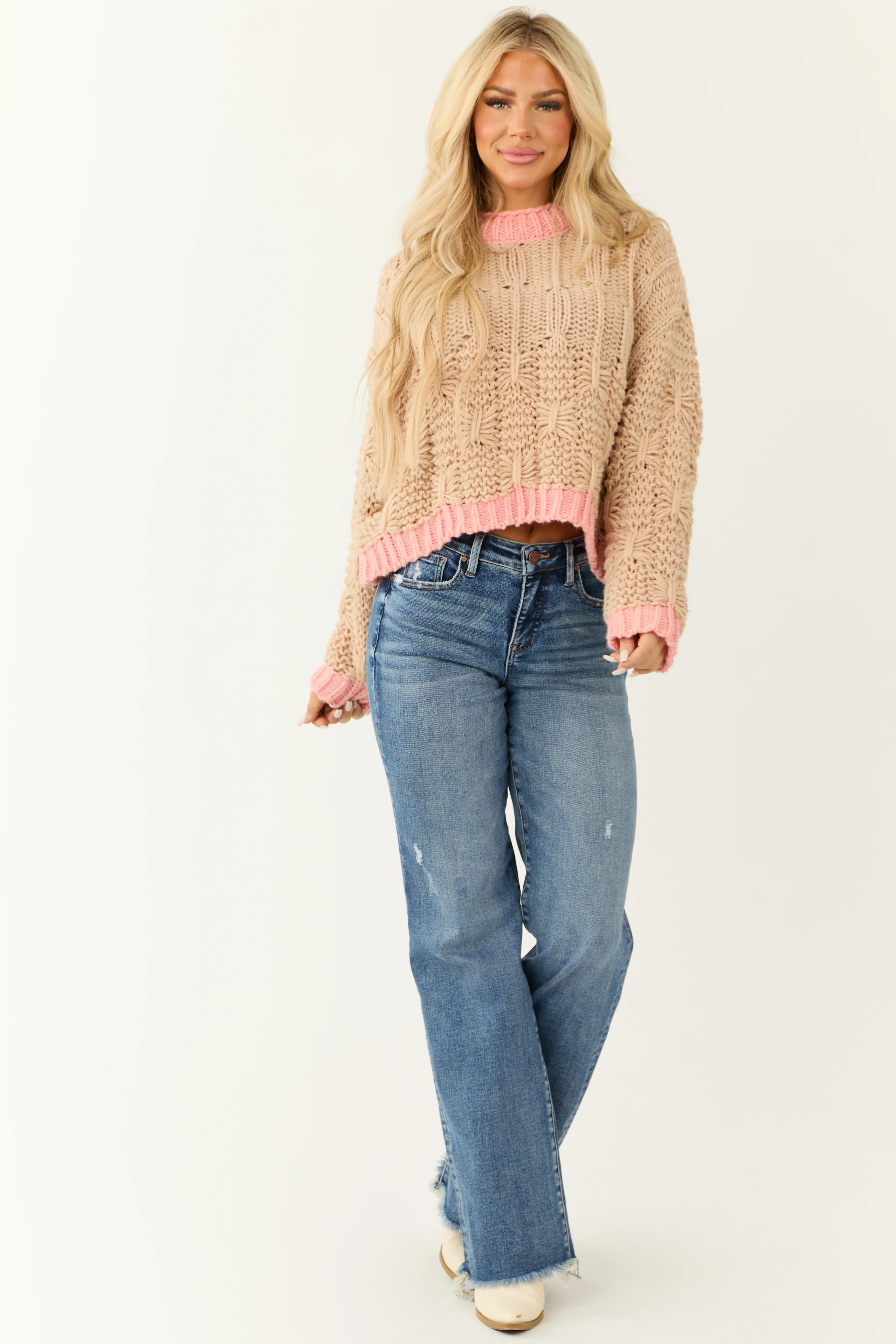 Pine Long Sleeve Fuzzy Knit Cropped Sweater