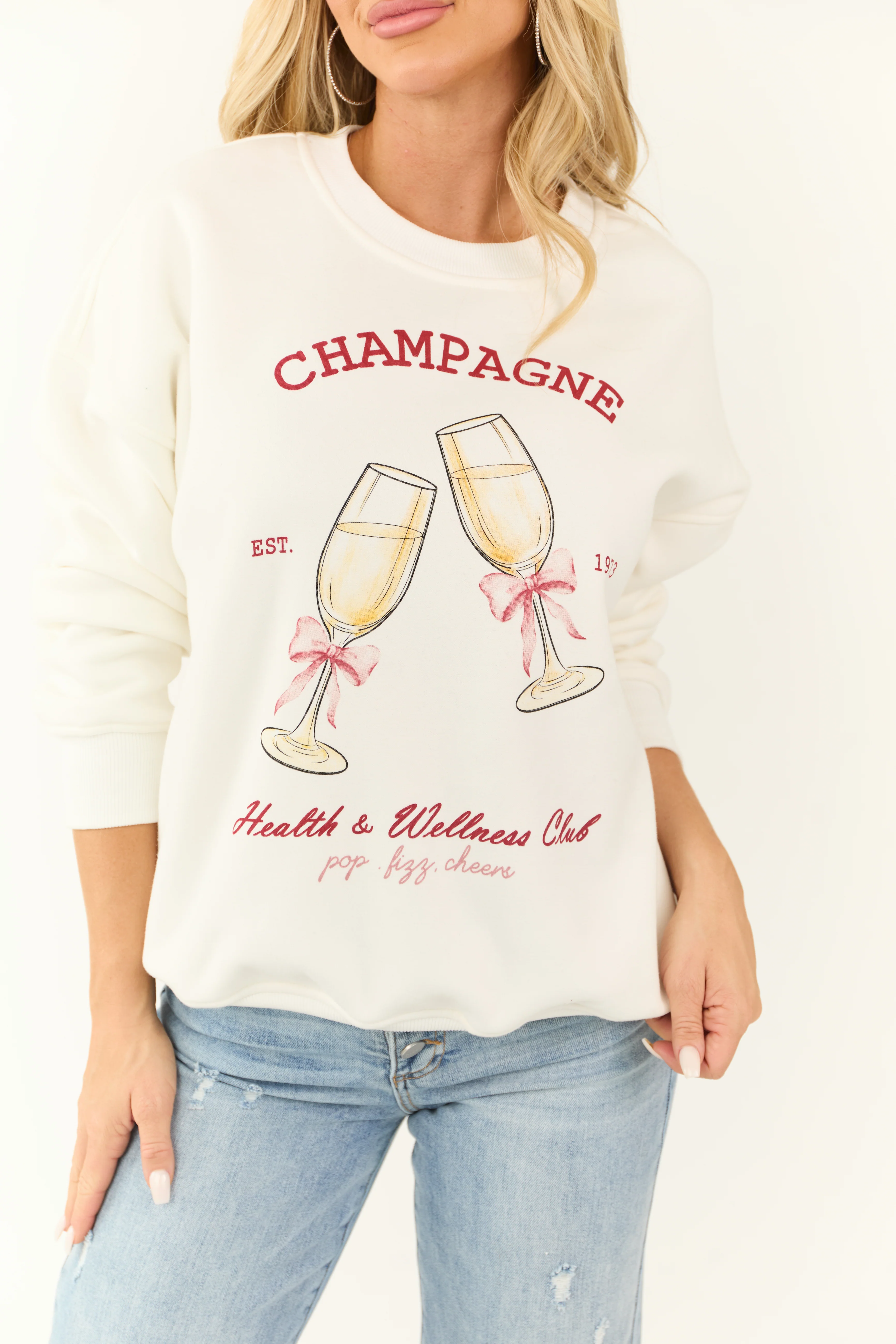 Off White Fleece Lined 'Champagne' Graphic Sweatshirt