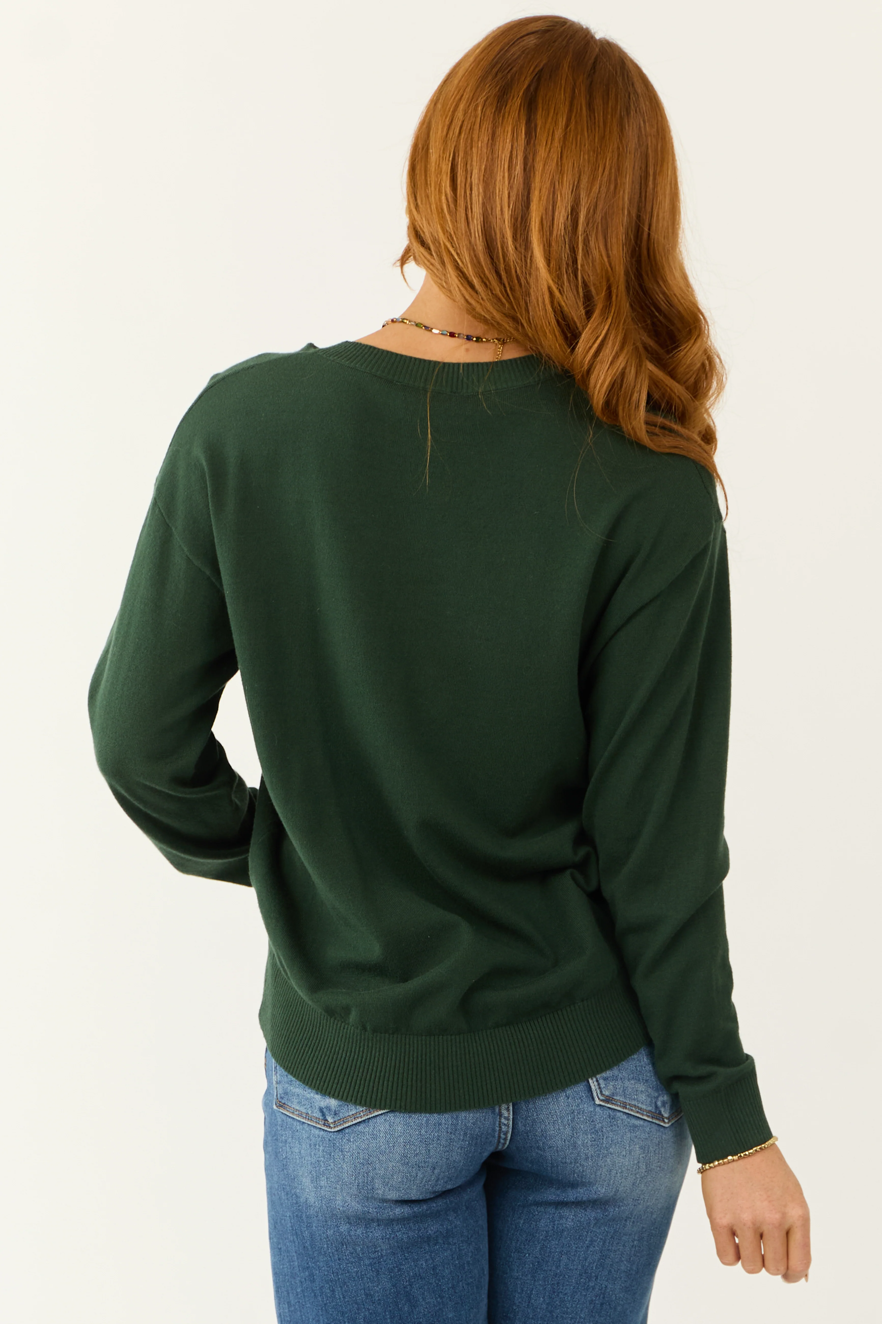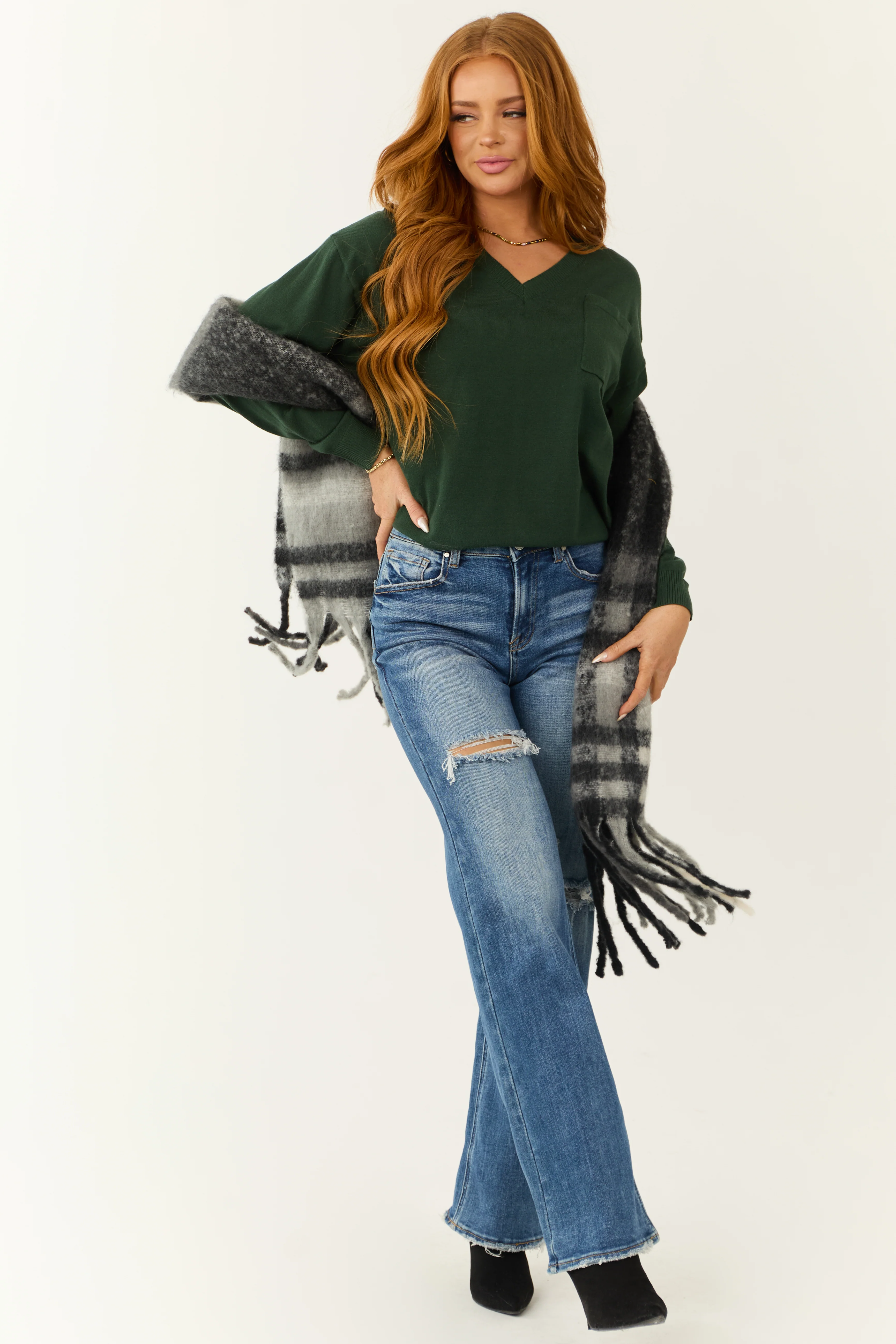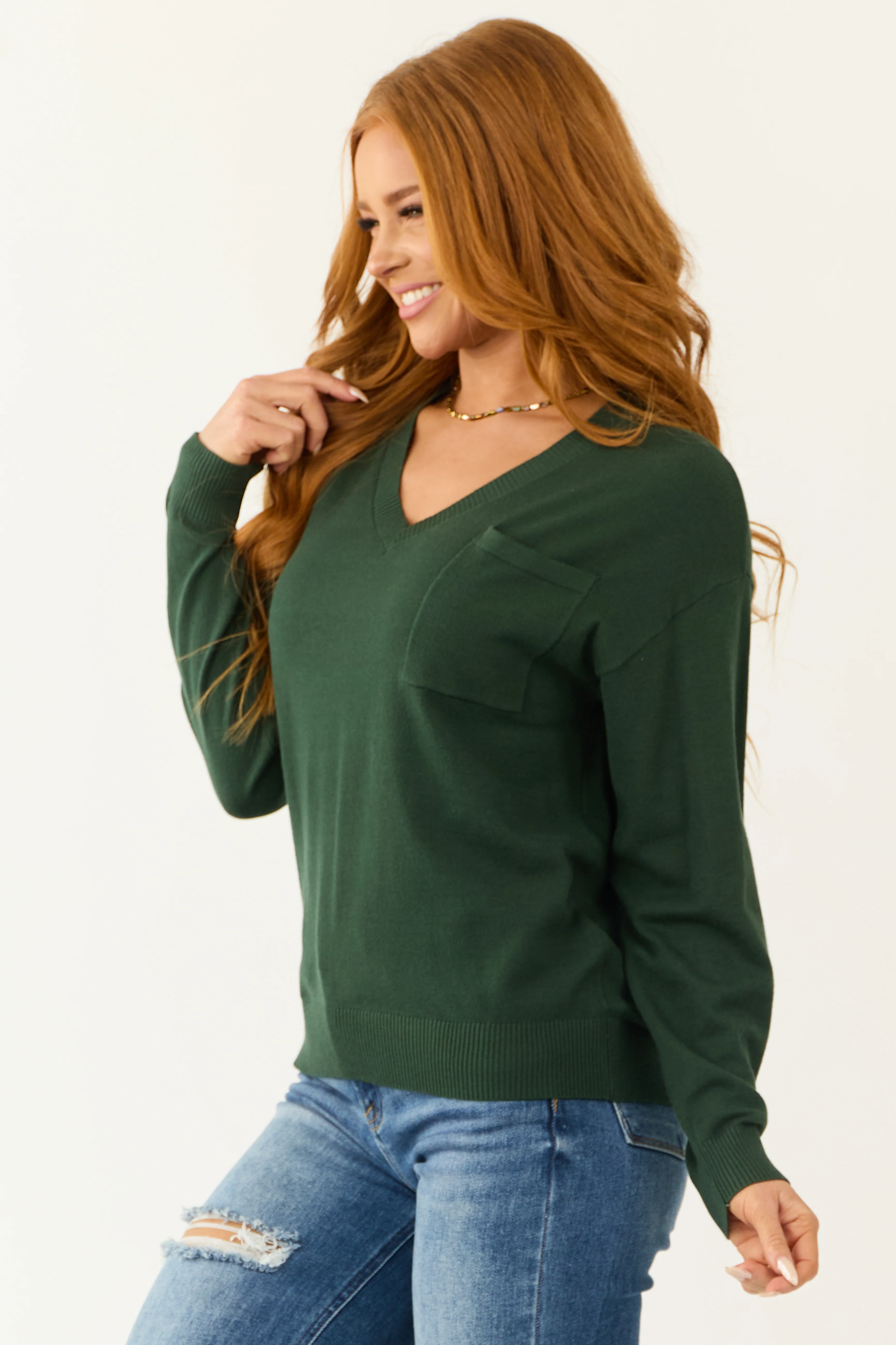 Pine Long Sleeve V Neck Chest Pocket Sweater