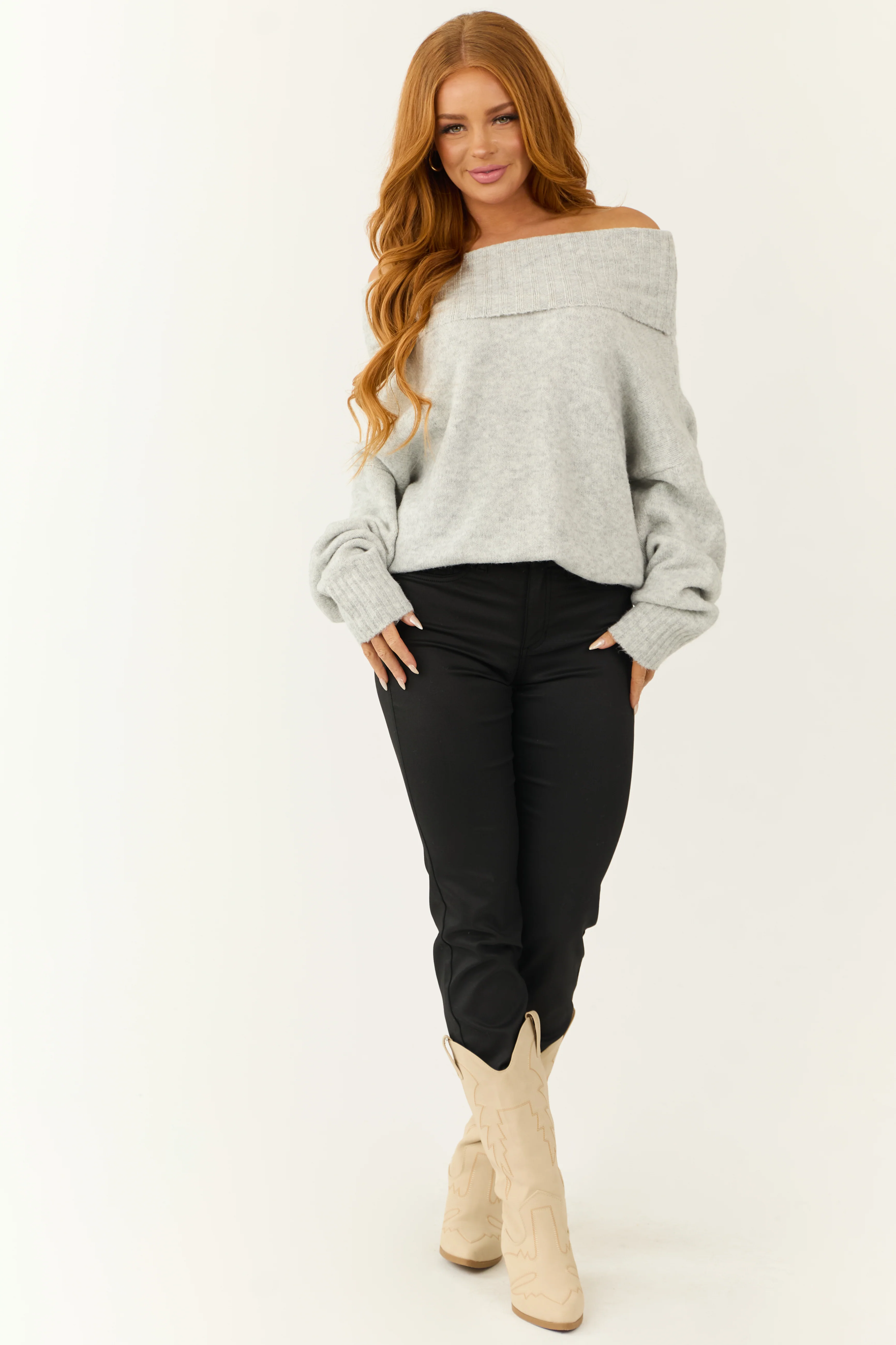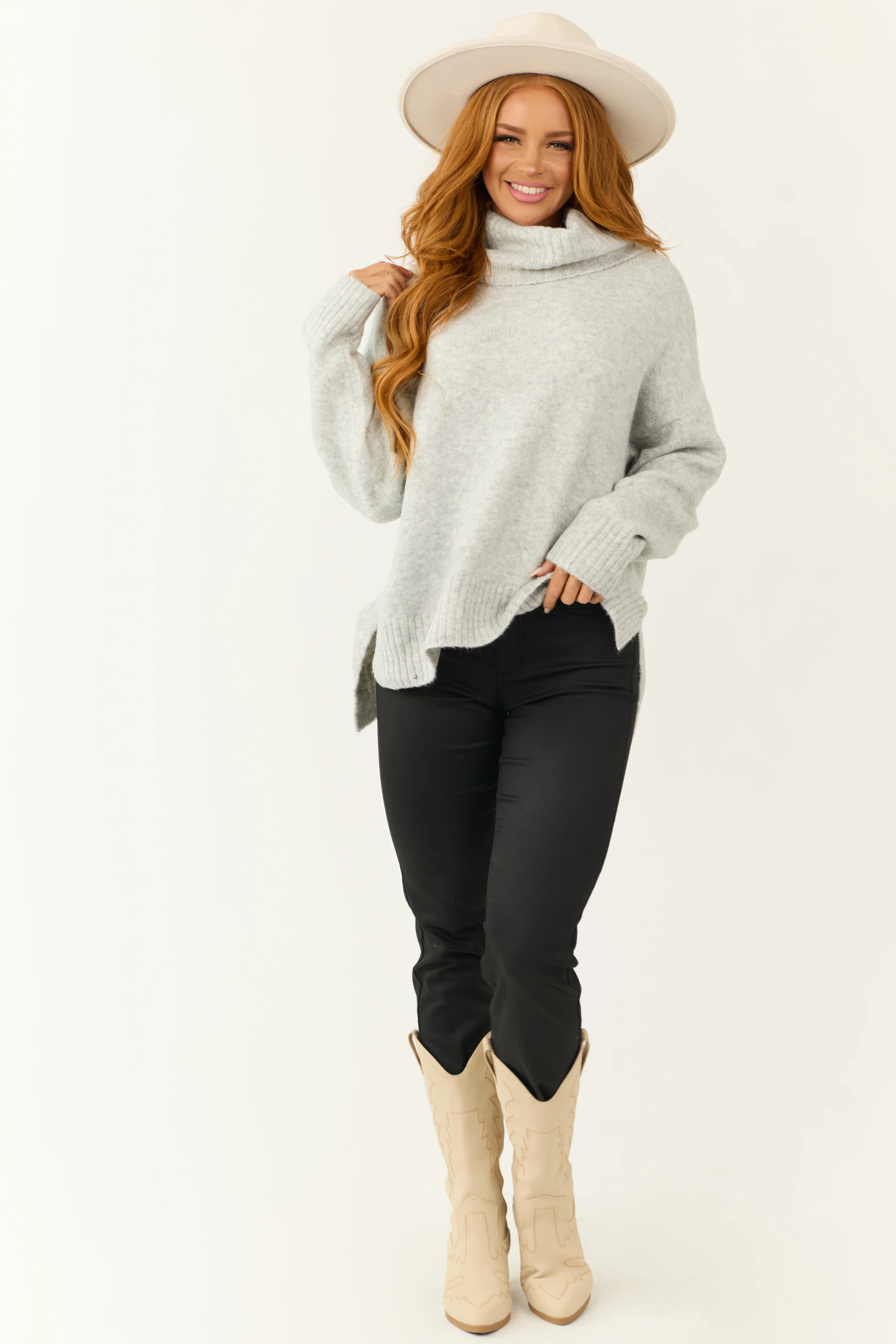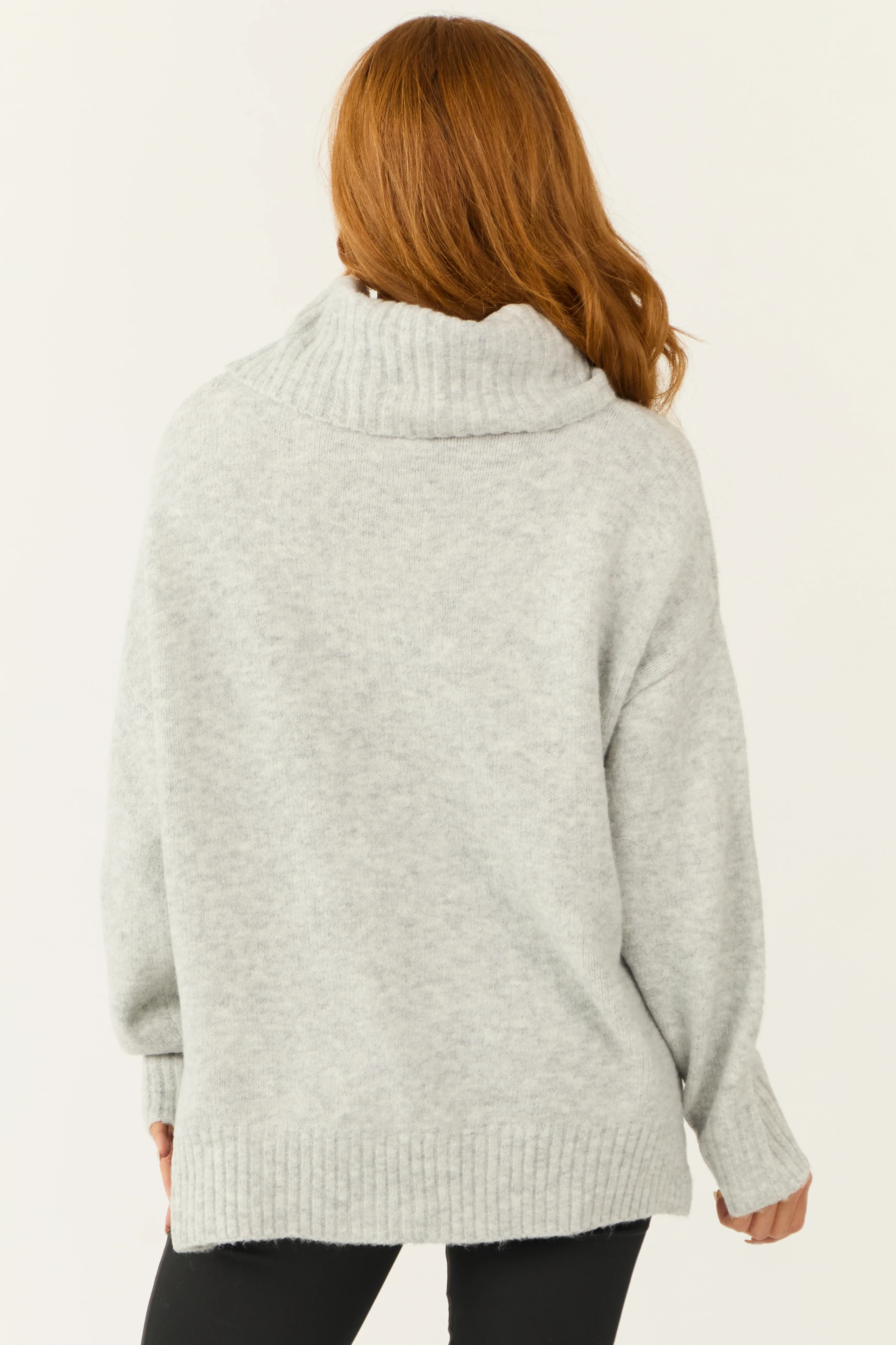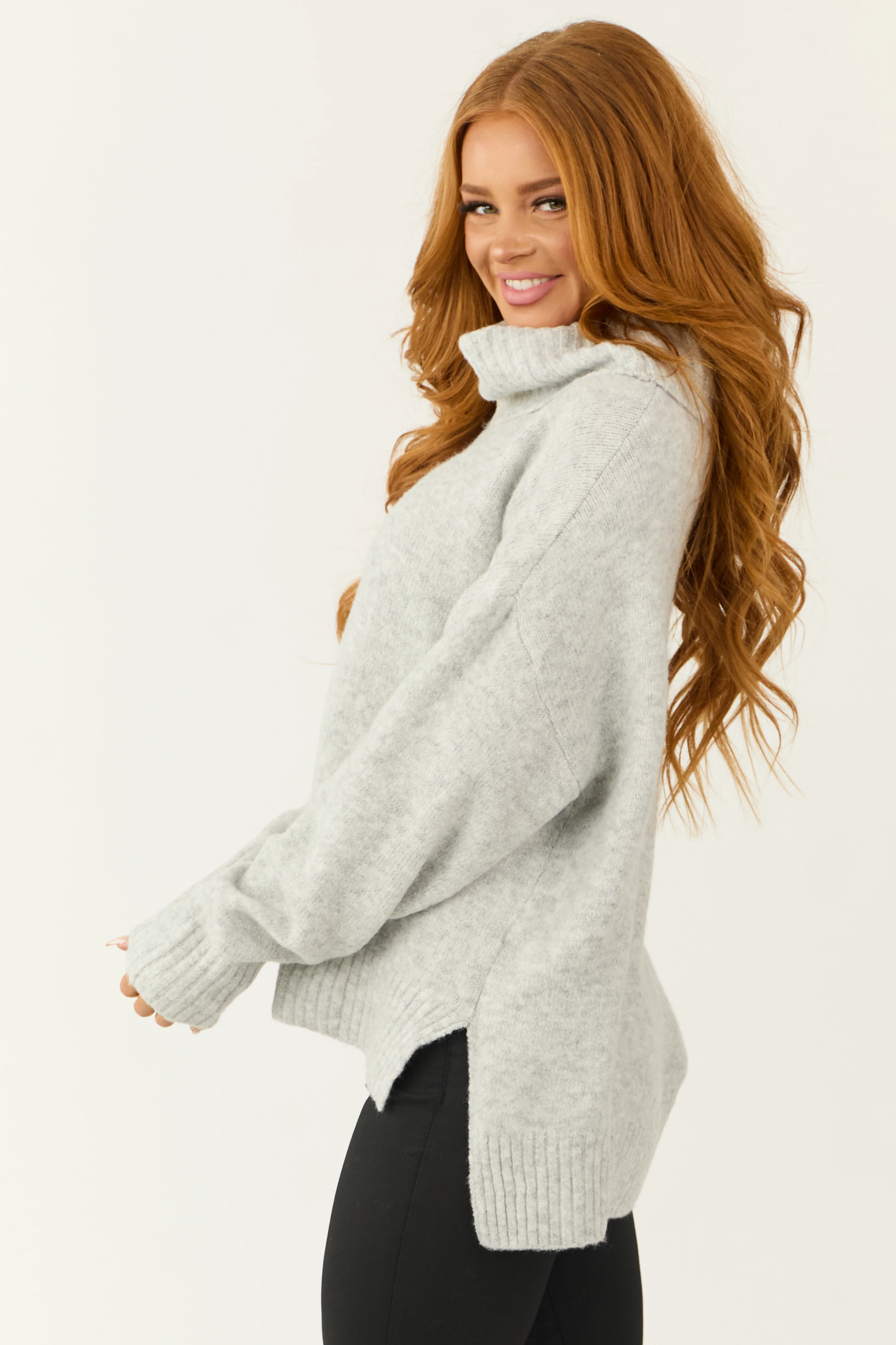 Dove Grey Wide Turtleneck Side Slit Sweater