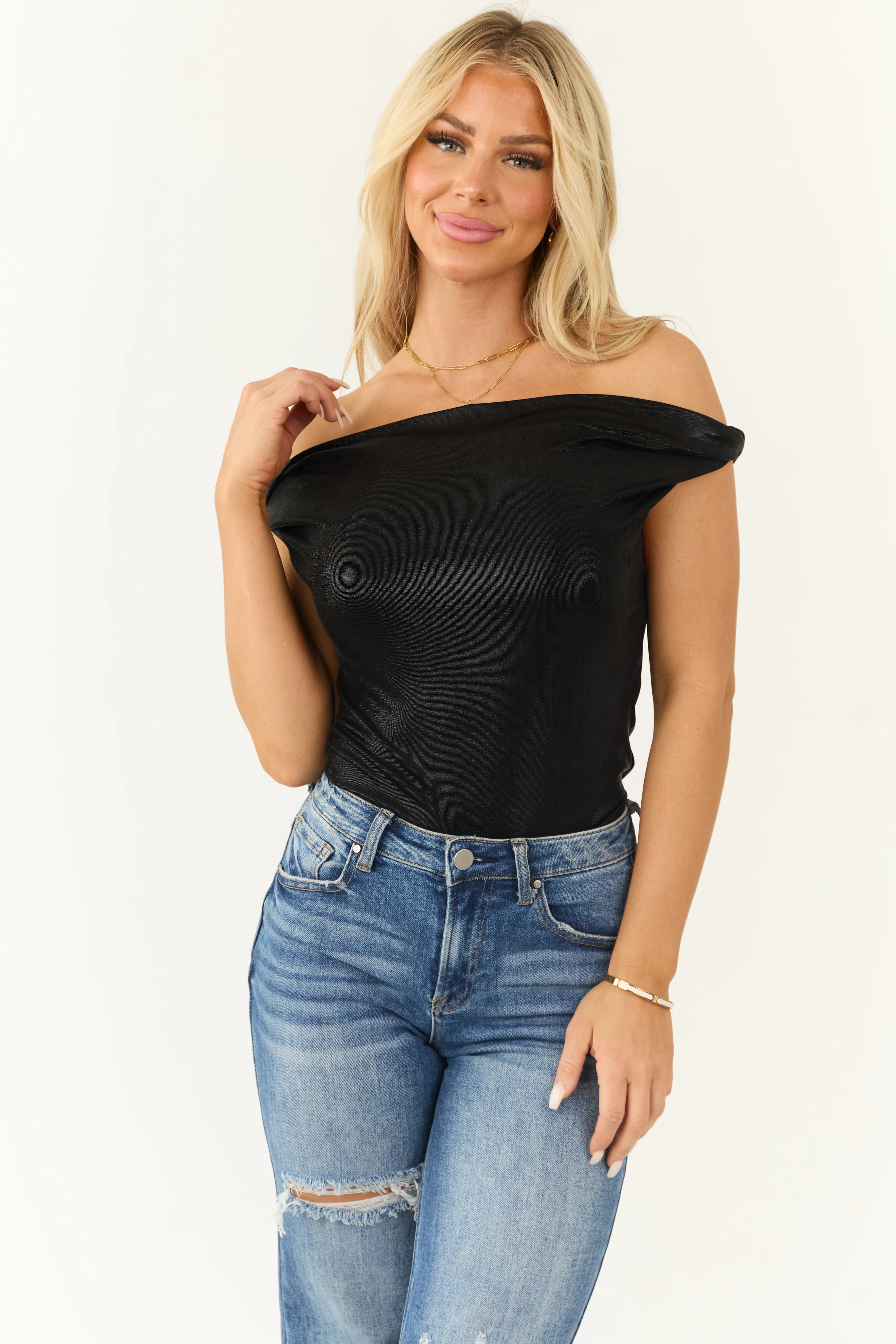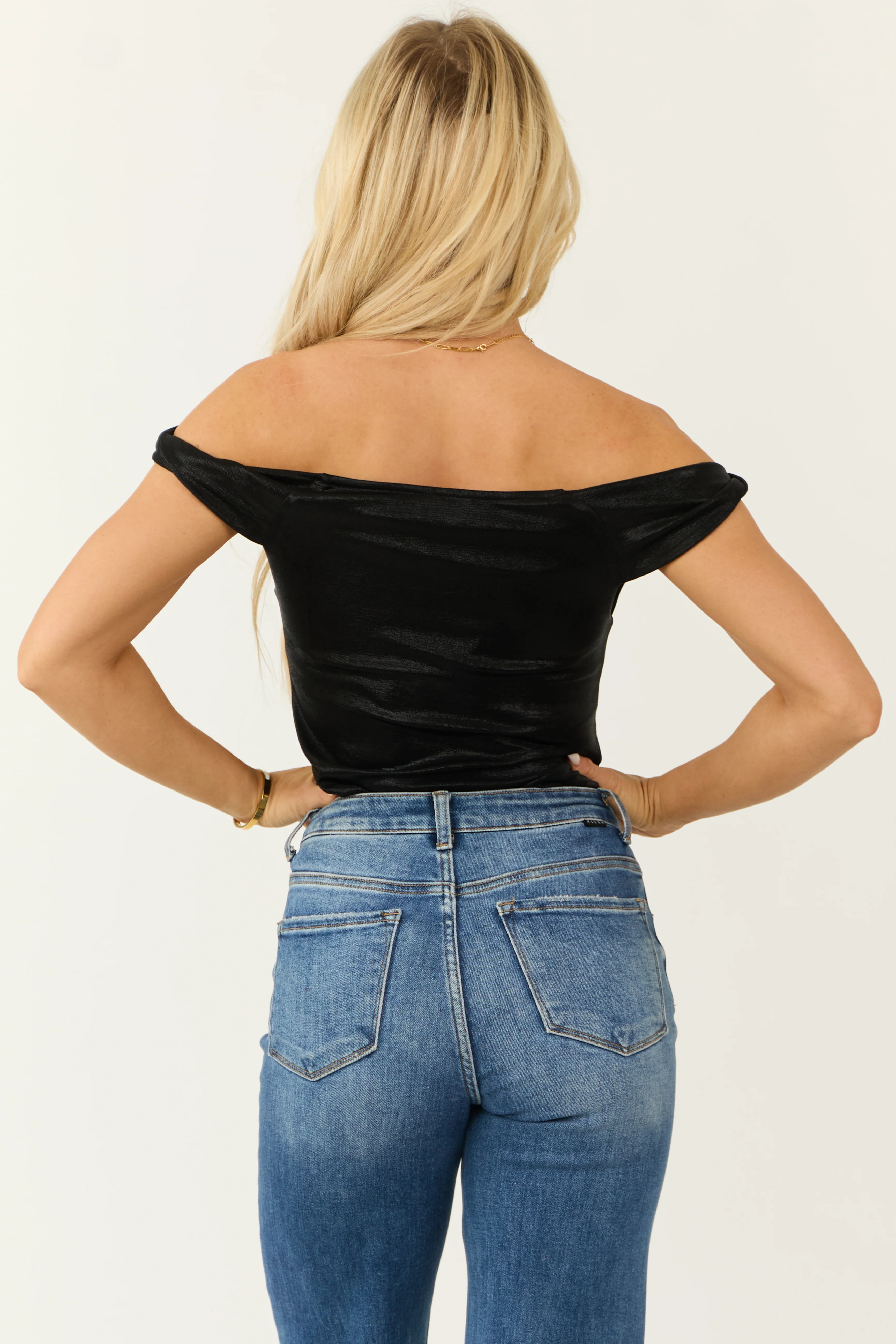 Black Shimmer Knit Off the Shoulder Bodysuit