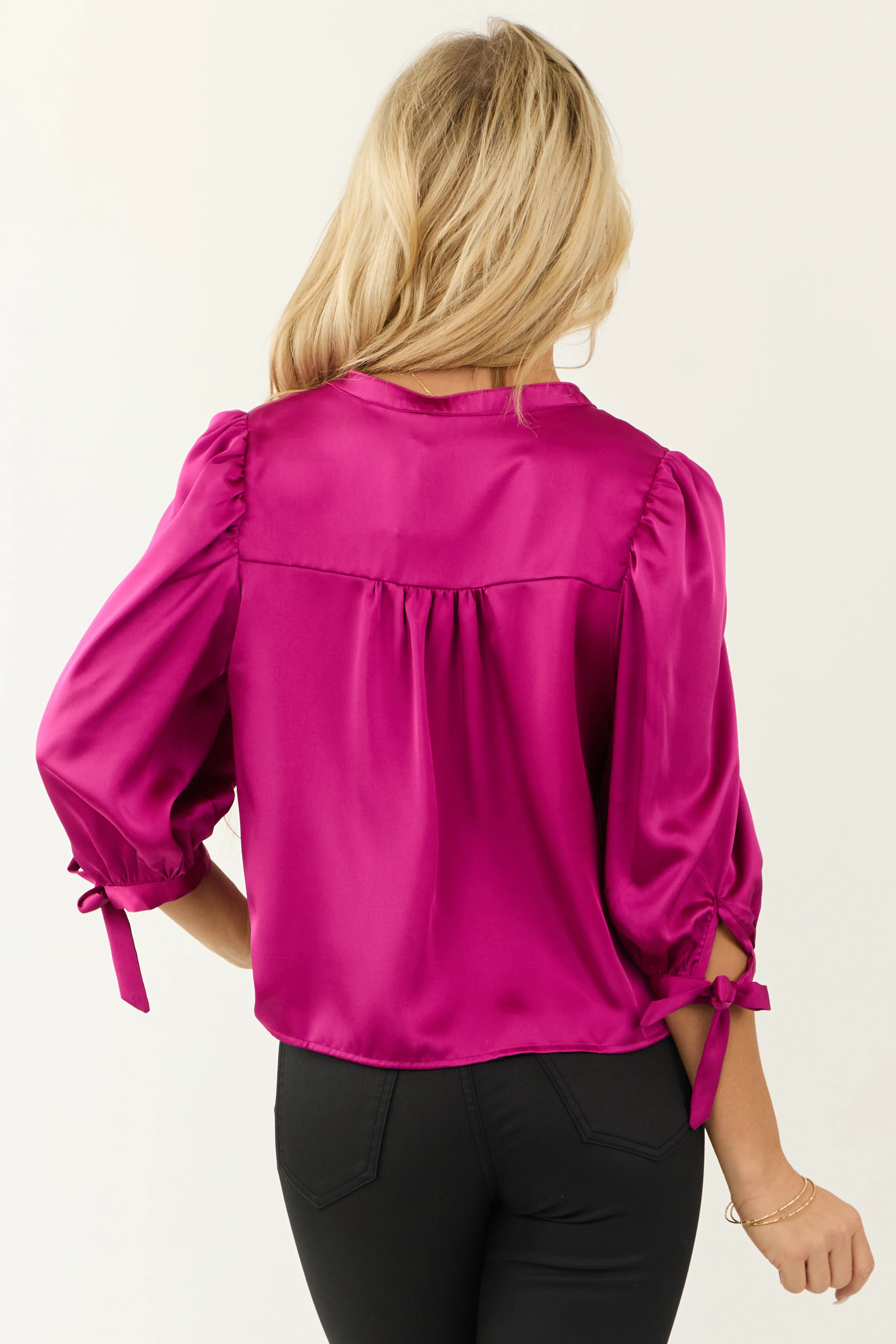 Mulberry Satin 3/4 Sleeve Button Down Blouse