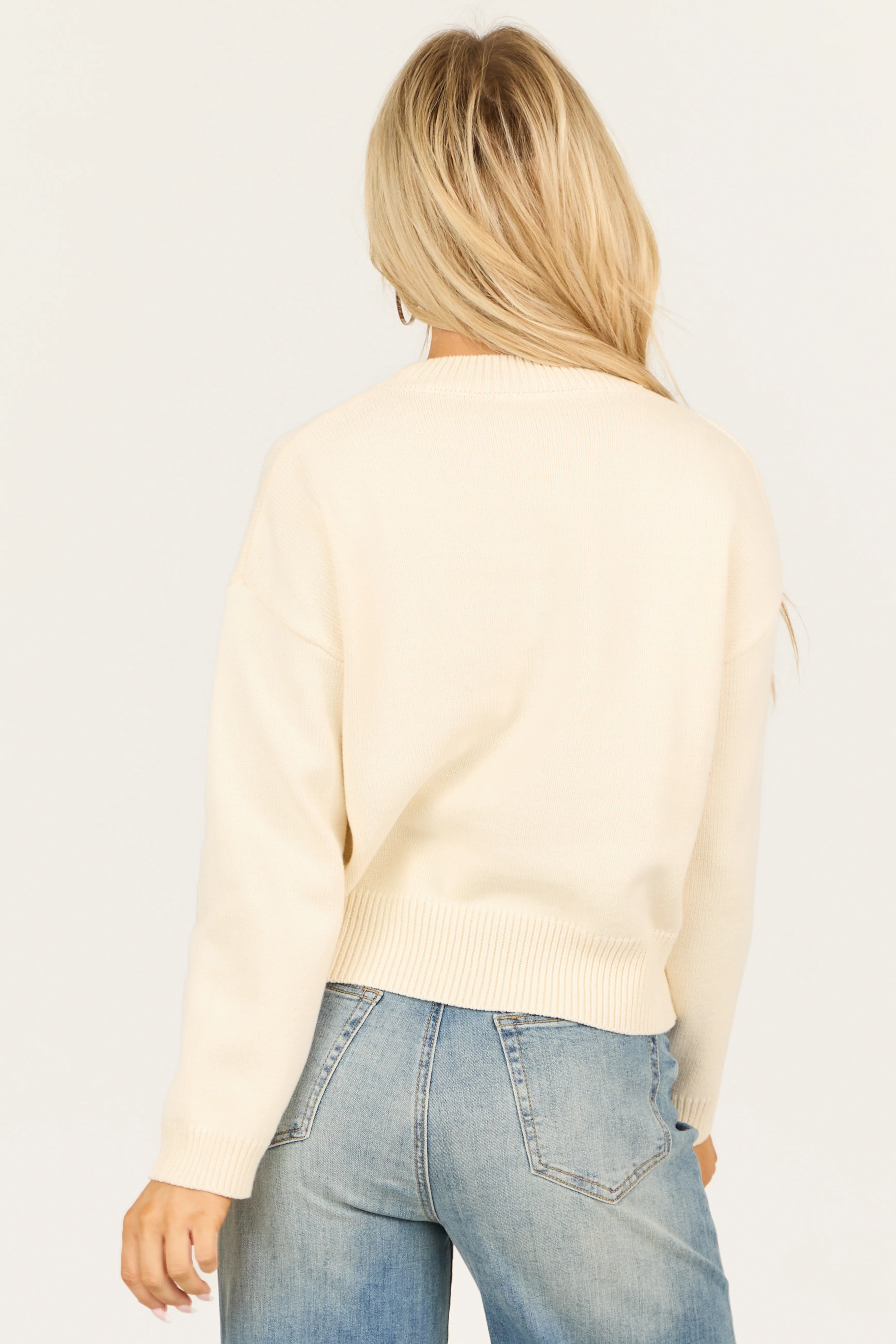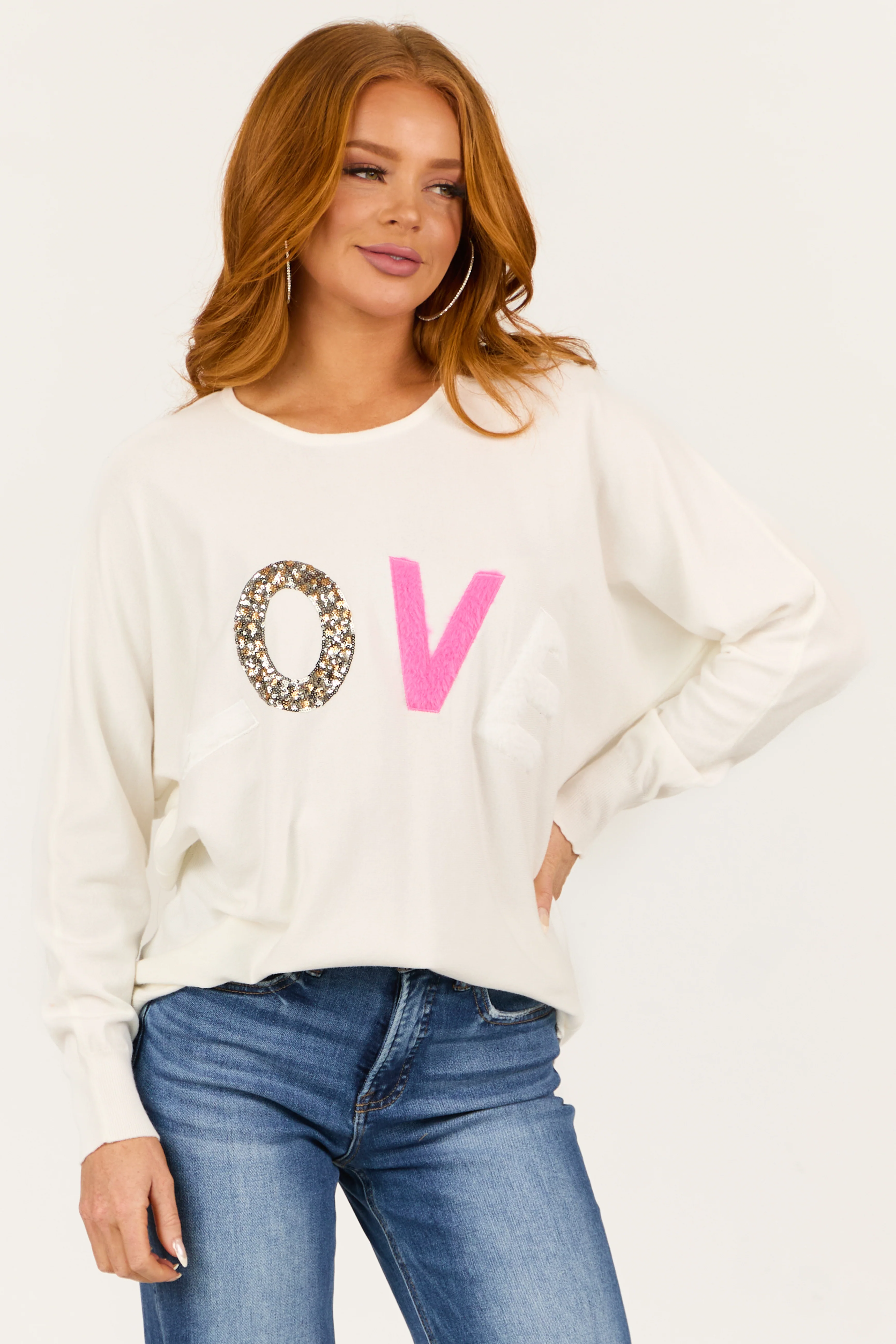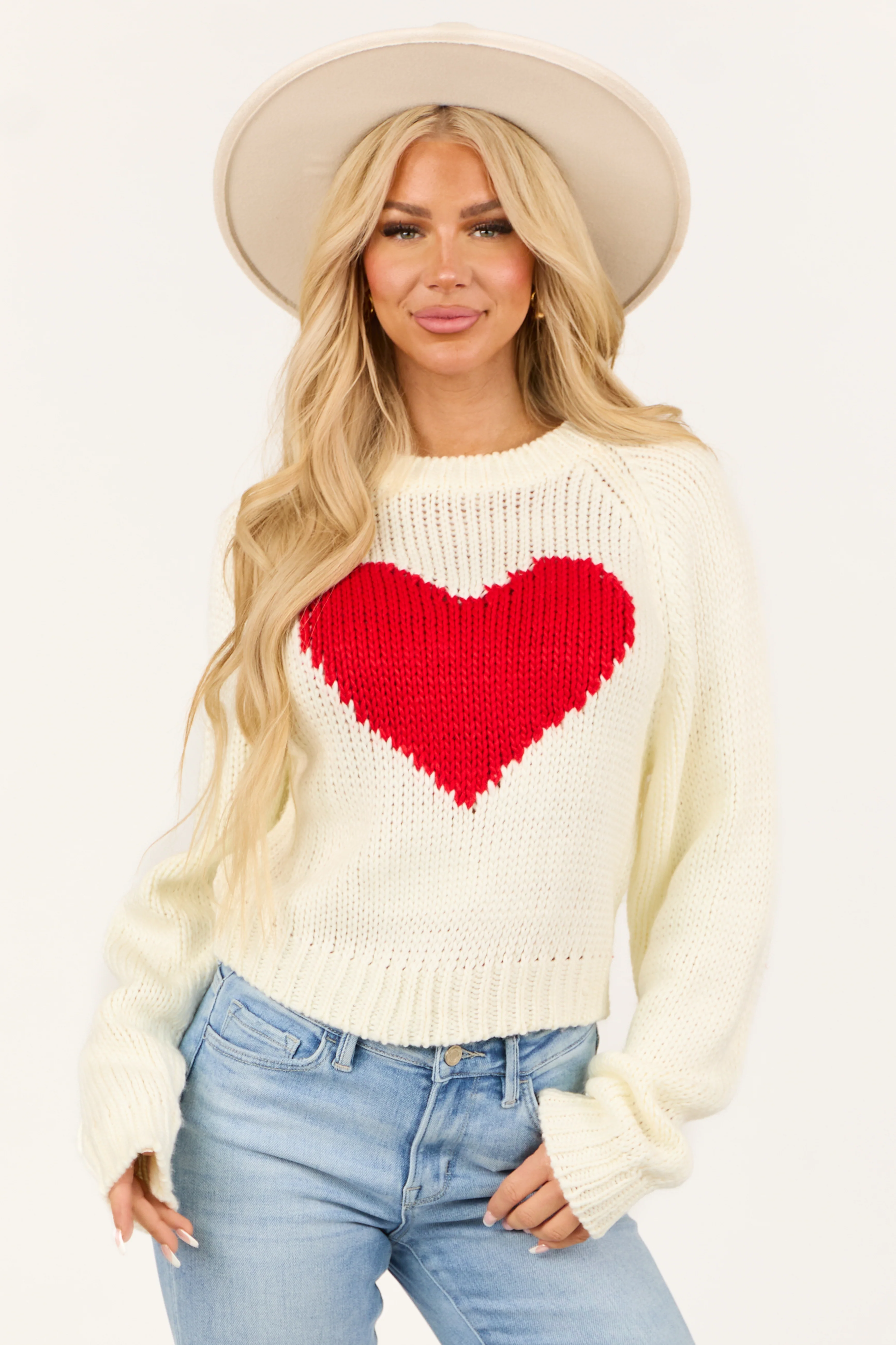 Cream 'Hello Love' Long Sleeve Knit Sweater
