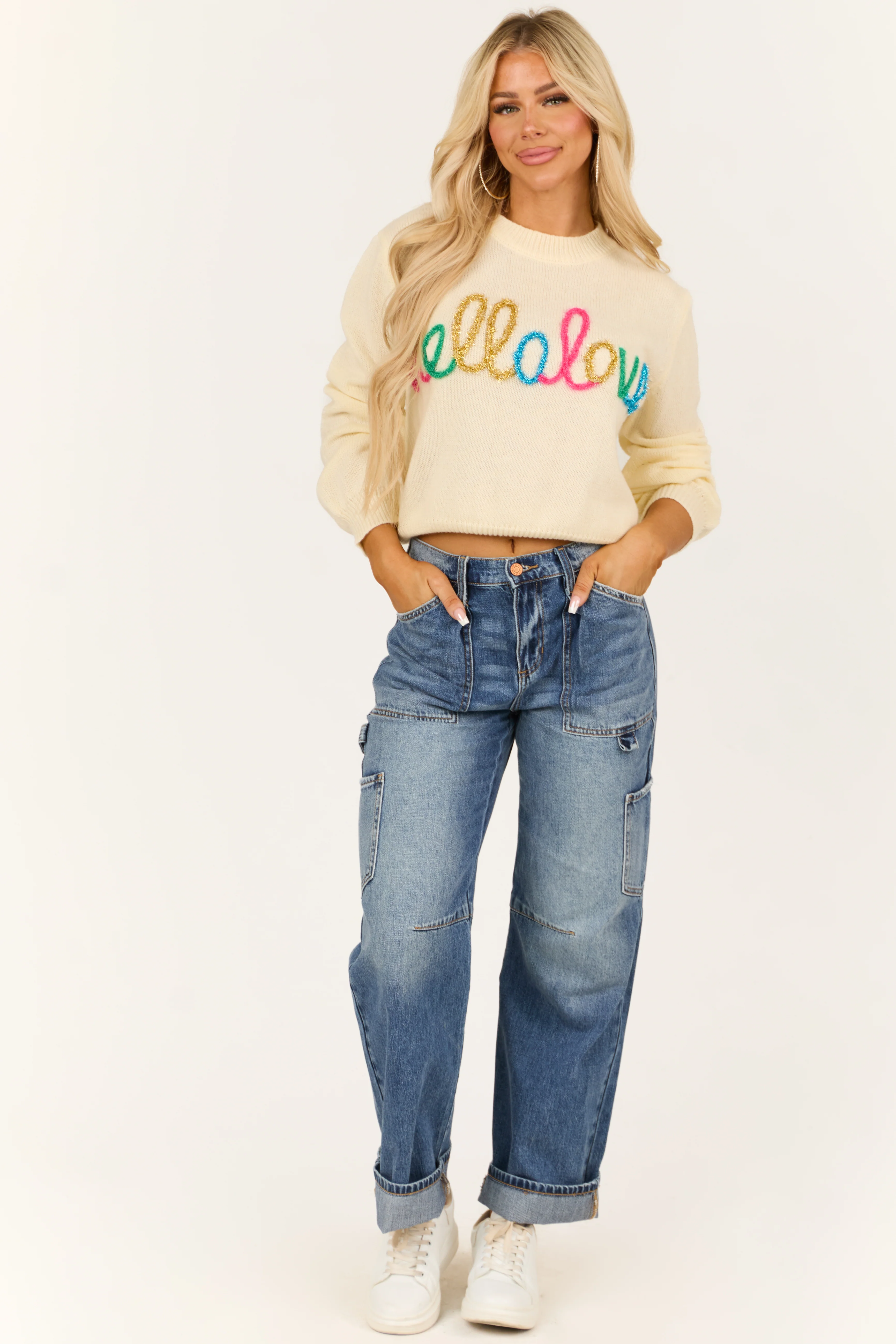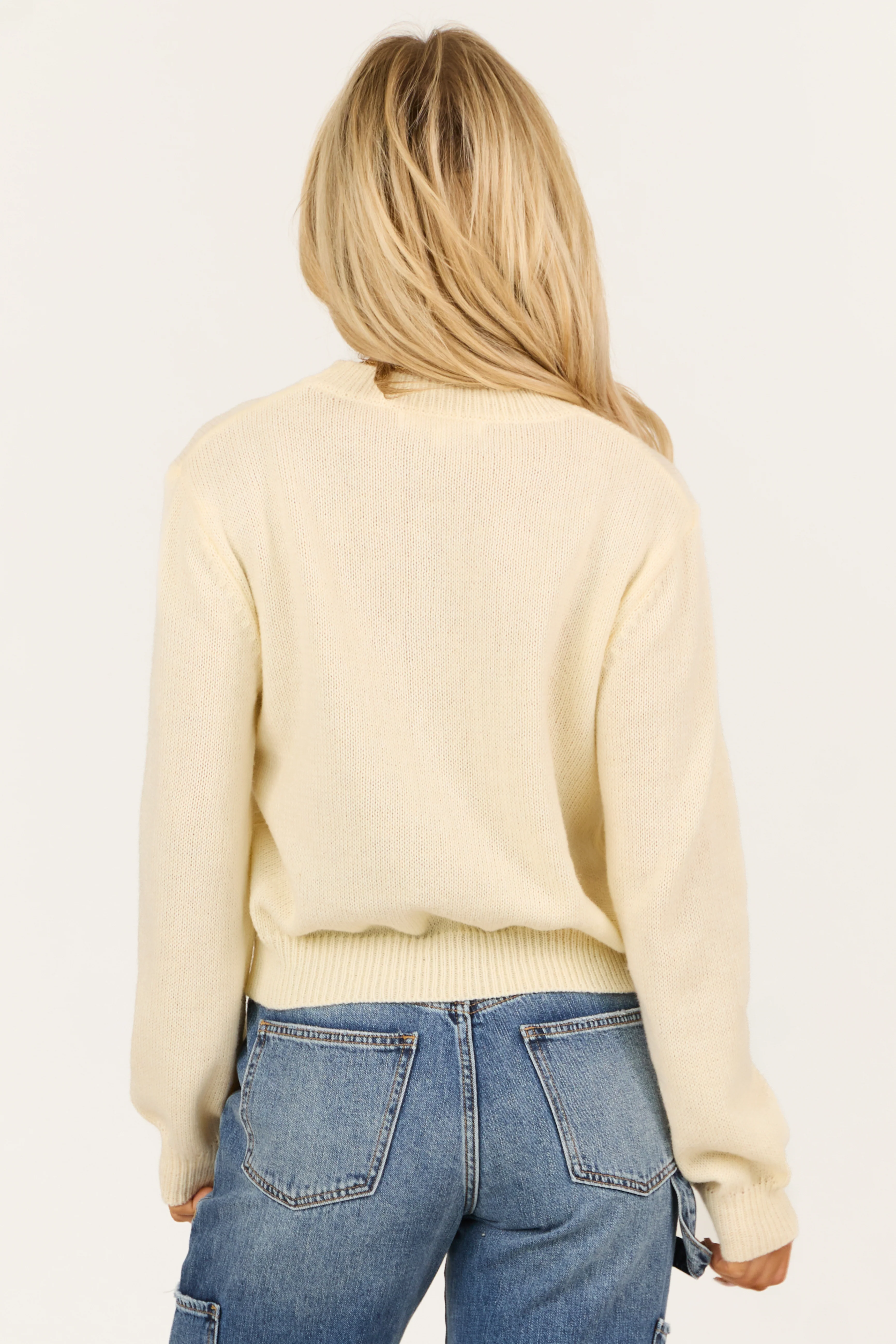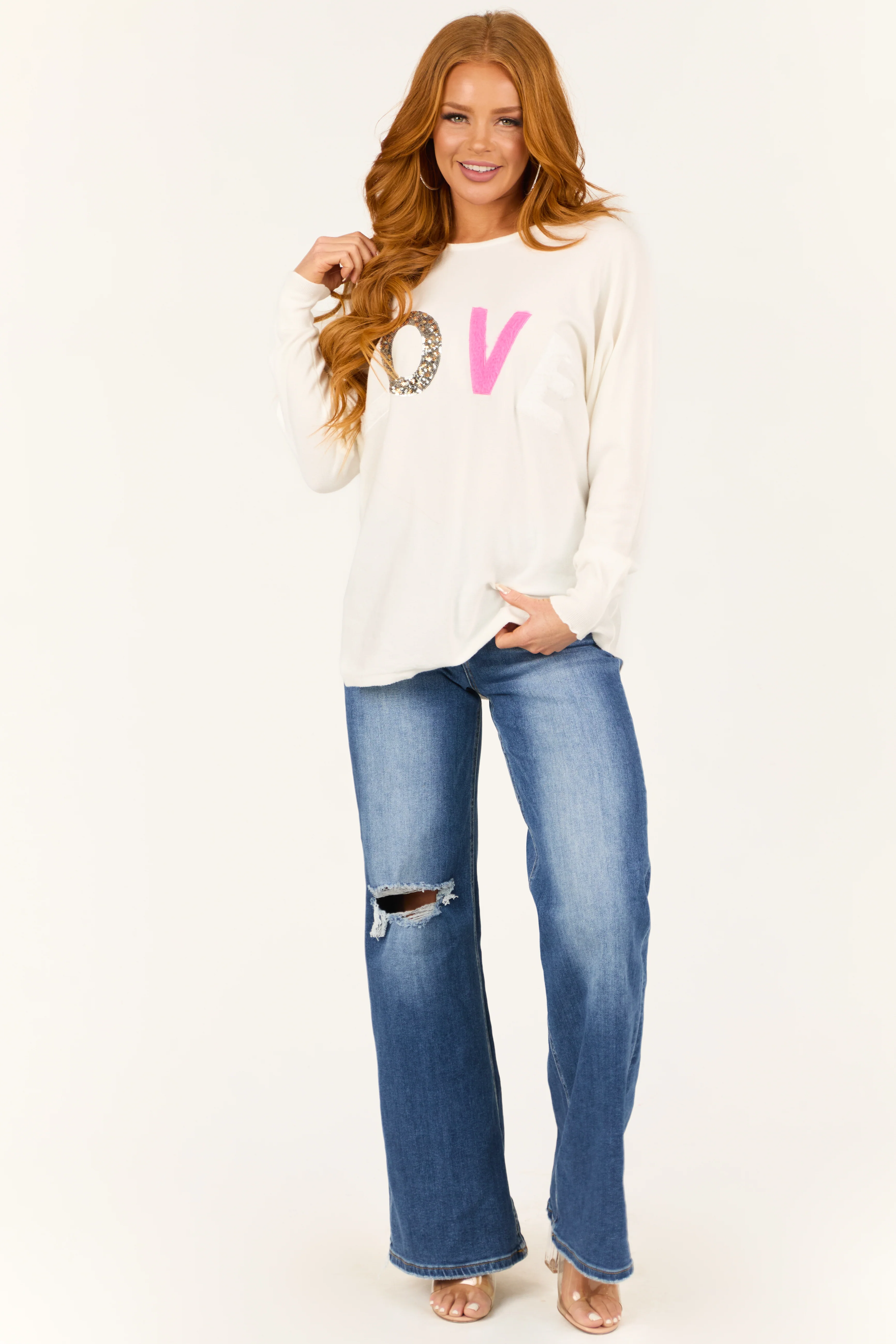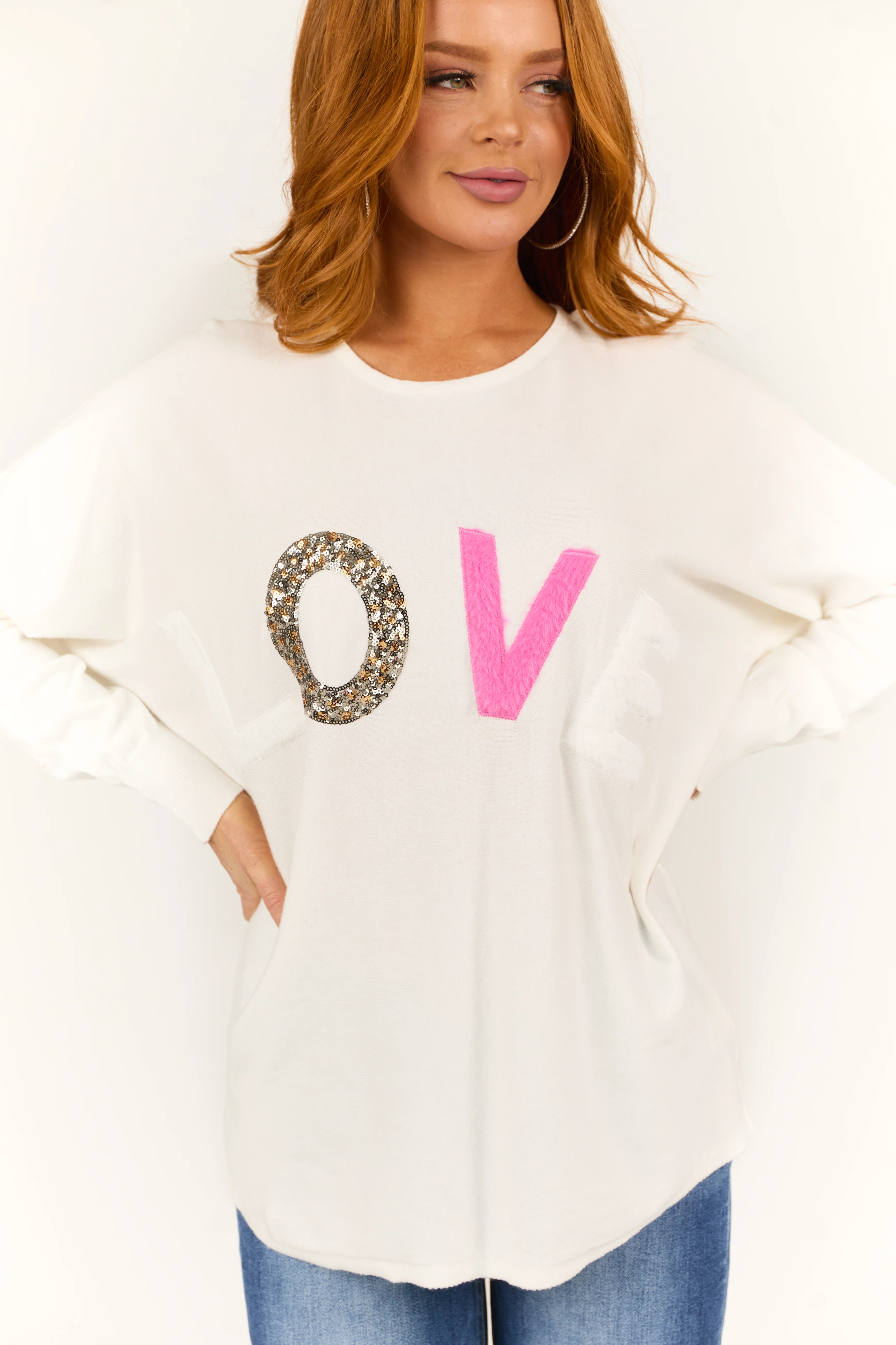 Cream 'Hello Love' Long Sleeve Knit Sweater