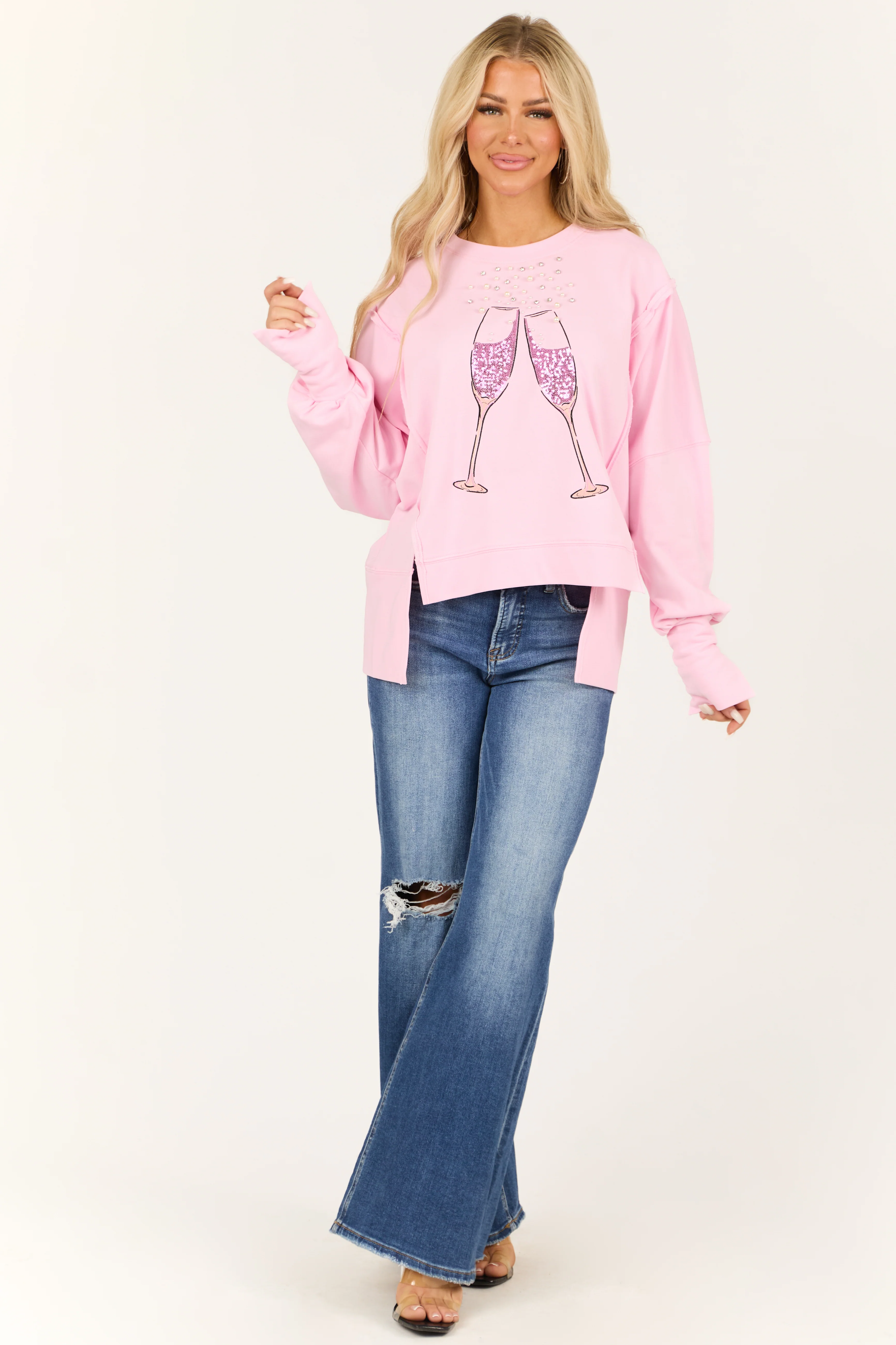 Carnation Champagne Glass Embellished Sweatshirt