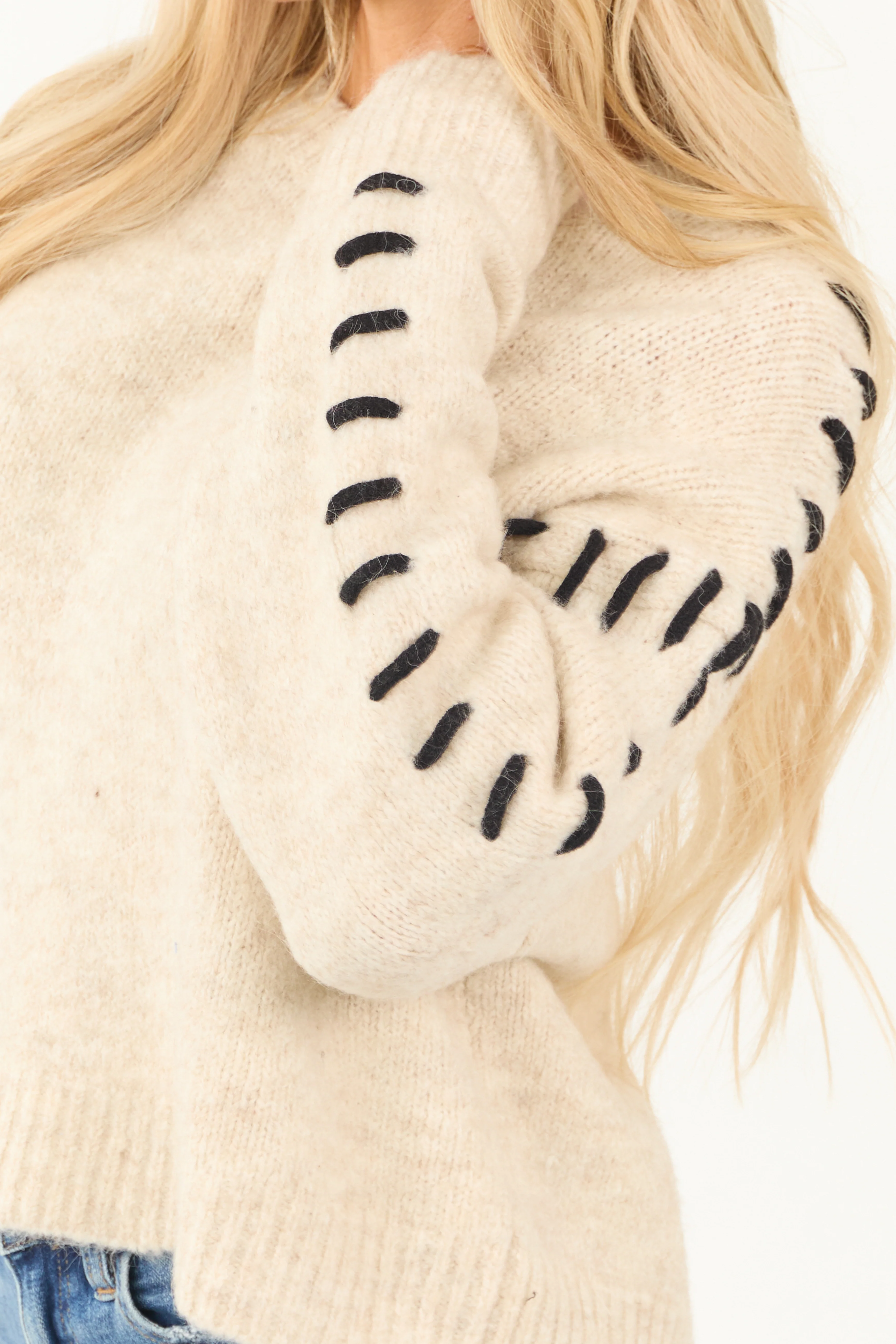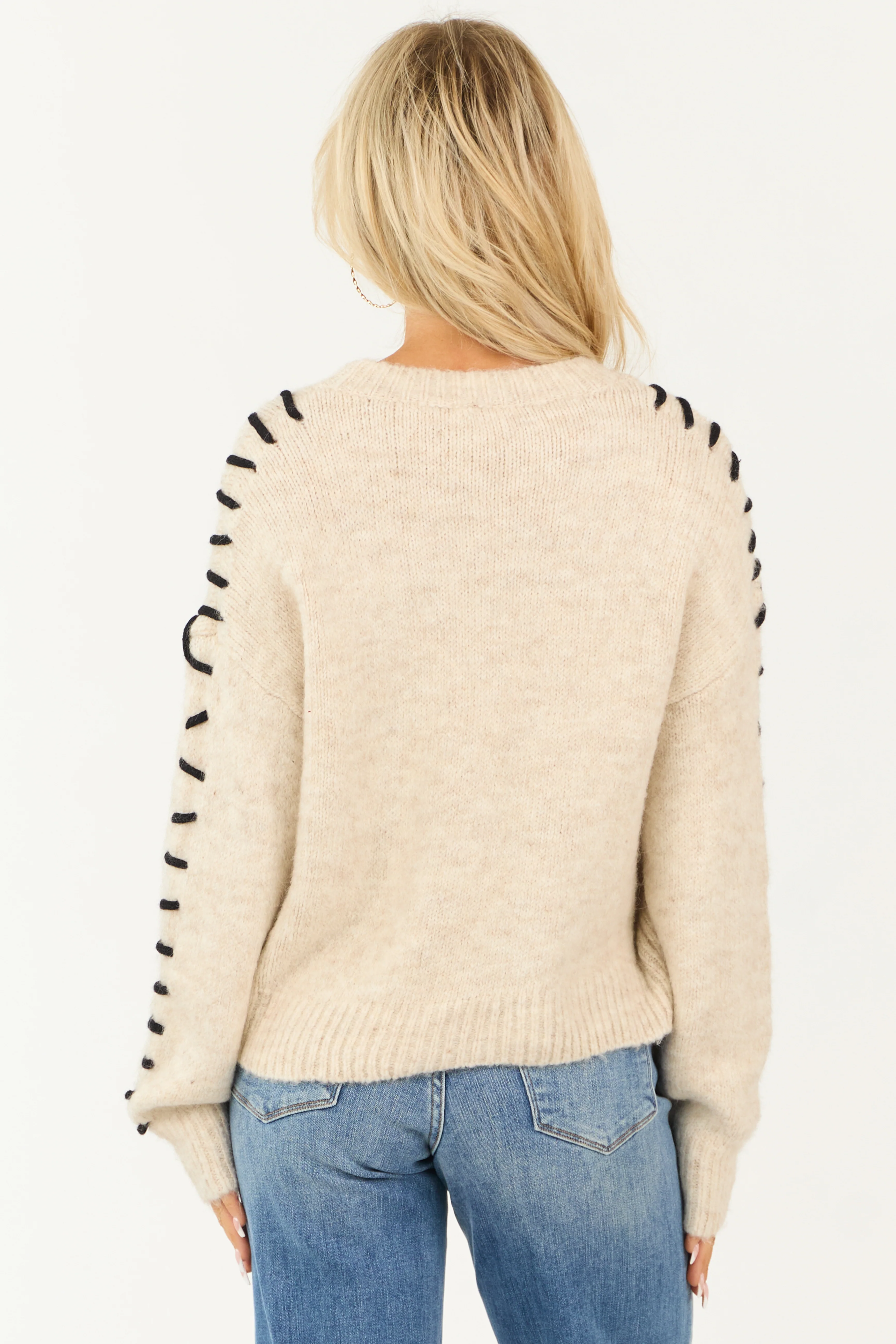 Champagne Knit Sweater with Contrast Yarn Stitch
