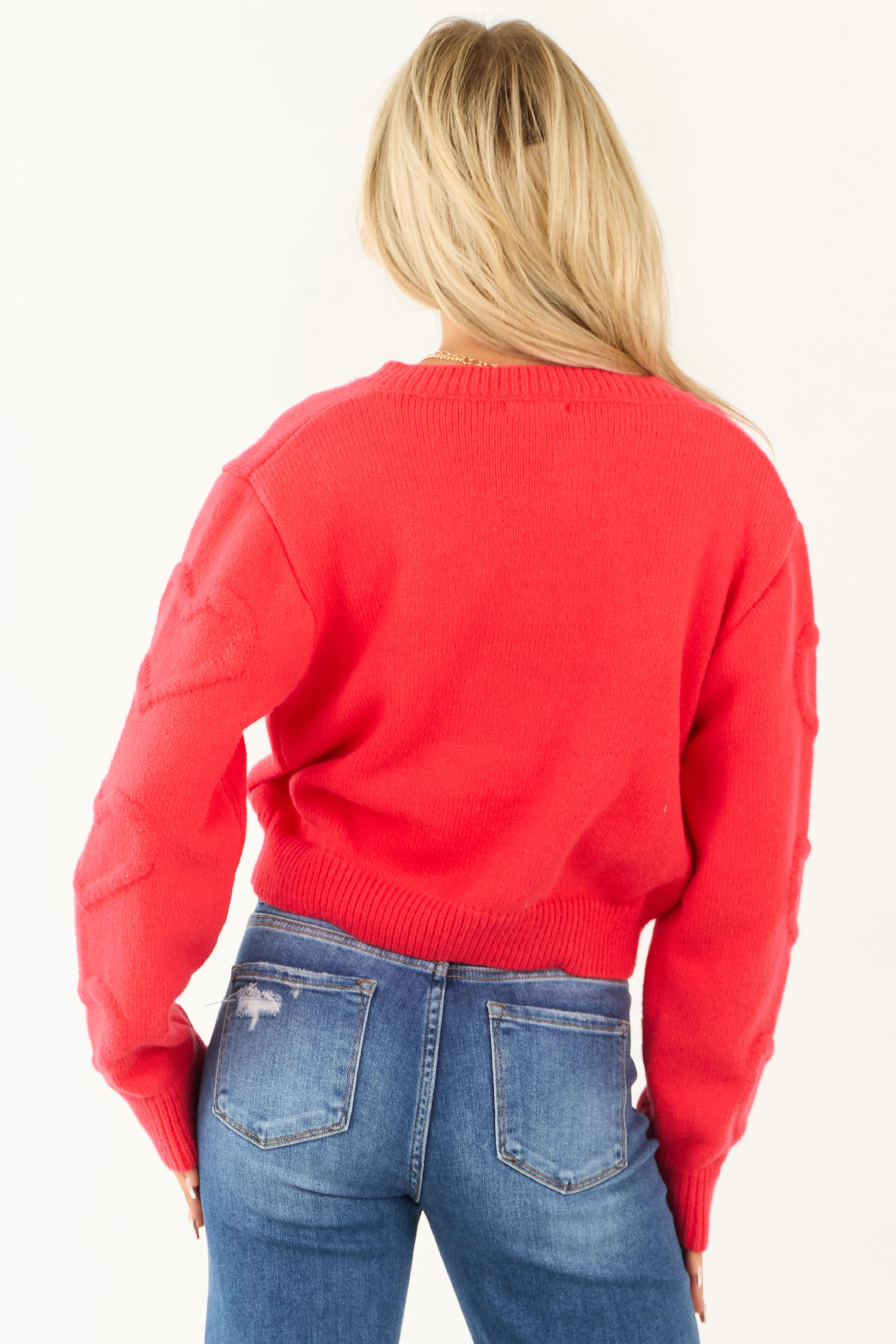 Crimson Textured Heart Button Up Cardigan