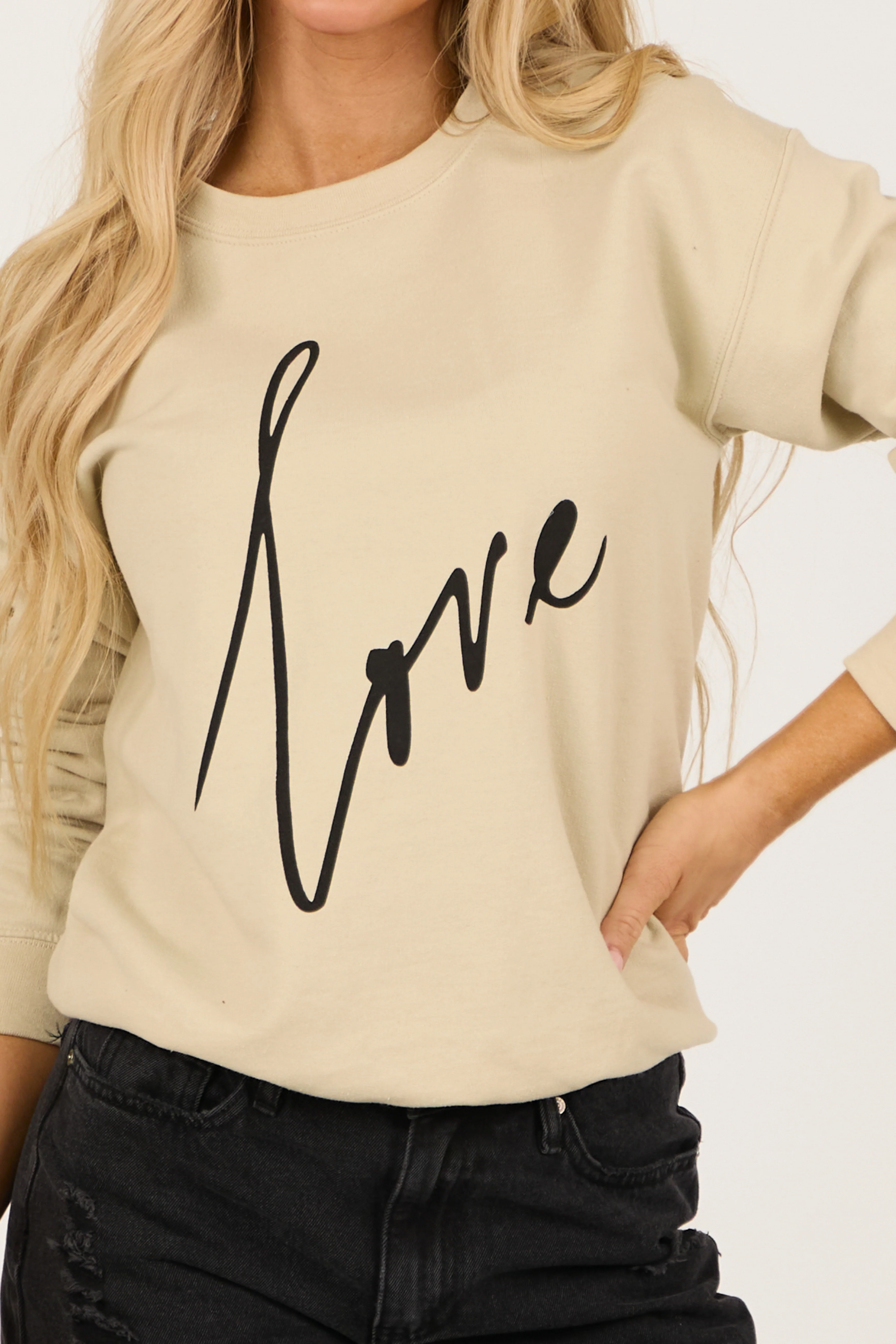 Light Sand 'Love' Graphic Long Sleeve Sweatshirt