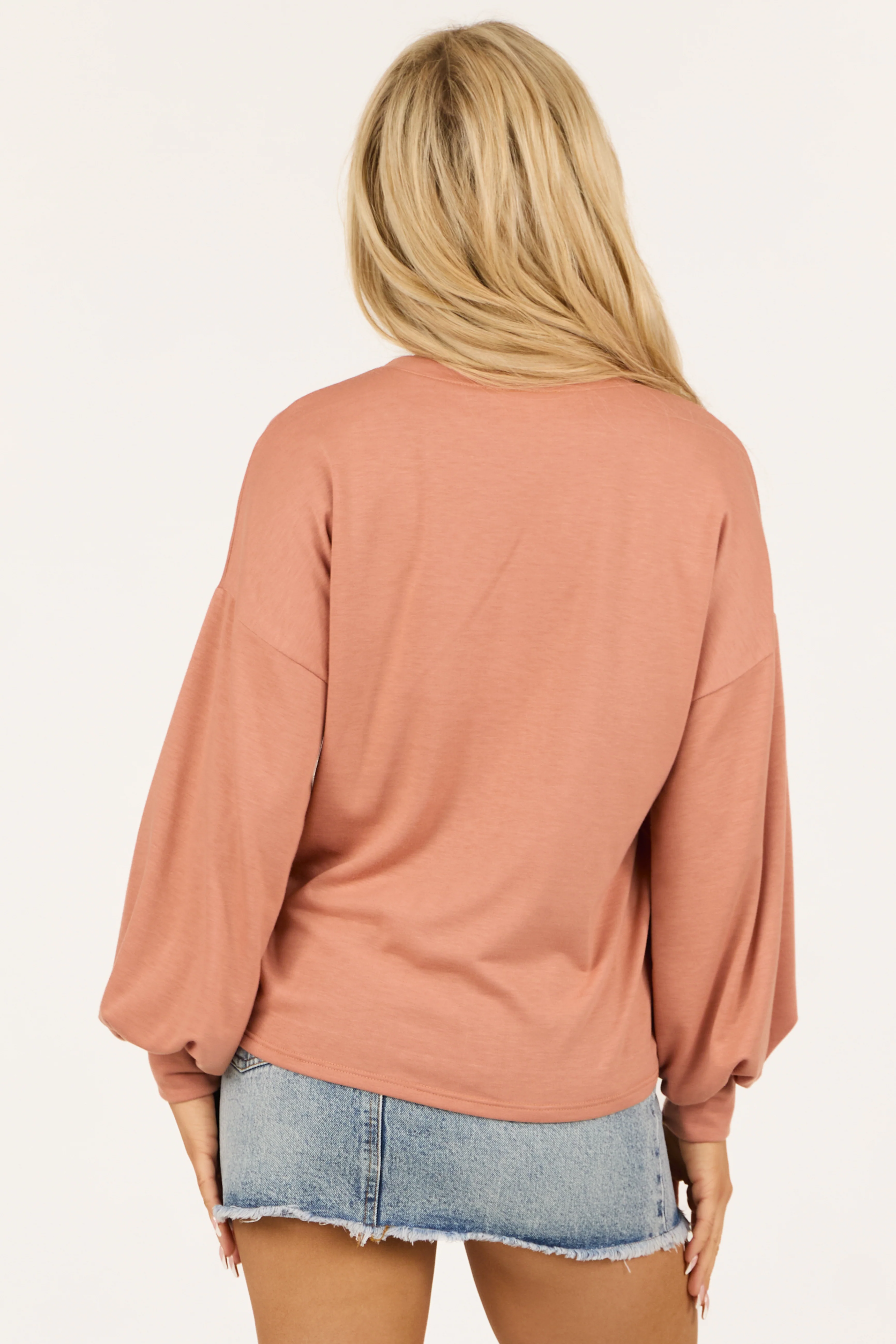 Dusty Blush Faux Leather Puff Sleeve Top