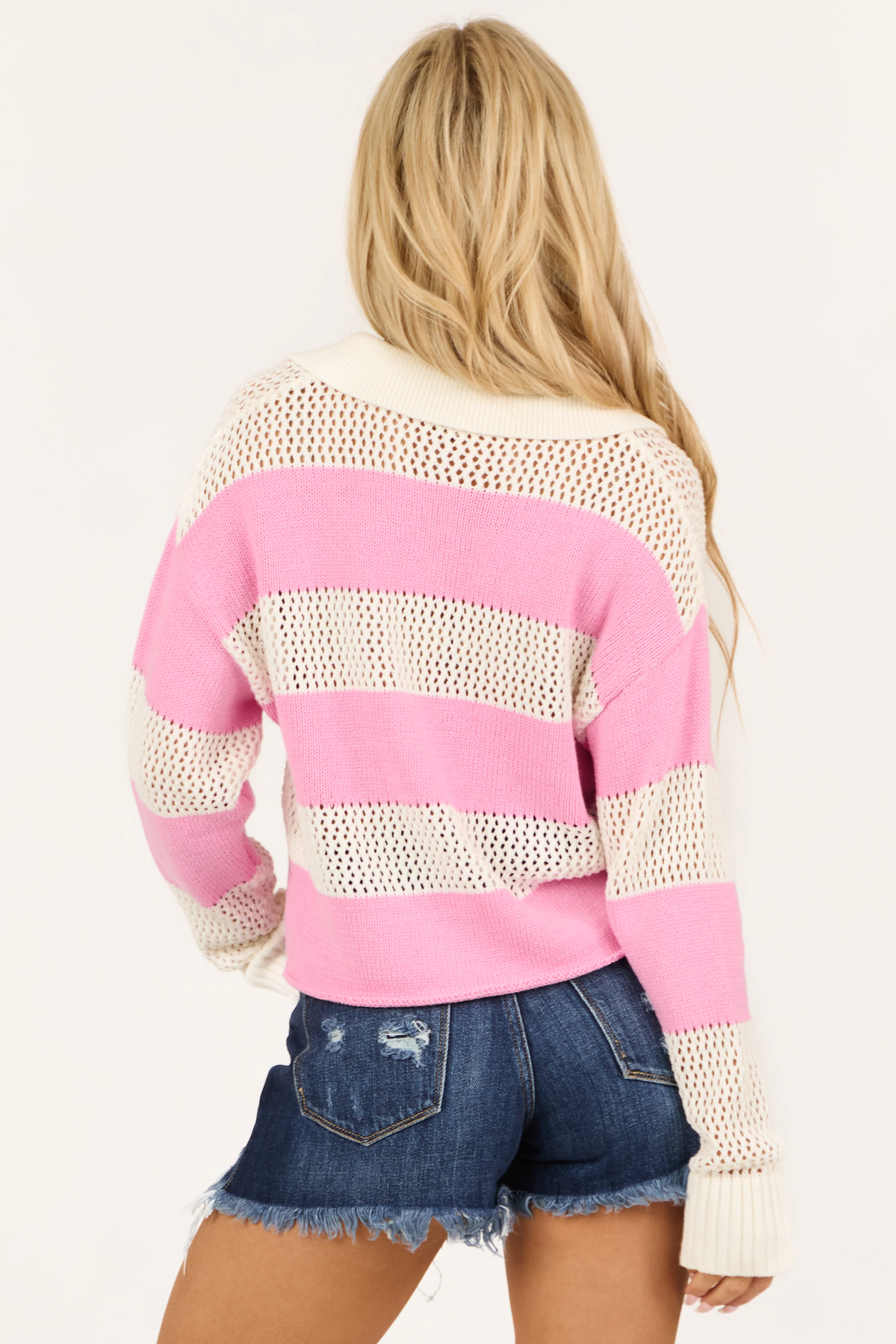 Bubblegum and Ivory Wide Stripe Rugby Sweater