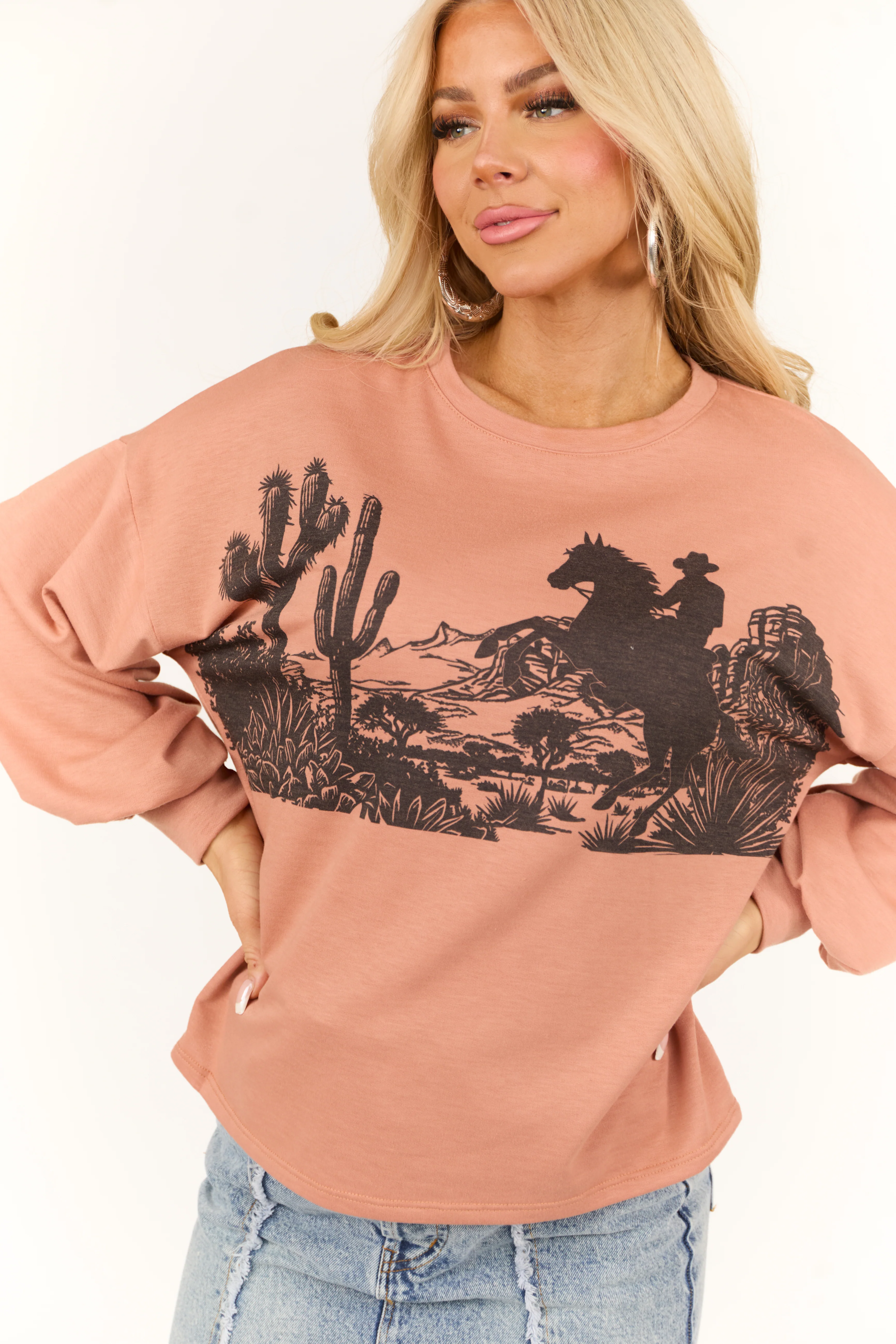 Light Ginger Western Graphic Long Sleeve Top