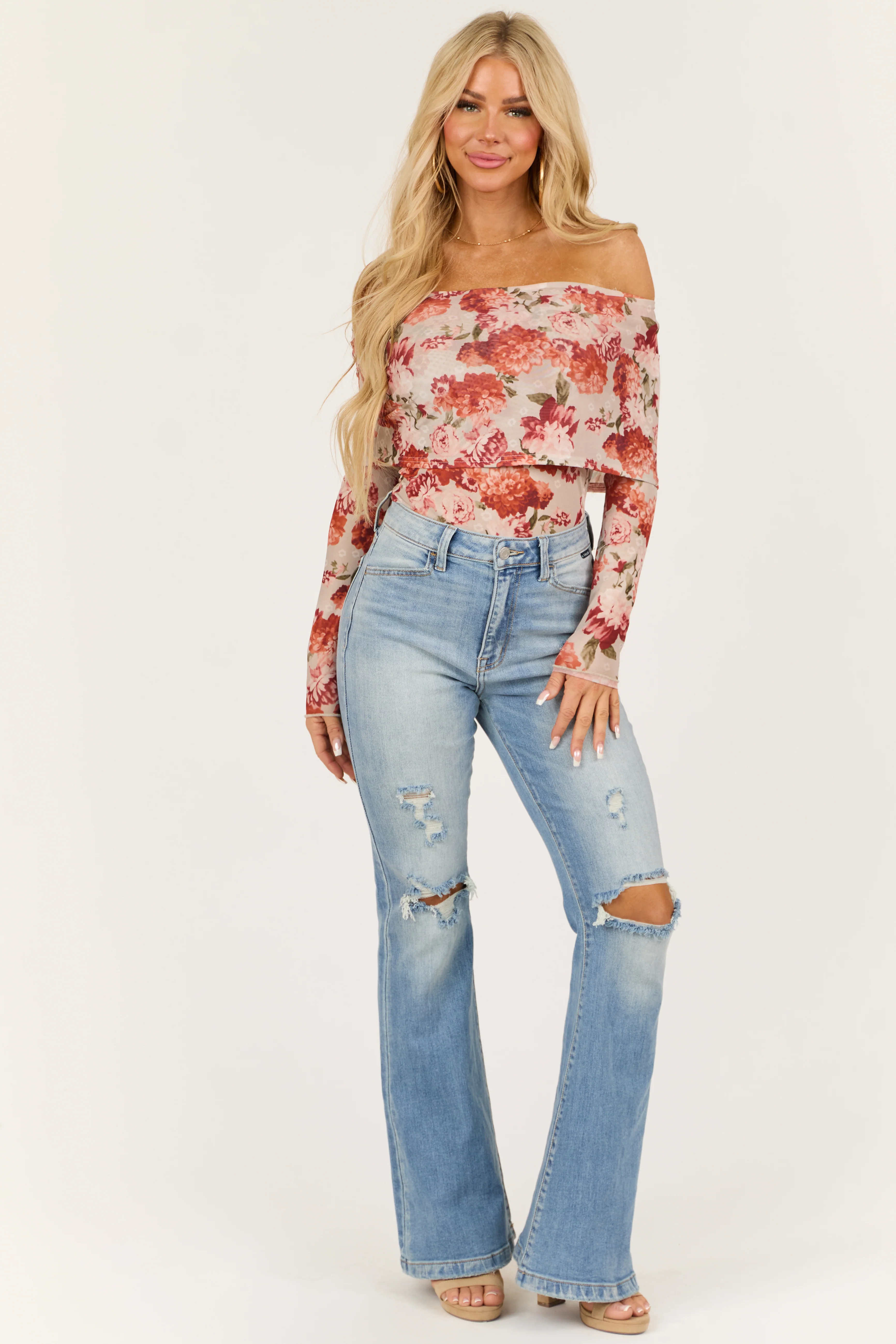 Dove Grey Floral Print Off the Shoulder Bodysuit