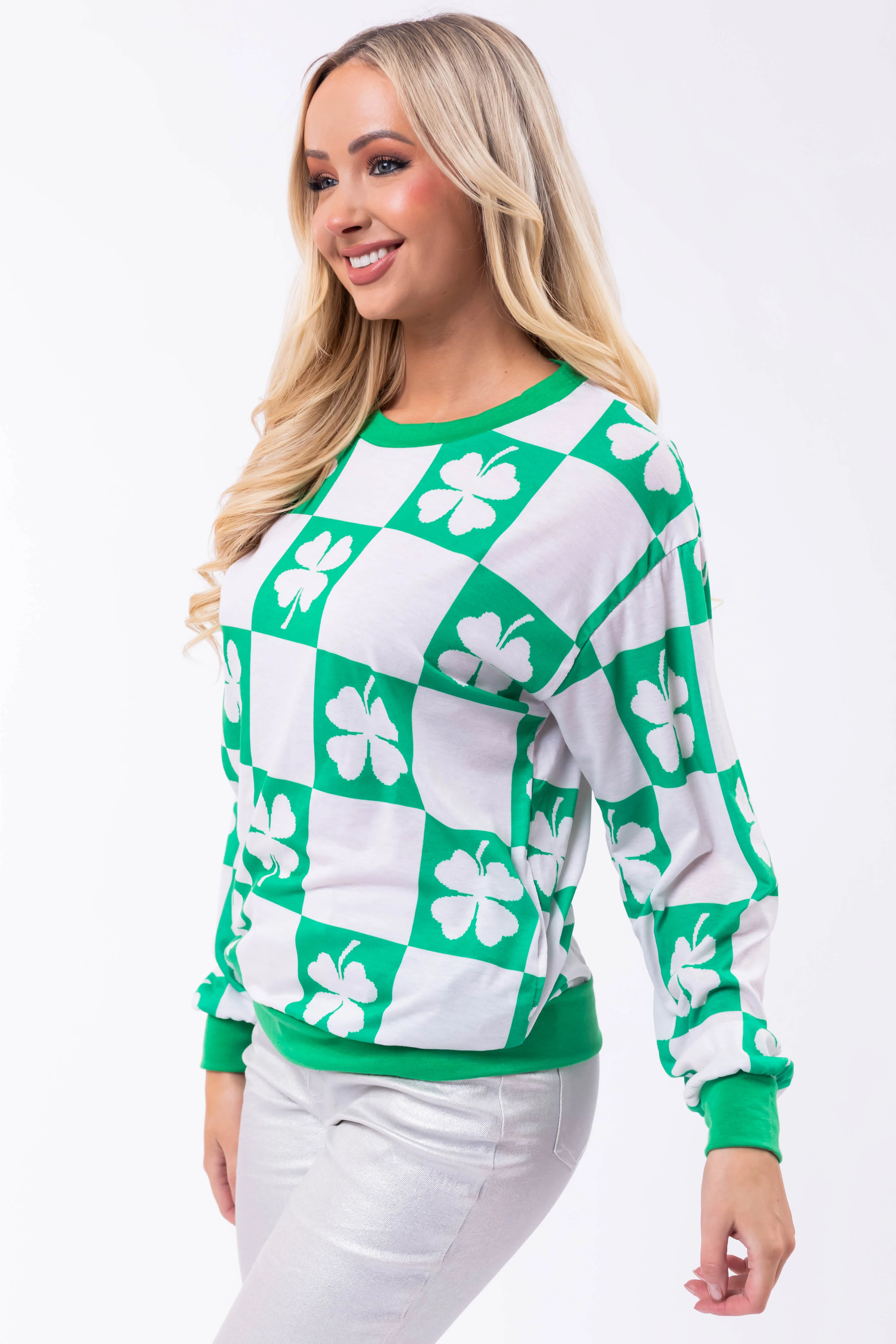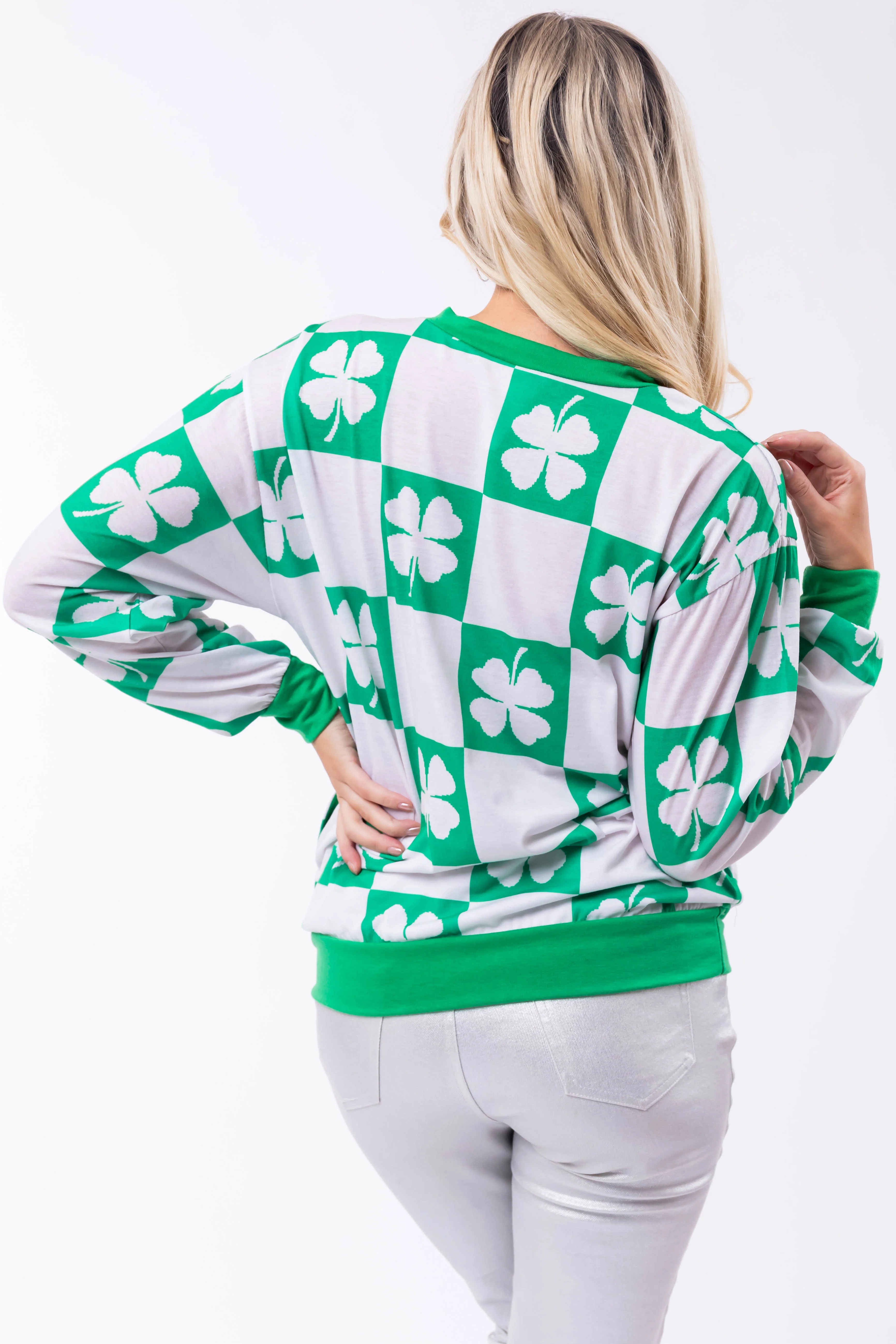 Jade Checkered Clover Lightweight Sweatshirt
