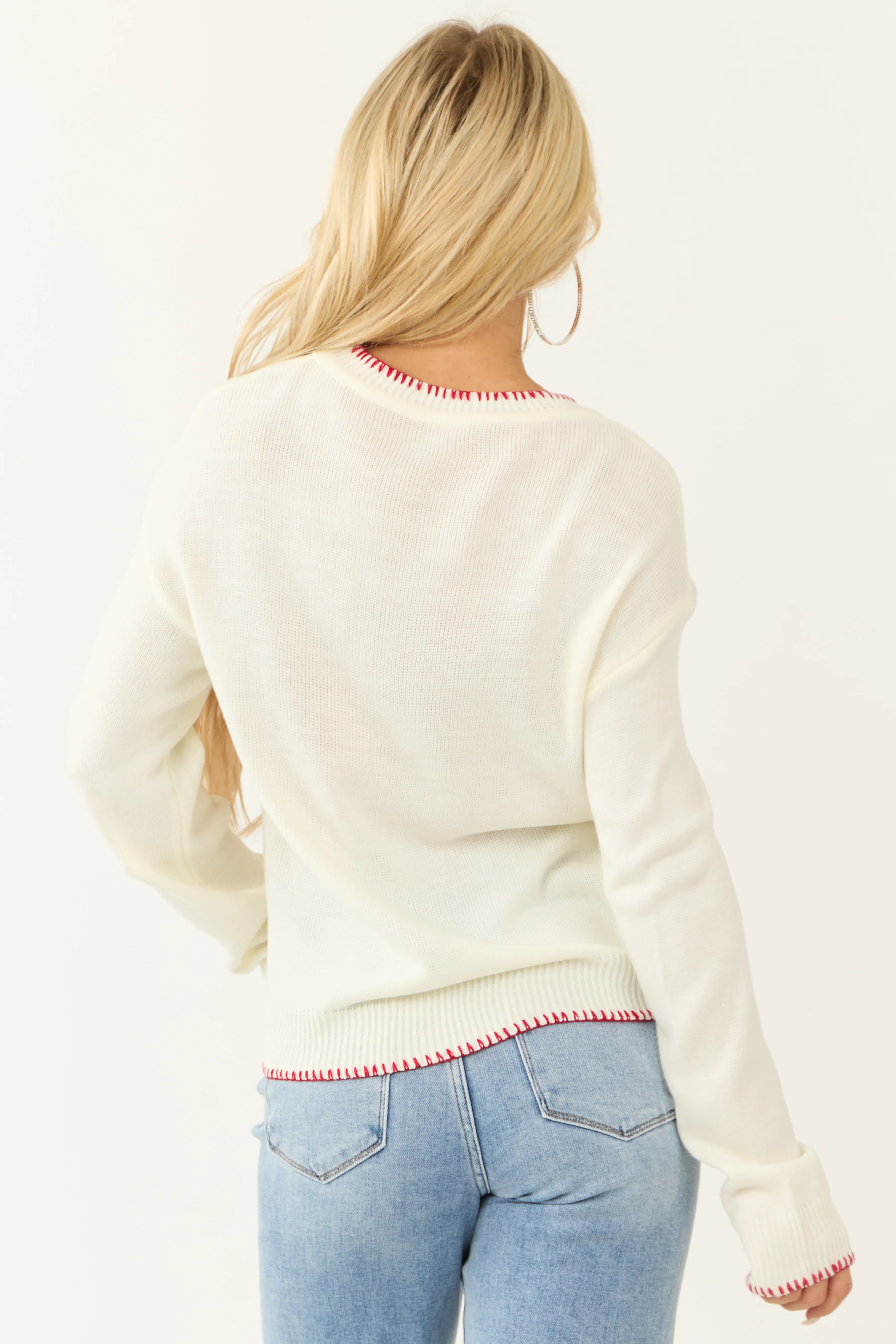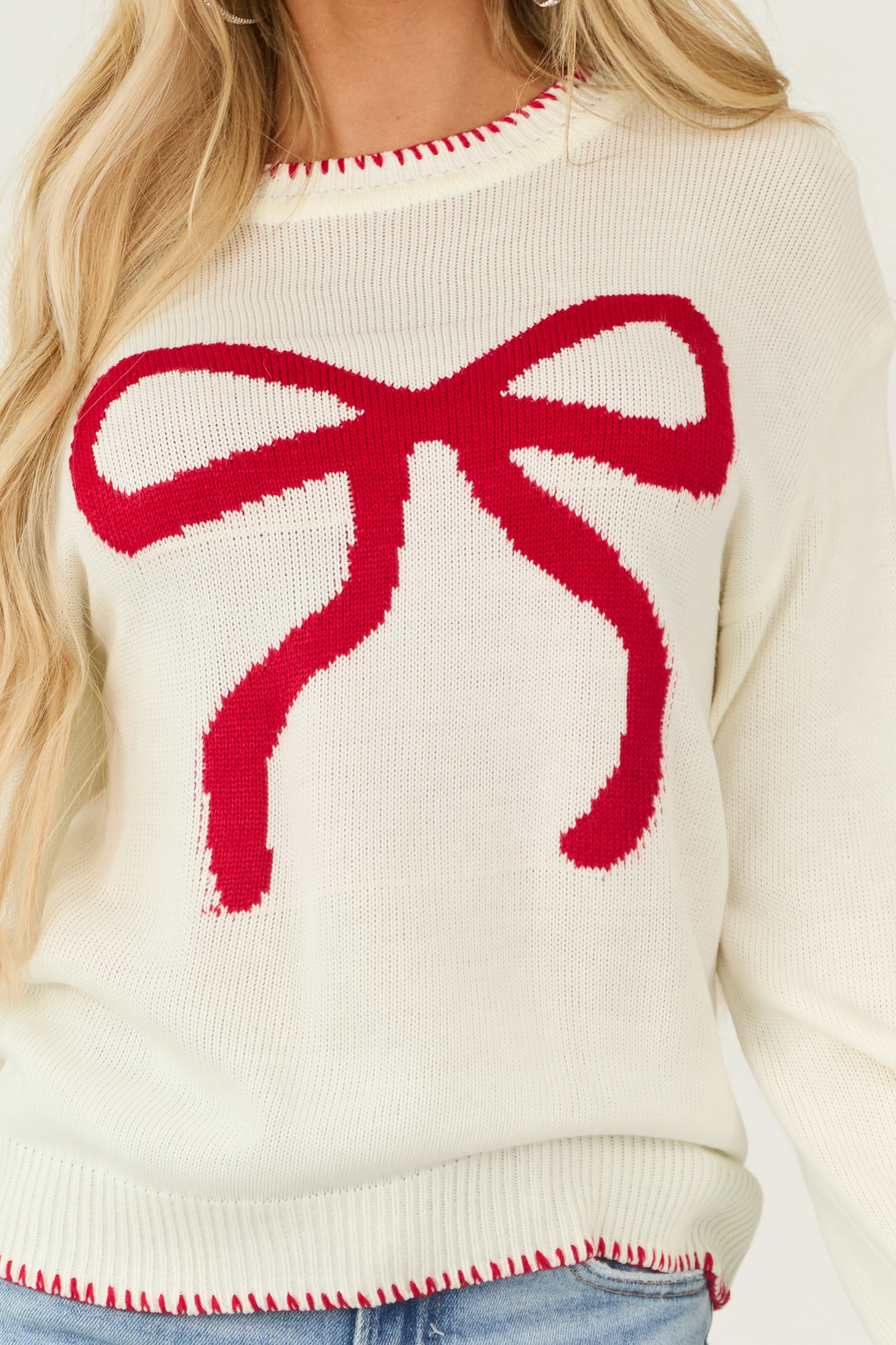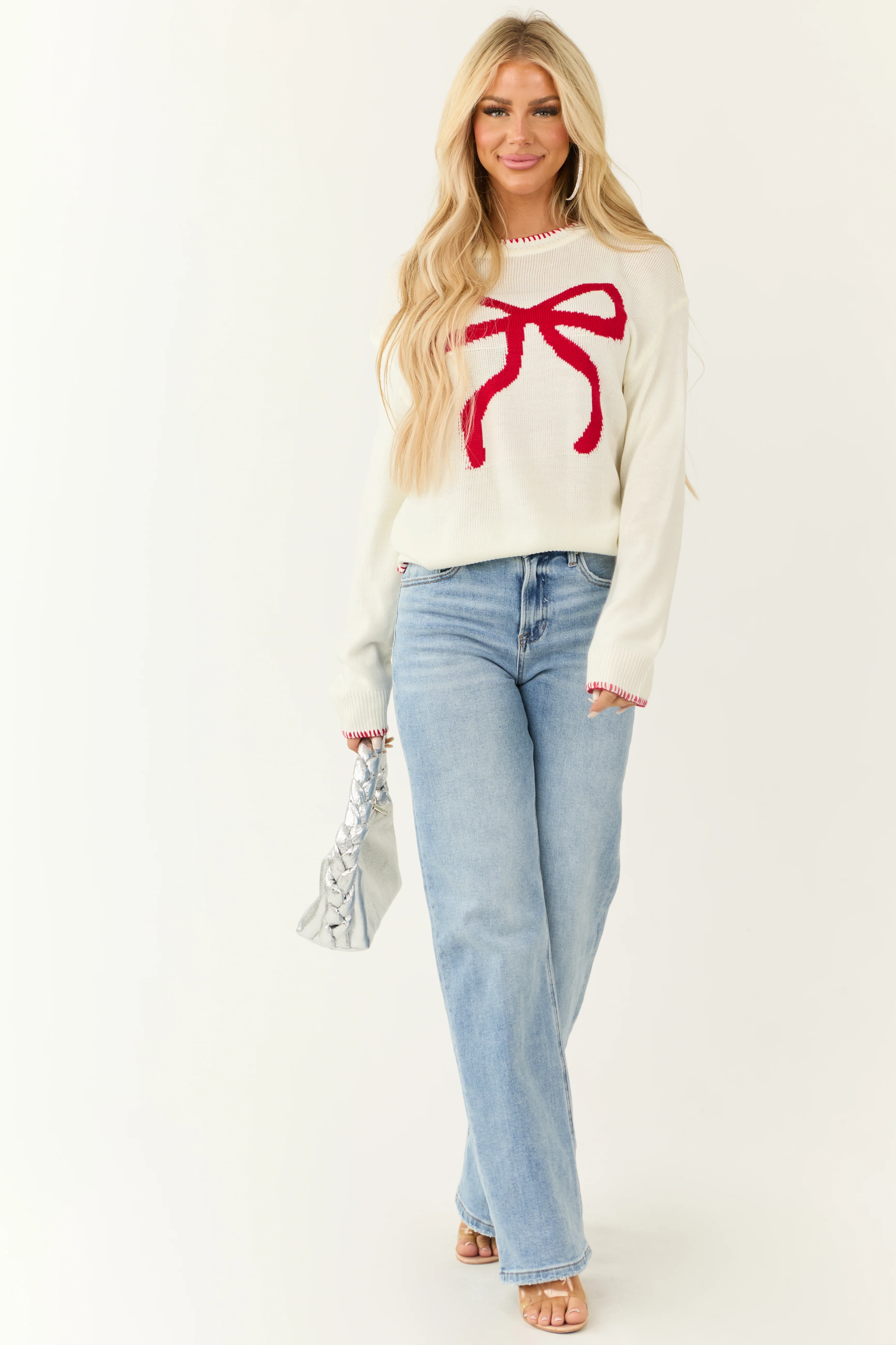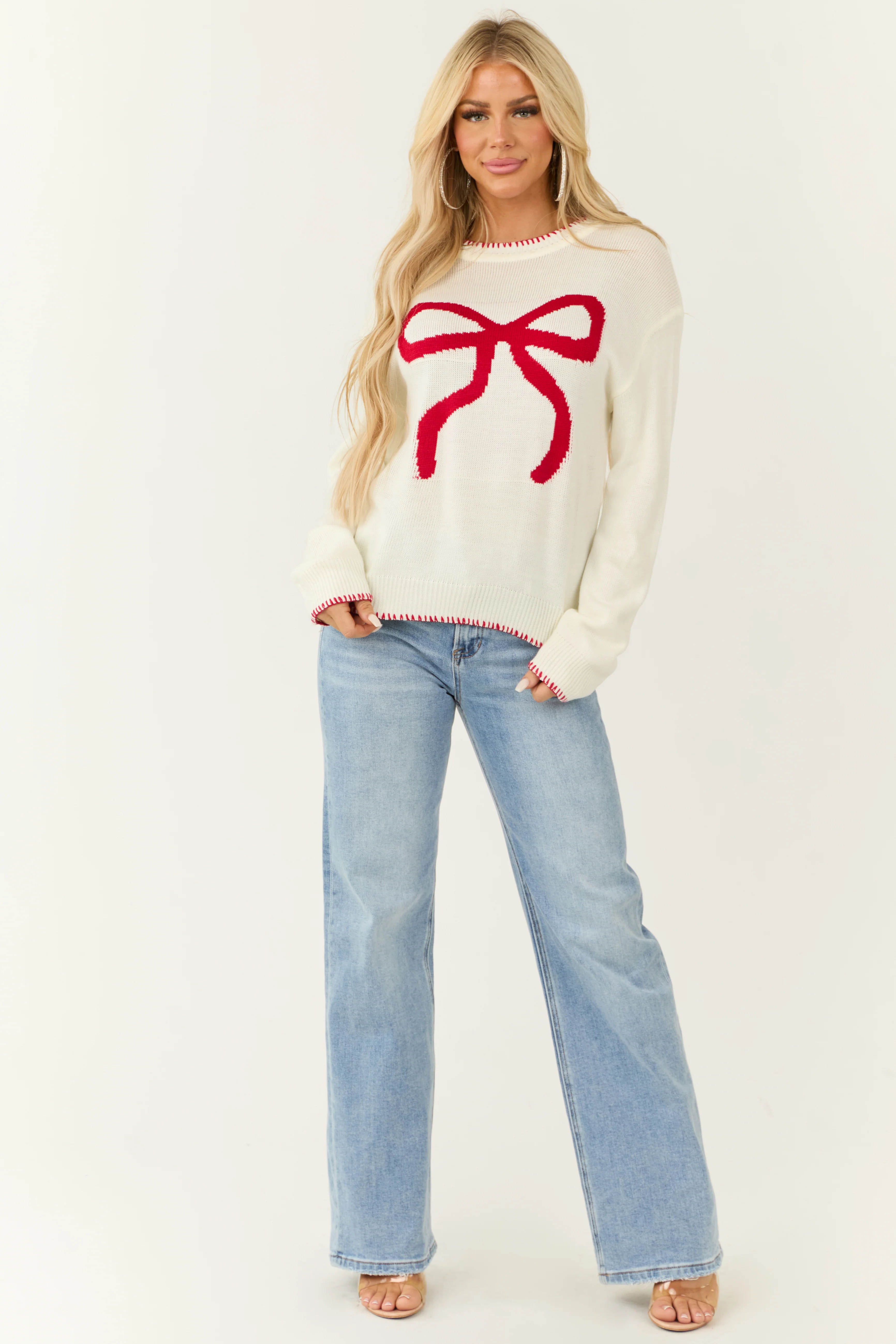 Ivory Bow Graphic Crew Neck Long Sleeve Sweater