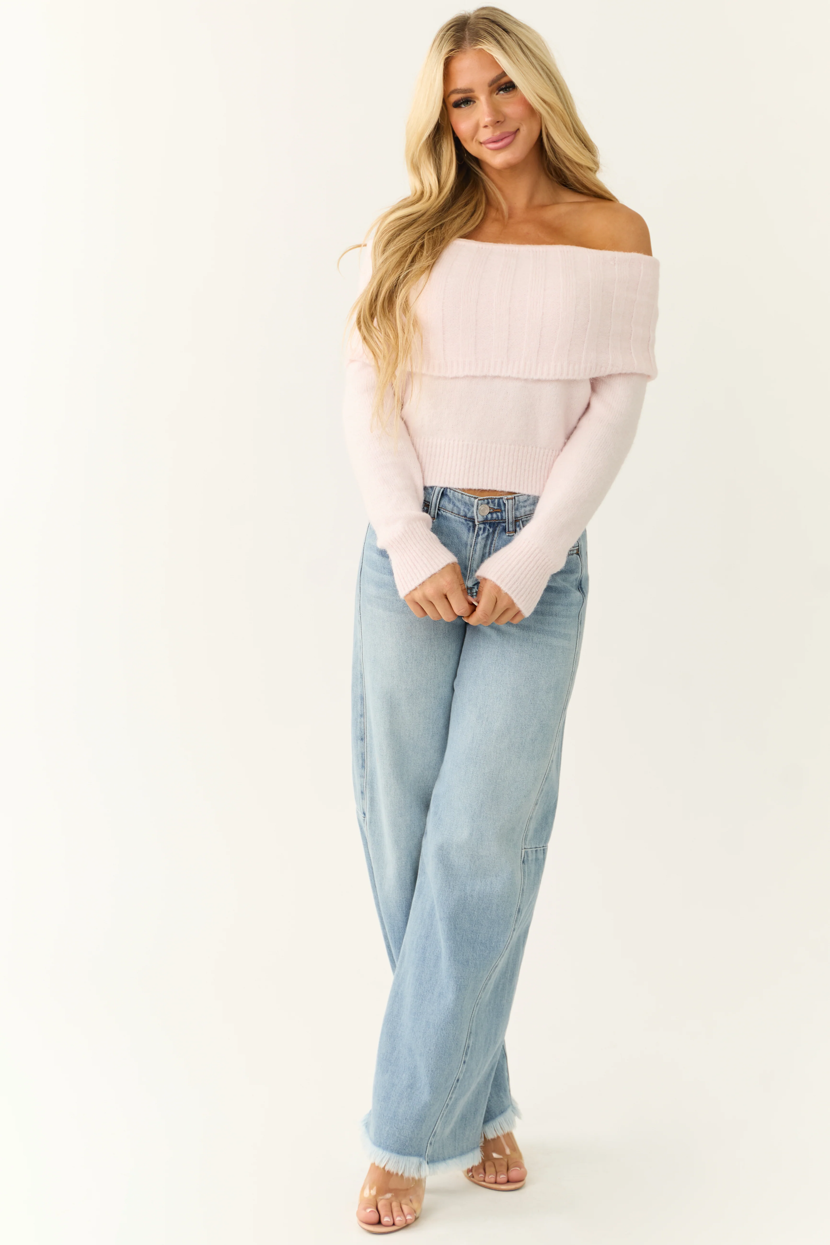 Dusty Blush Soft Off Shoulder Neckline Sweater
