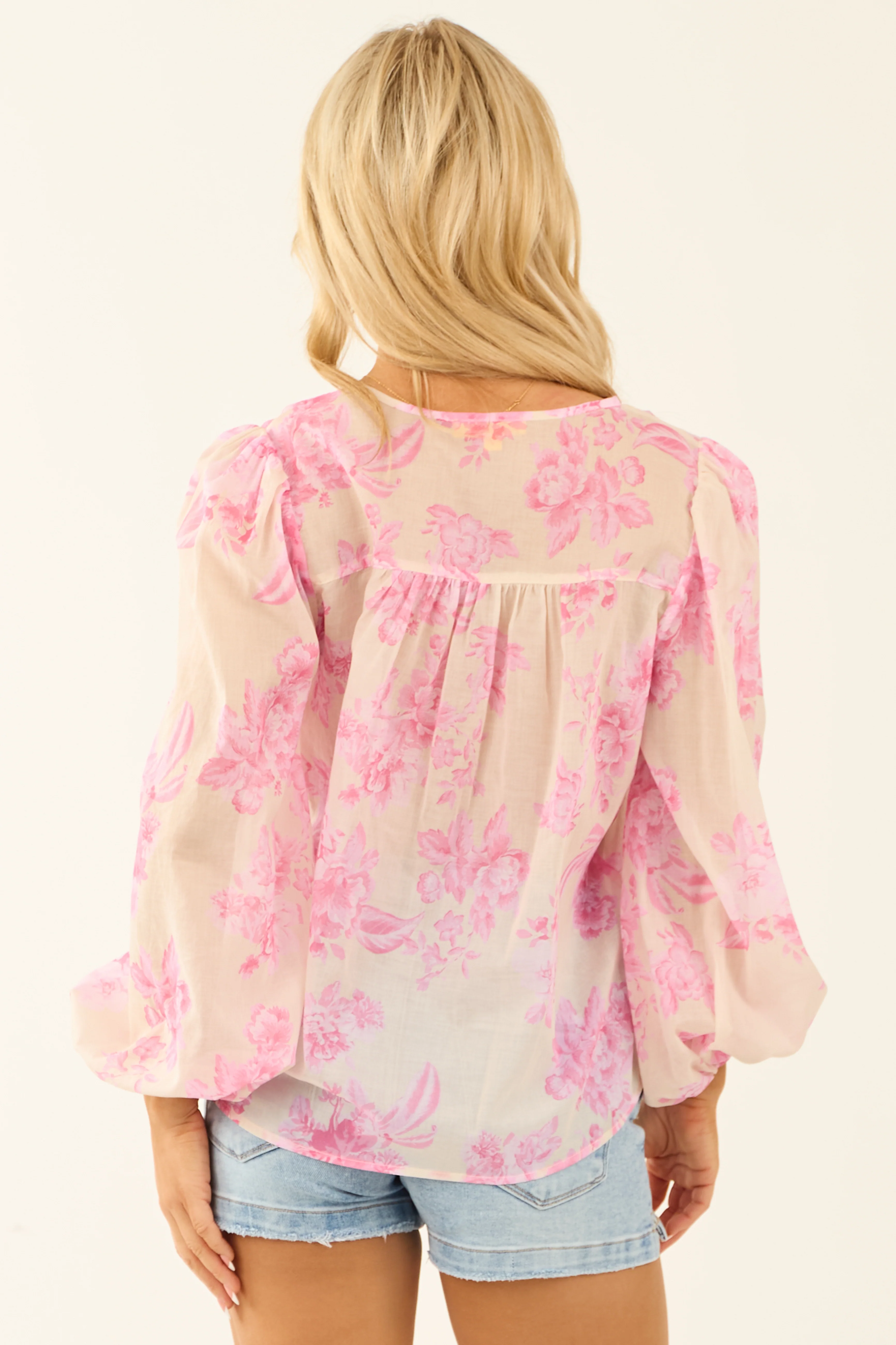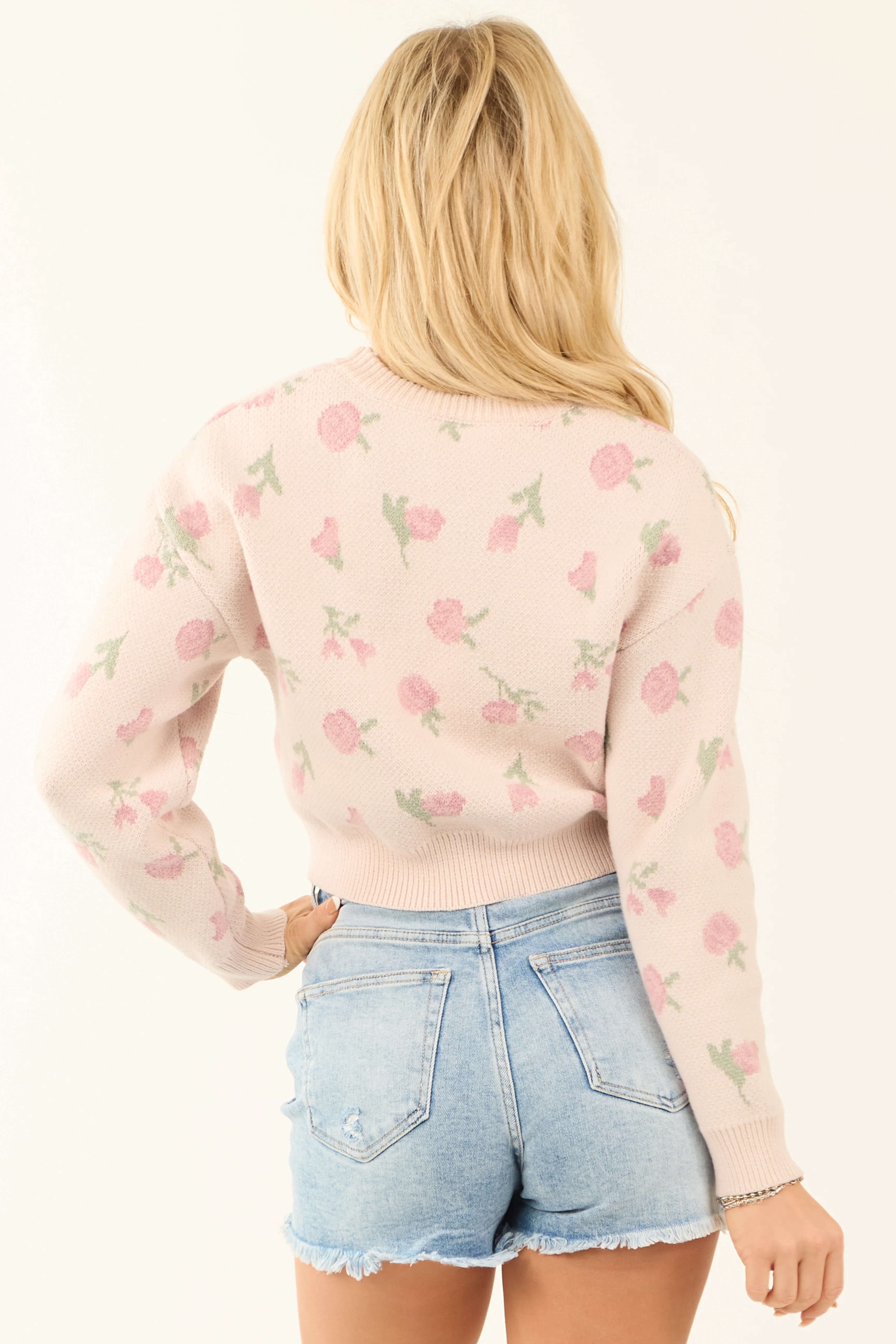 Dusty Blush Floral Print Slight Crop Sweater