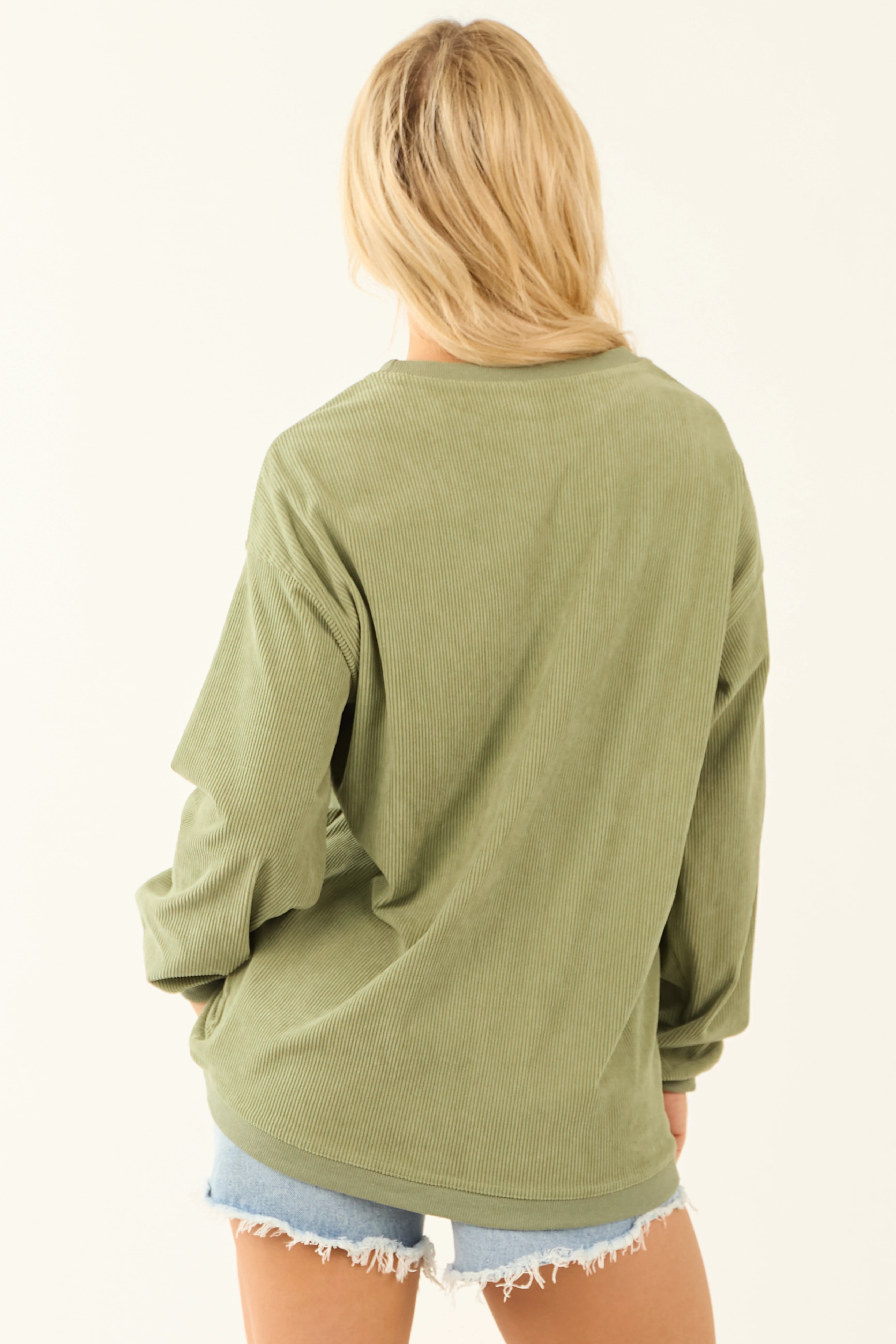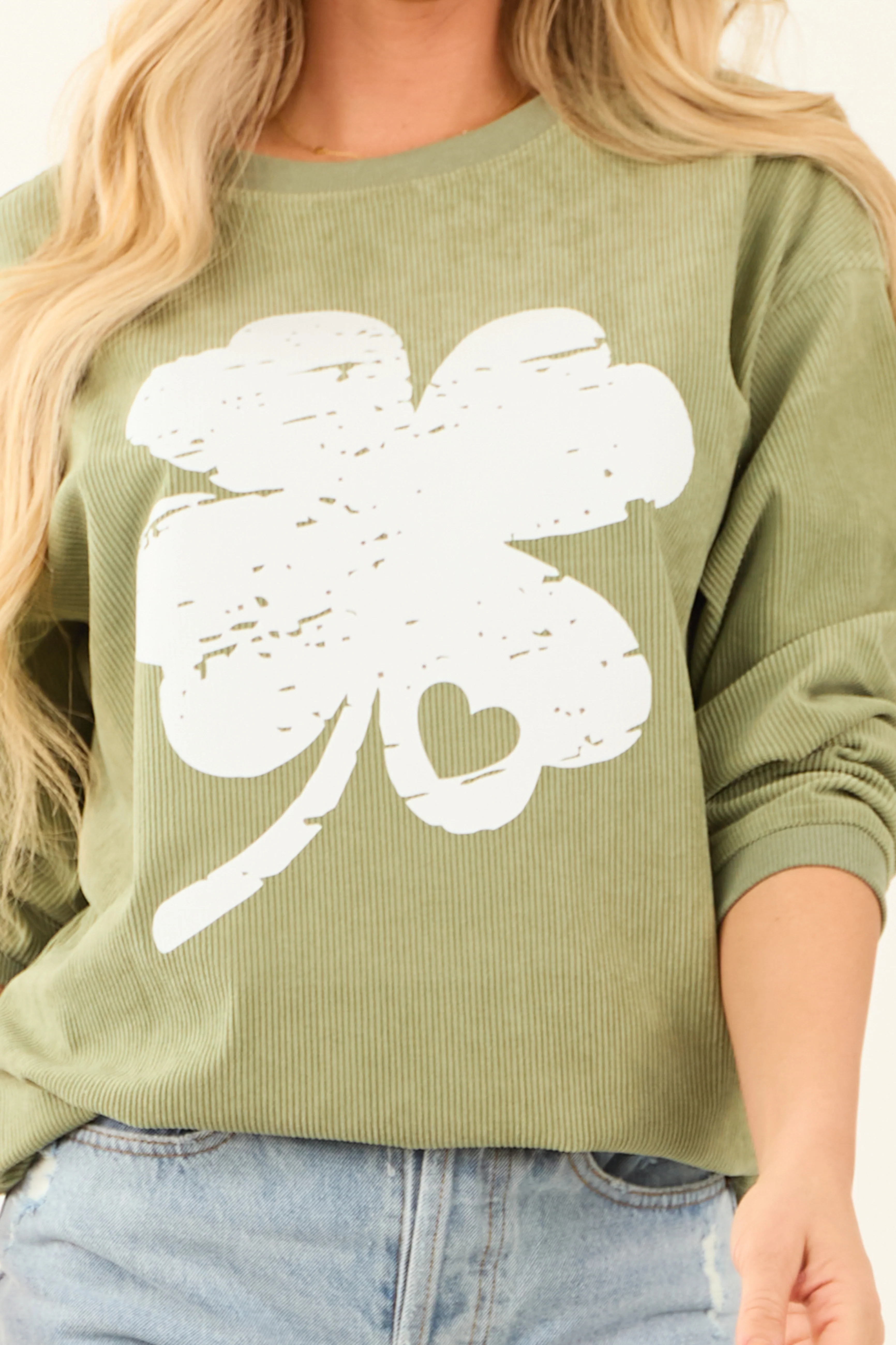 Pistachio Clover Graphic Ribbed Sweatshirt