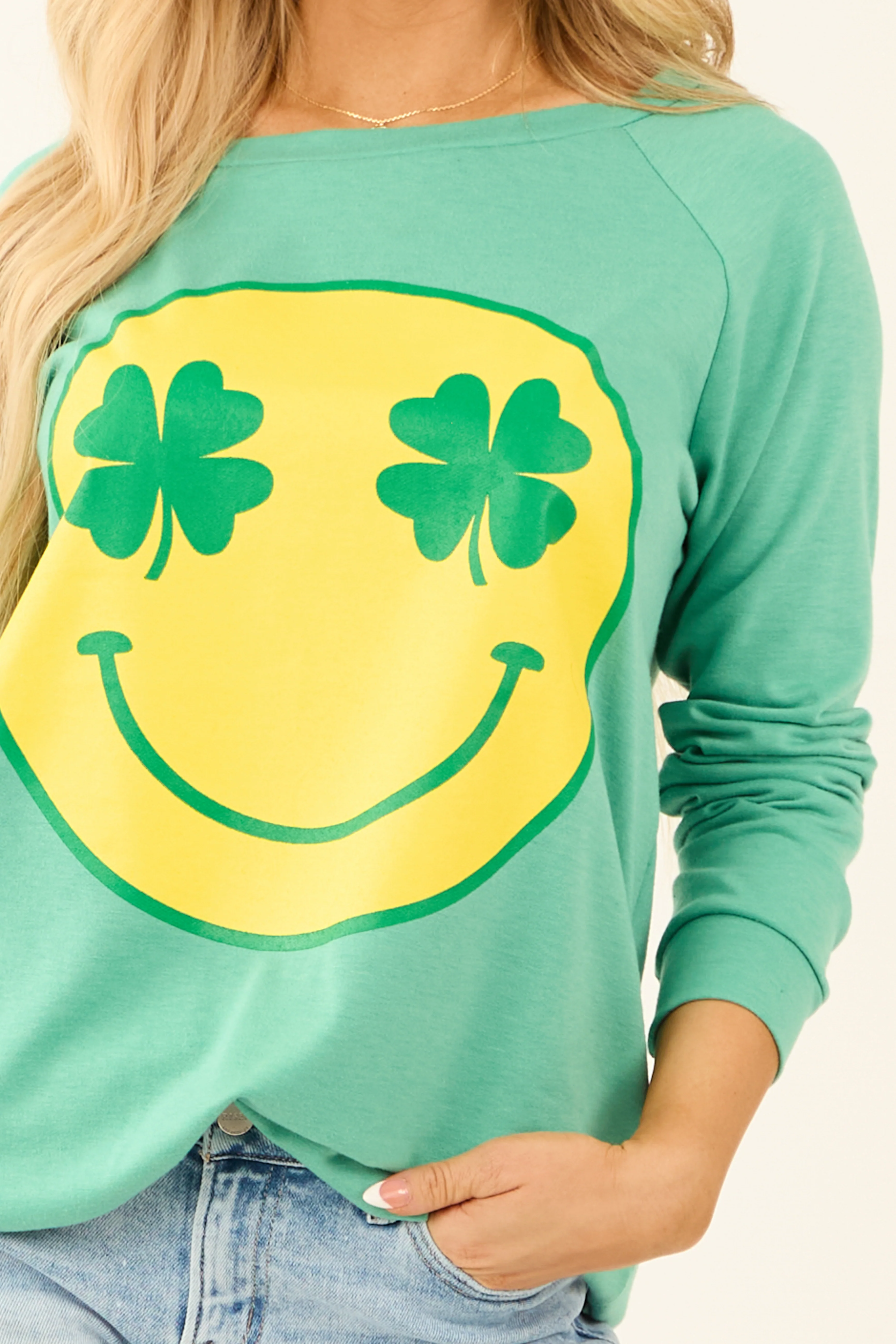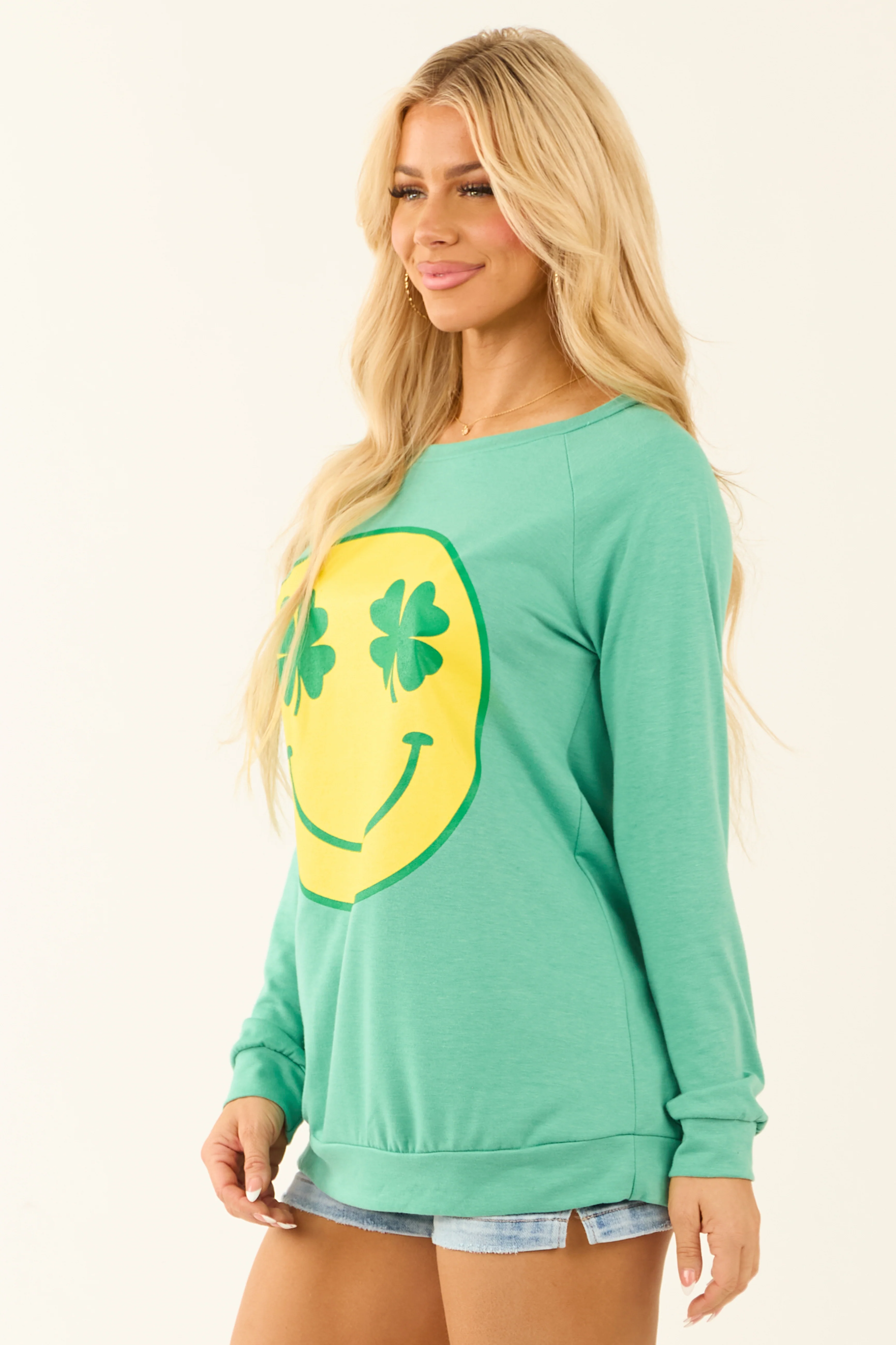 Seafoam Clover Smiley Graphic Pullover