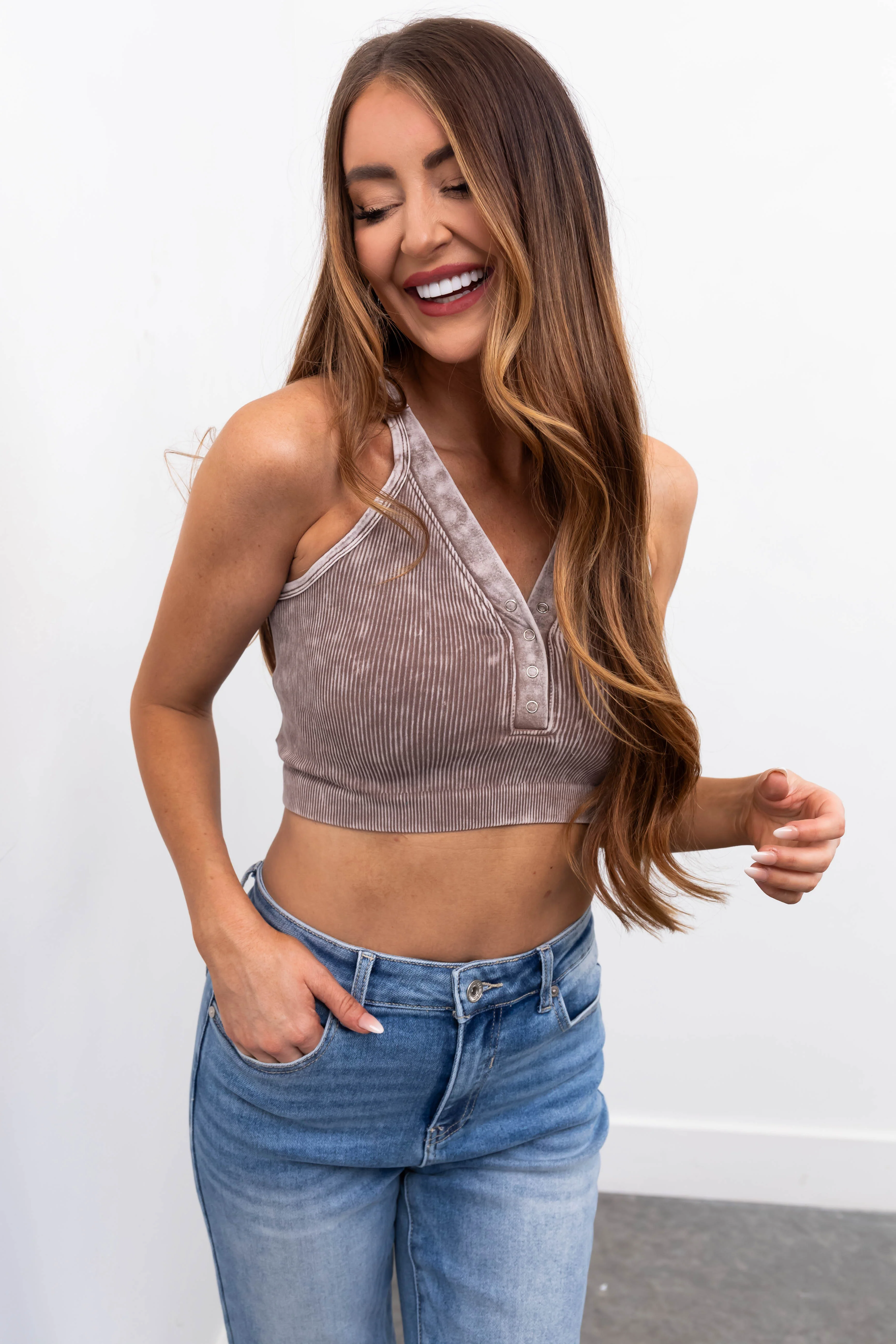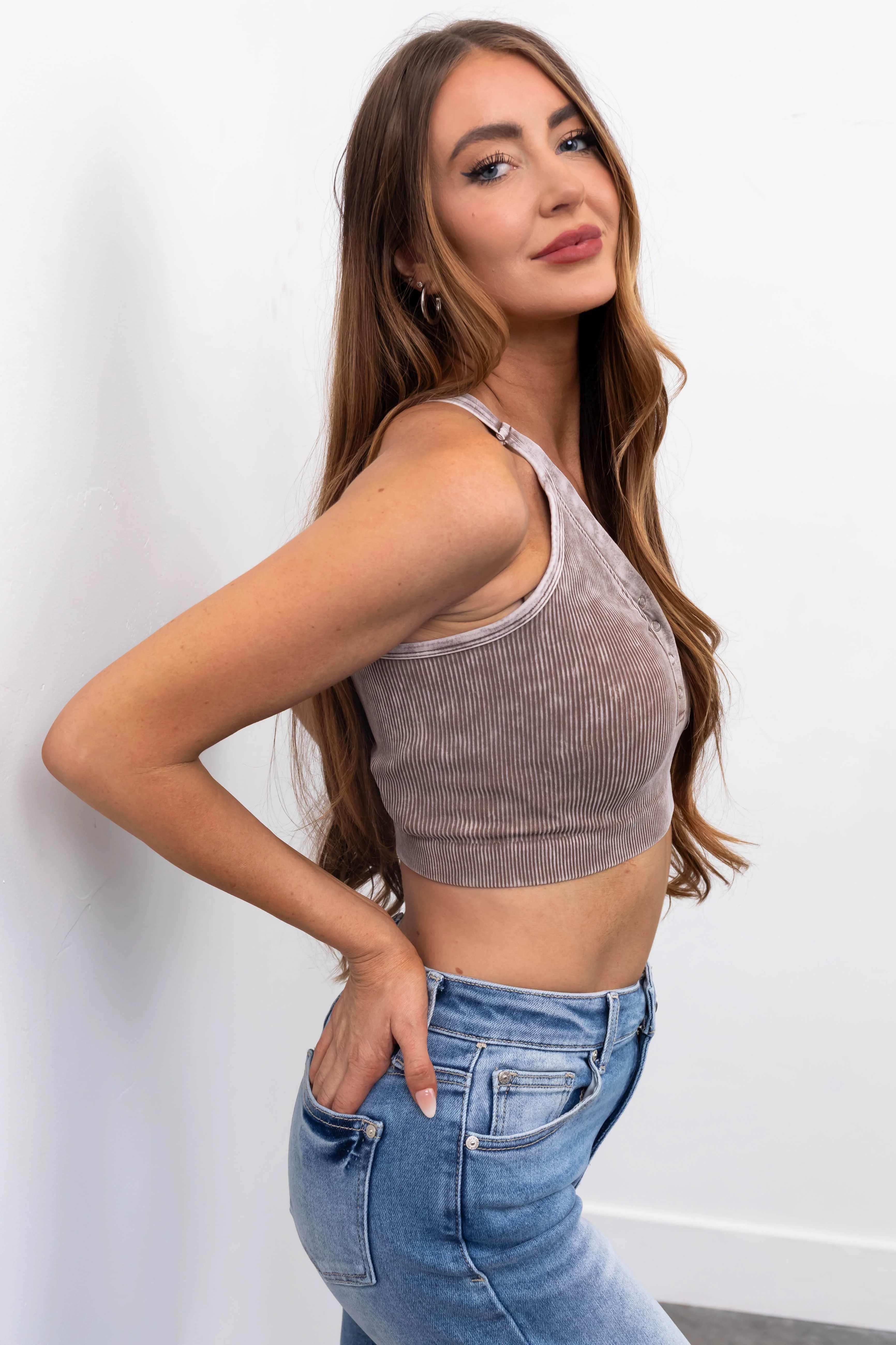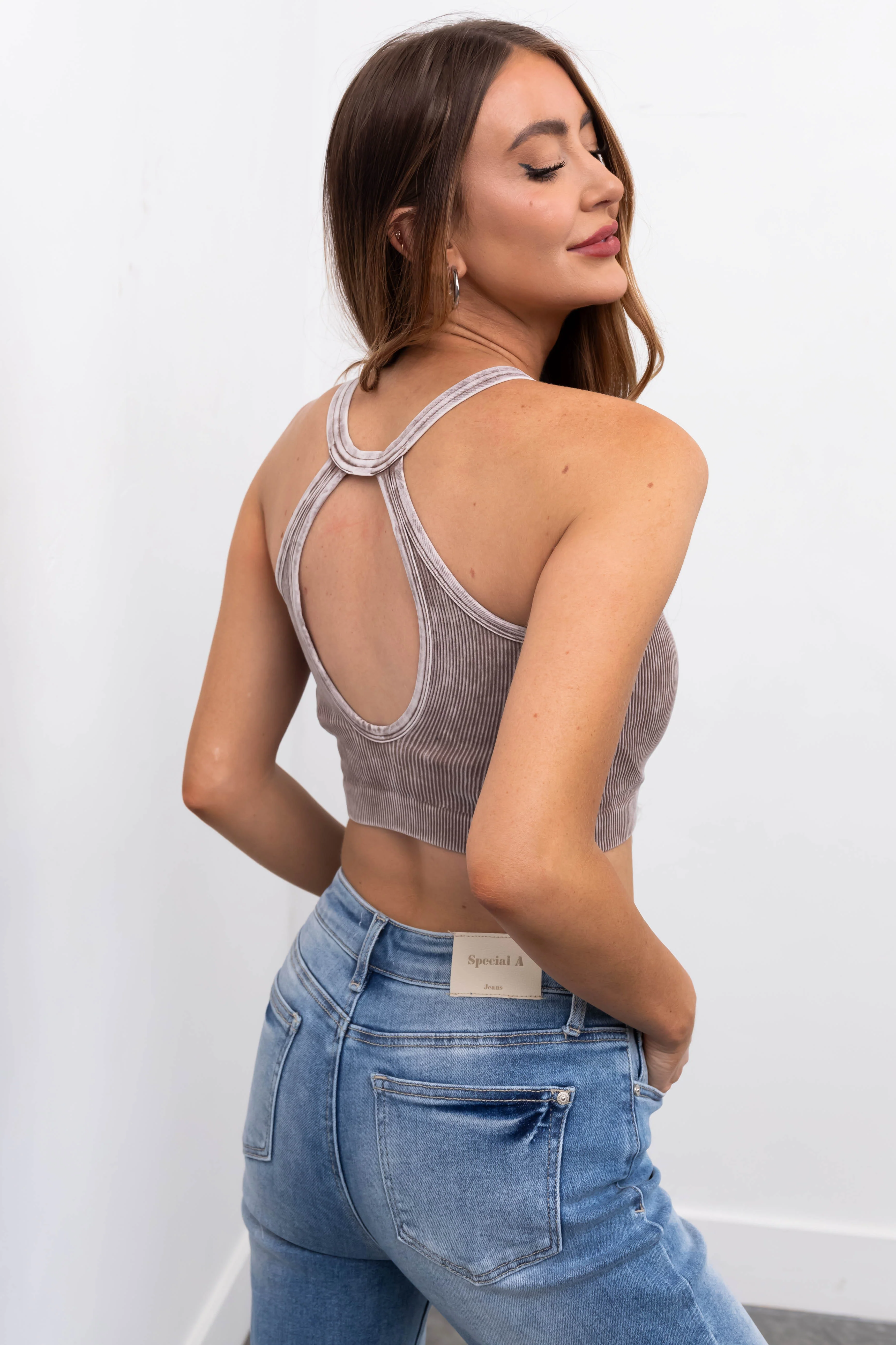 Latte Sleeveless Washed Ribbed Crop Top