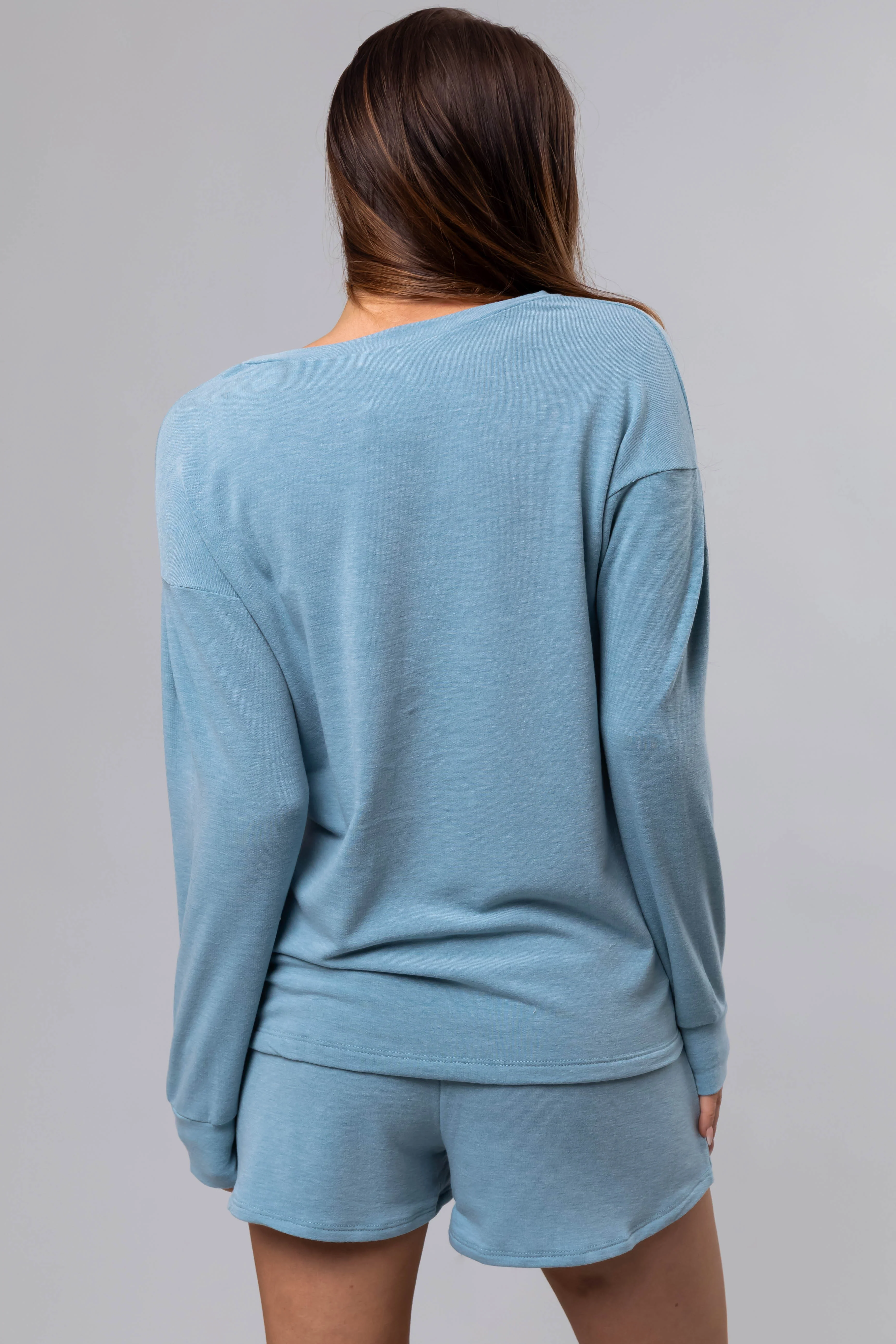 Heathered Blue Long Sleeve Soft Knit Top