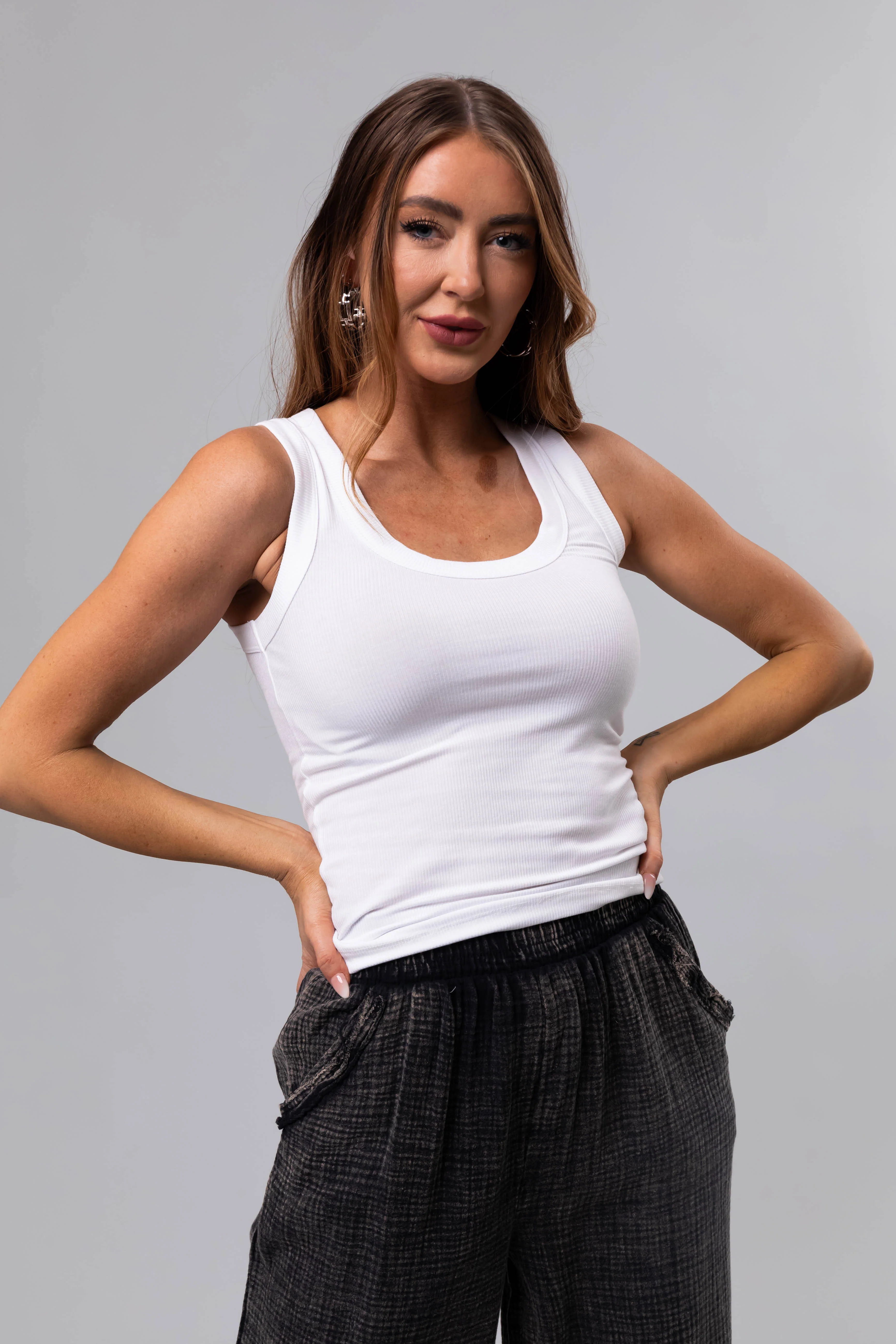 Off White Soft Ribbed Scoop Neck Tank Top