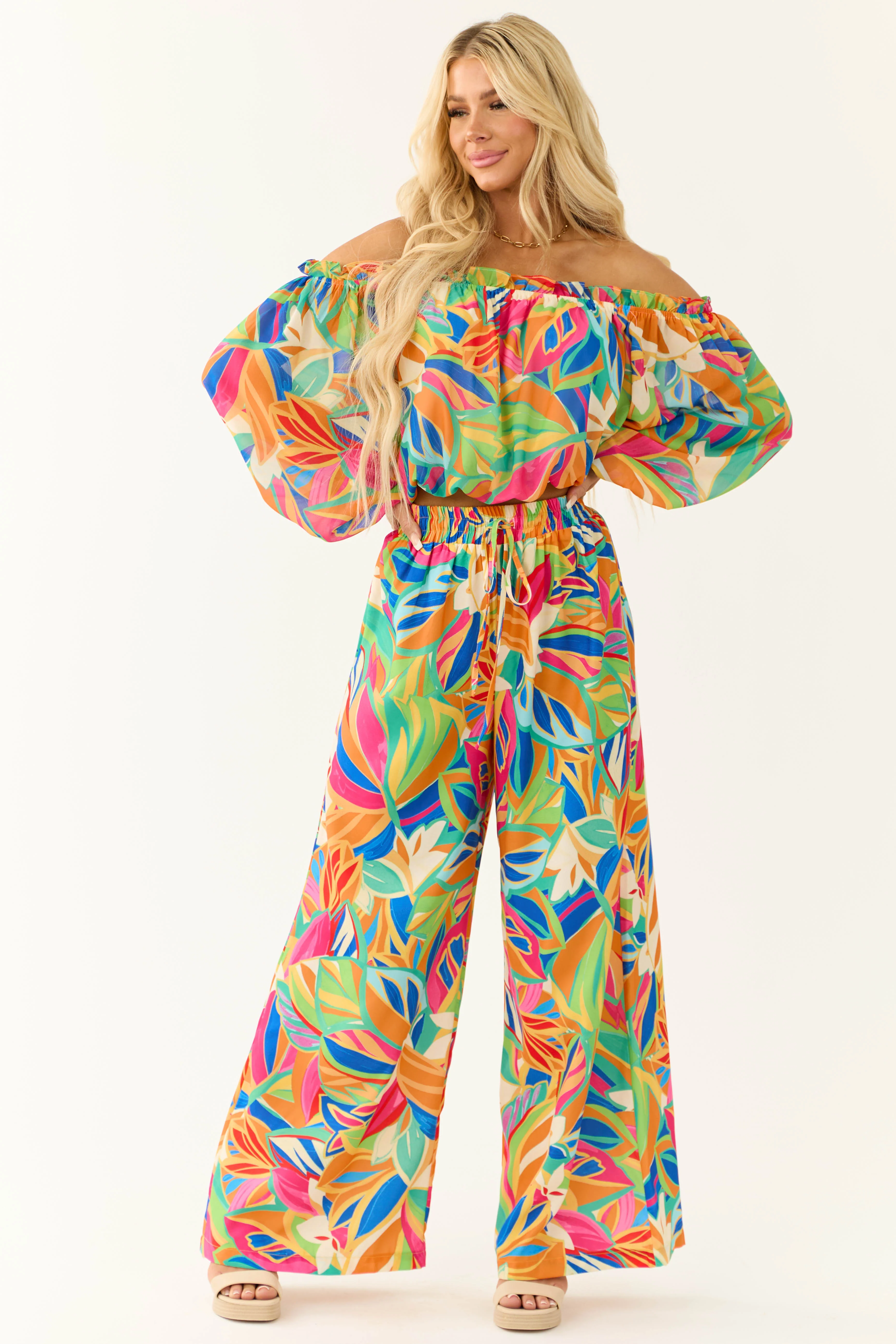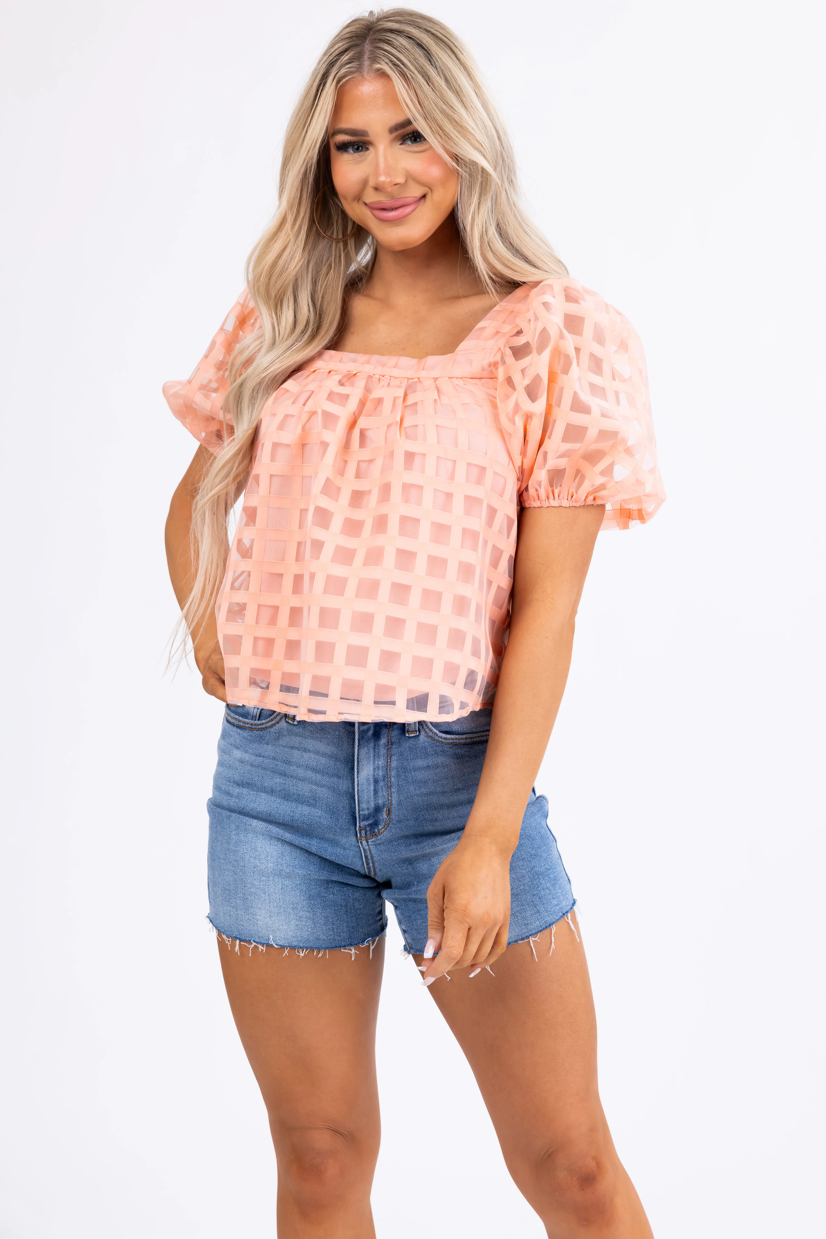 She+Sky Coral Puff Sleeve Square Neck Top