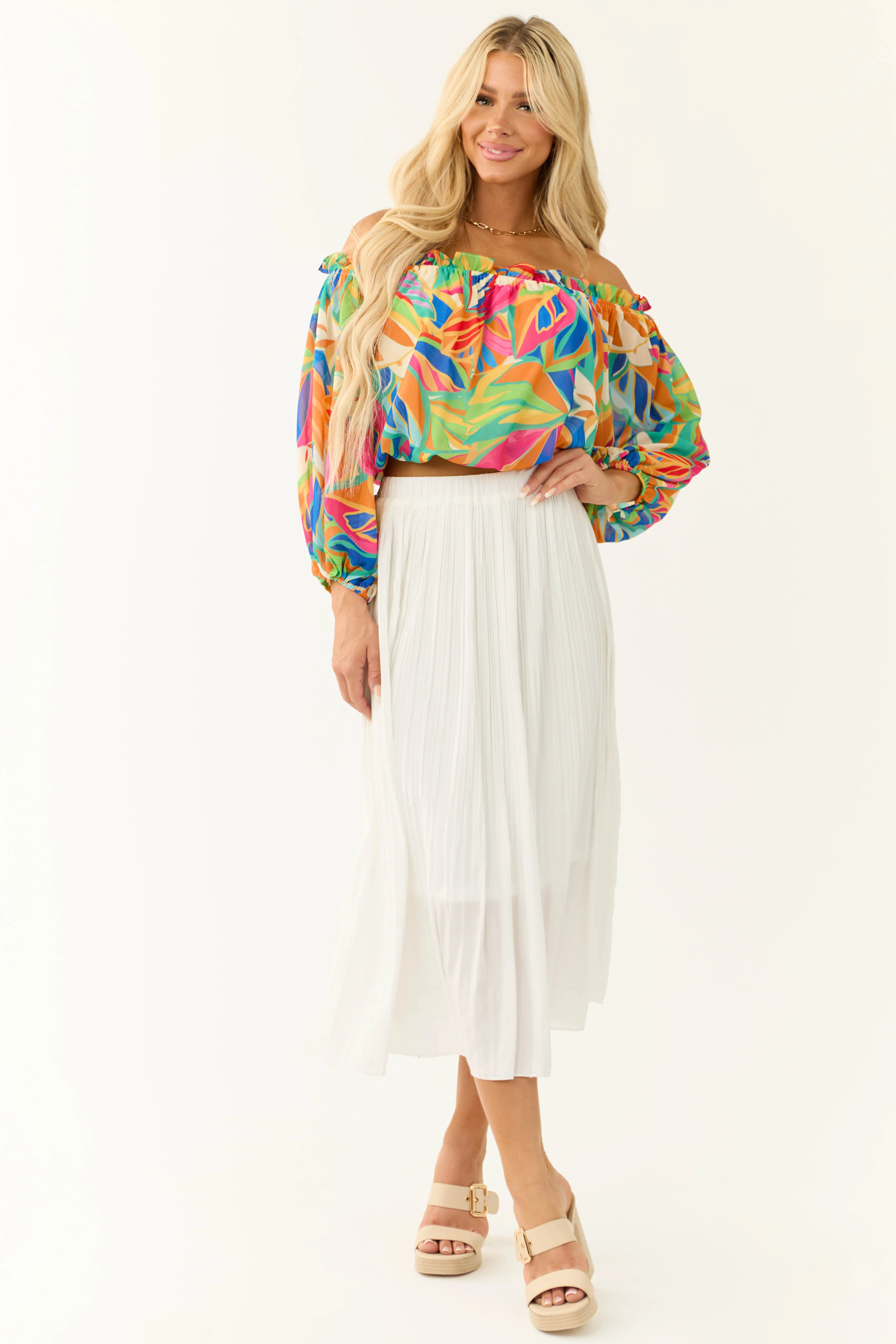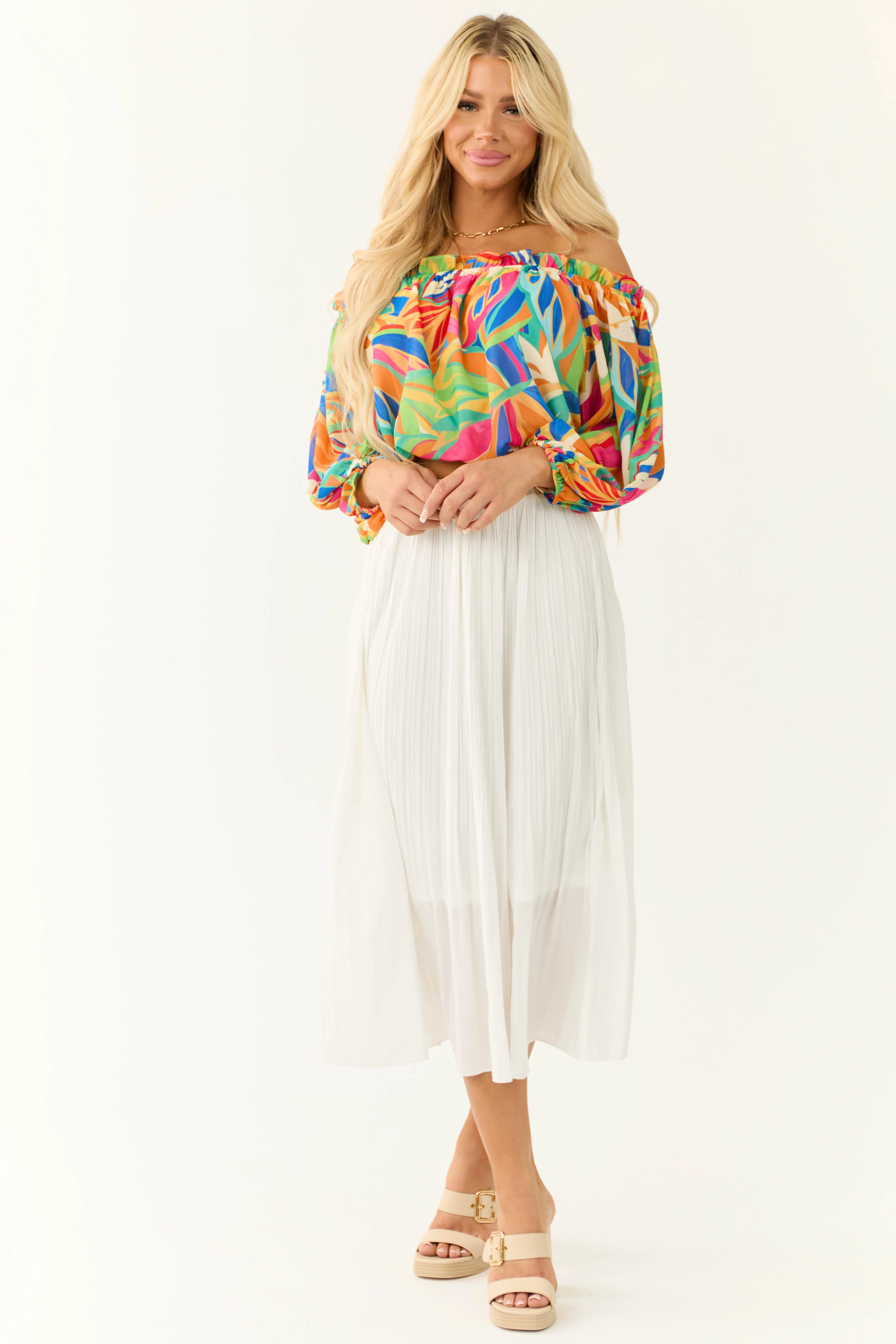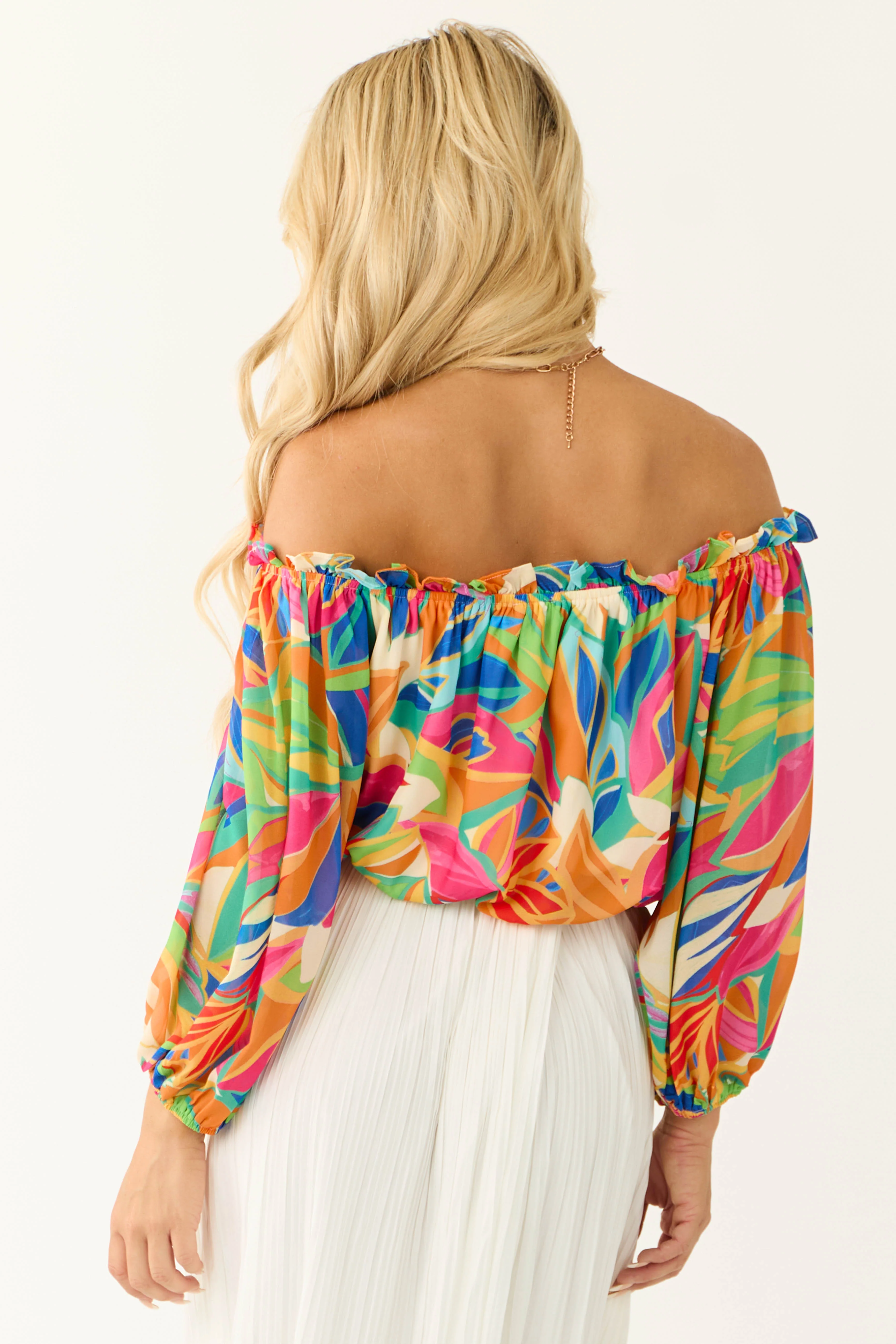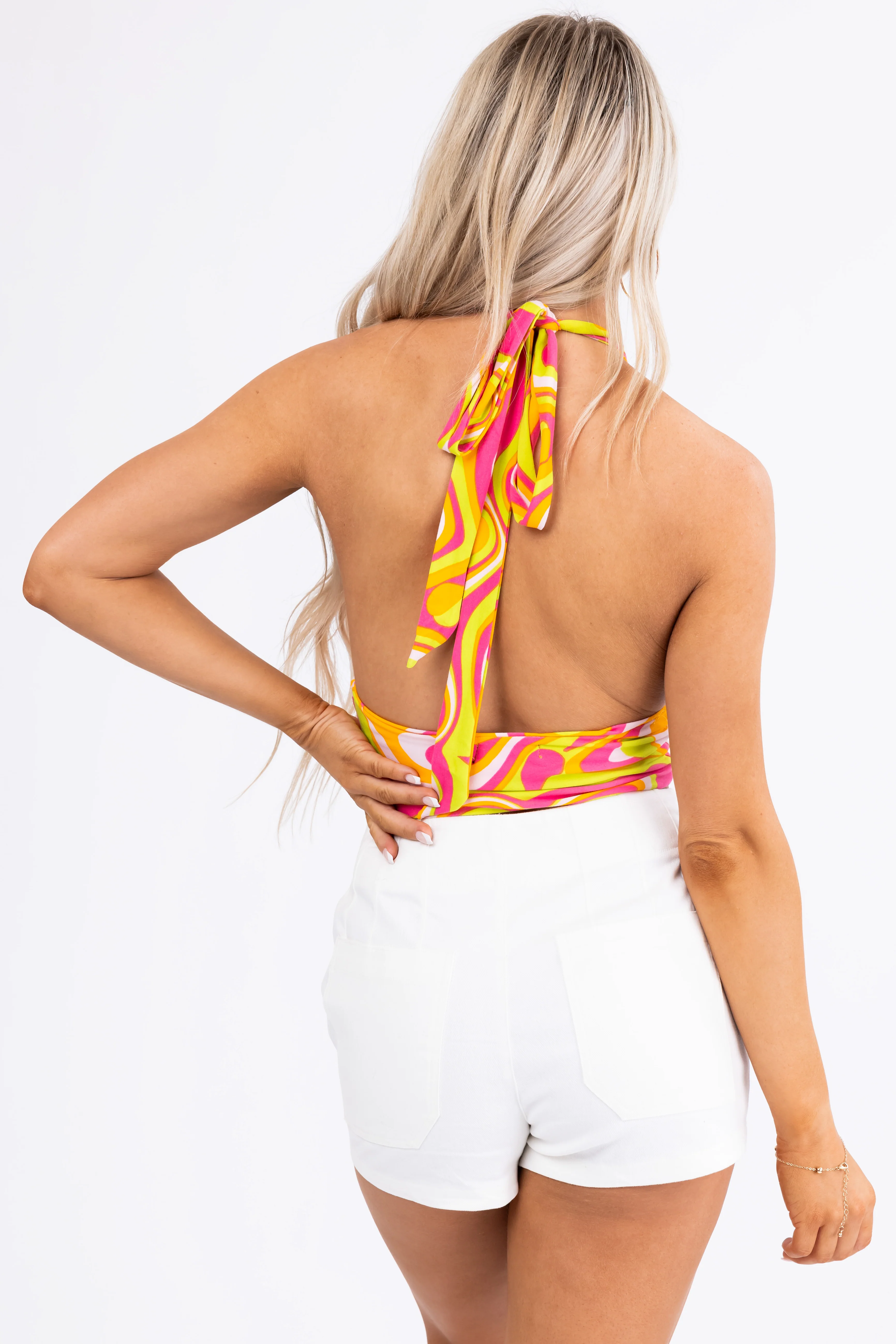Tangerine and Magenta Groovy Halter Crop Top