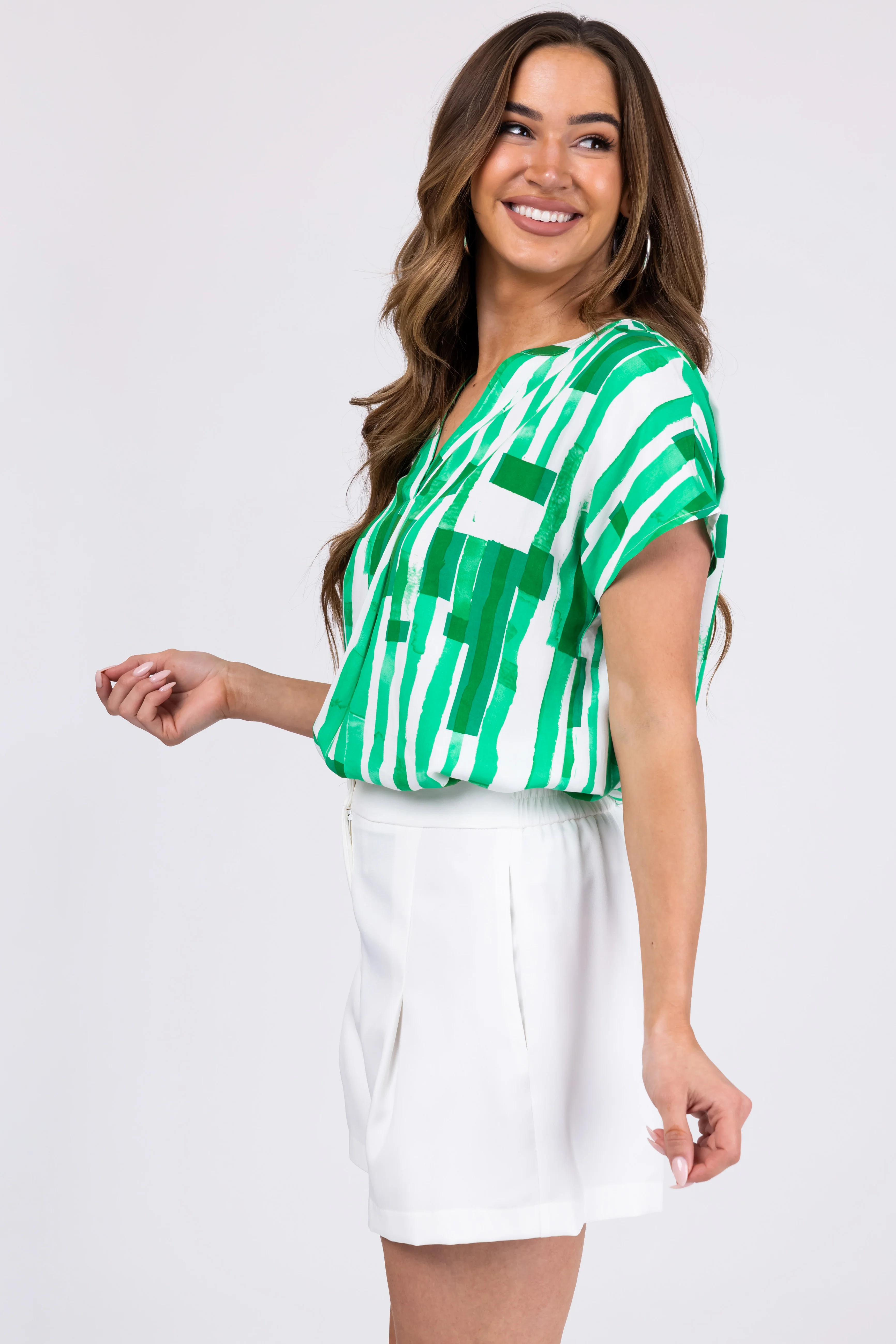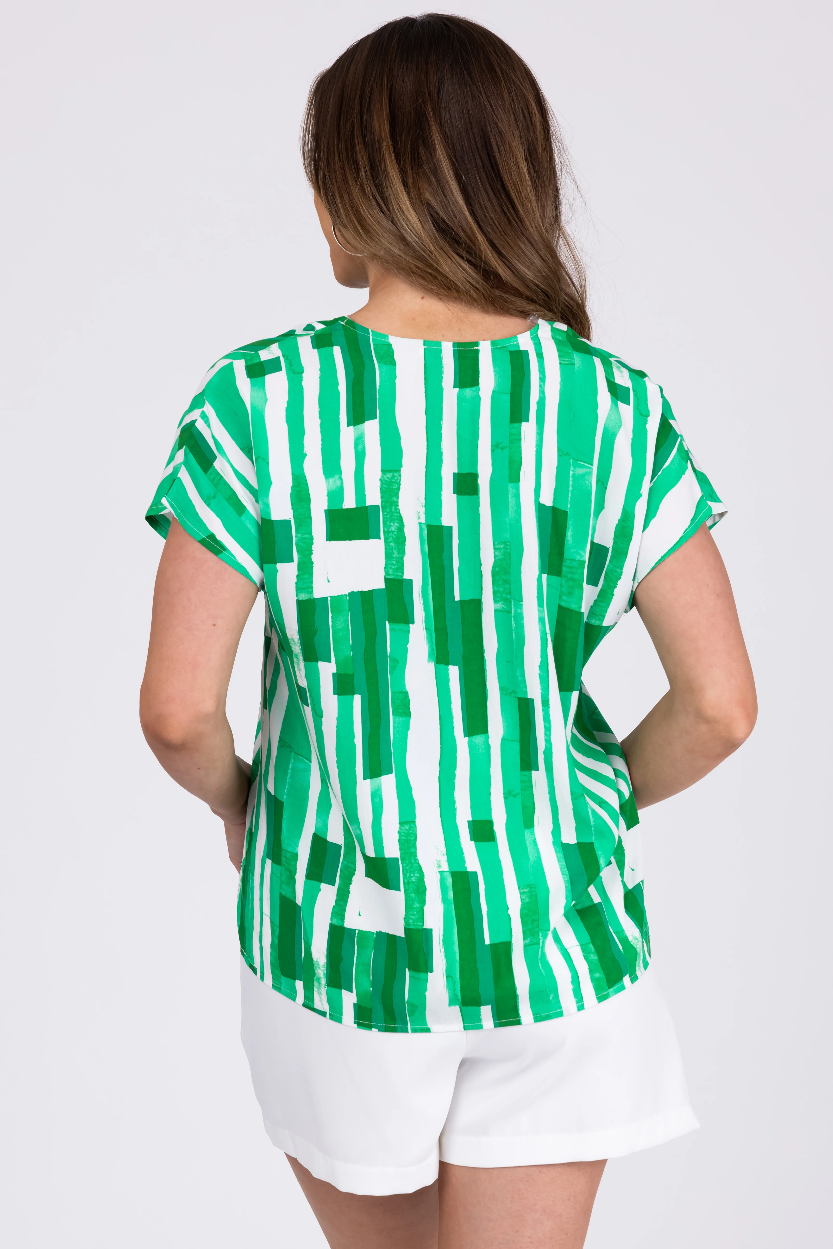 Kelly Green Abstract Print Short Sleeve Top