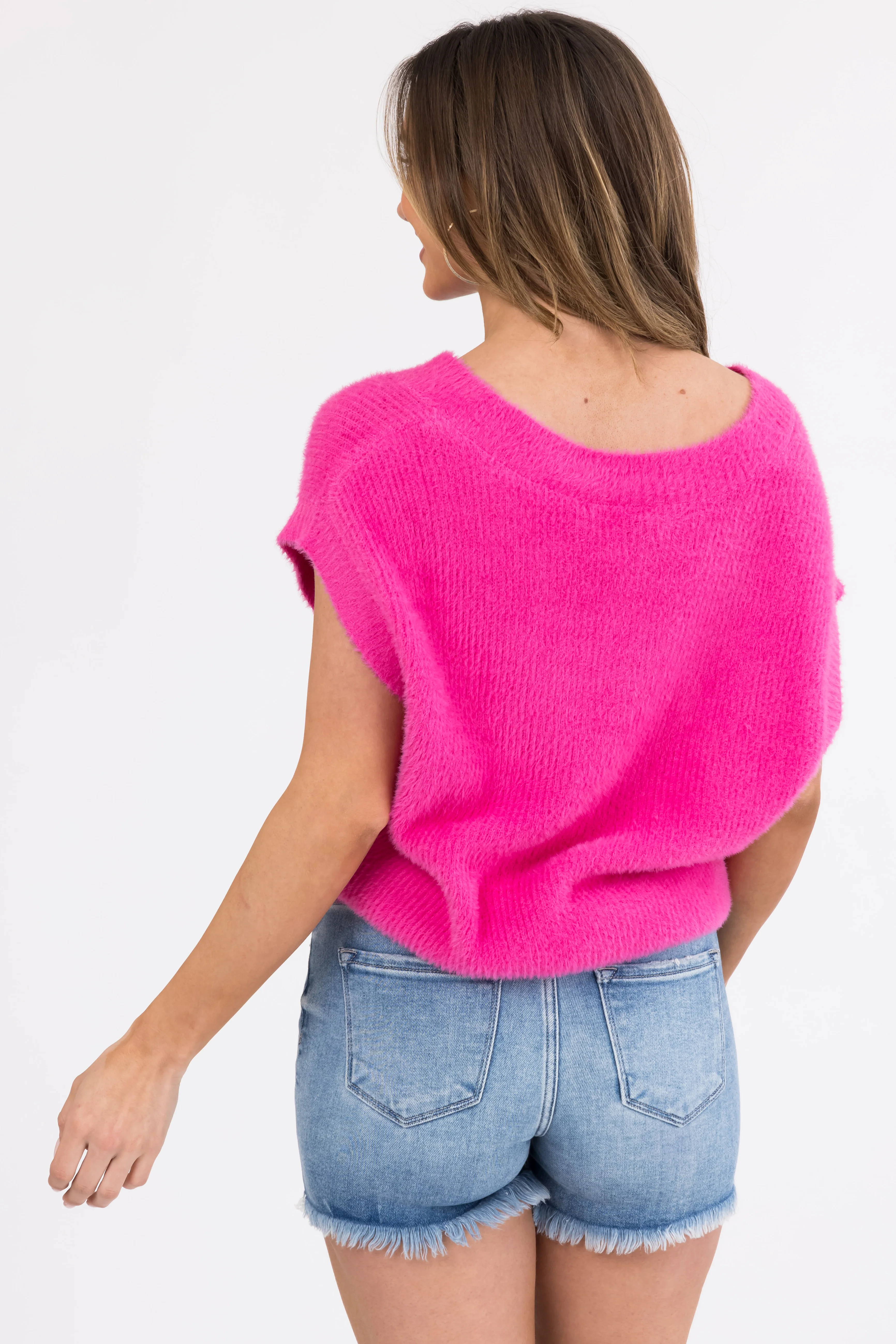 She+Sky Magenta V Neck Textured Sweater Vest
