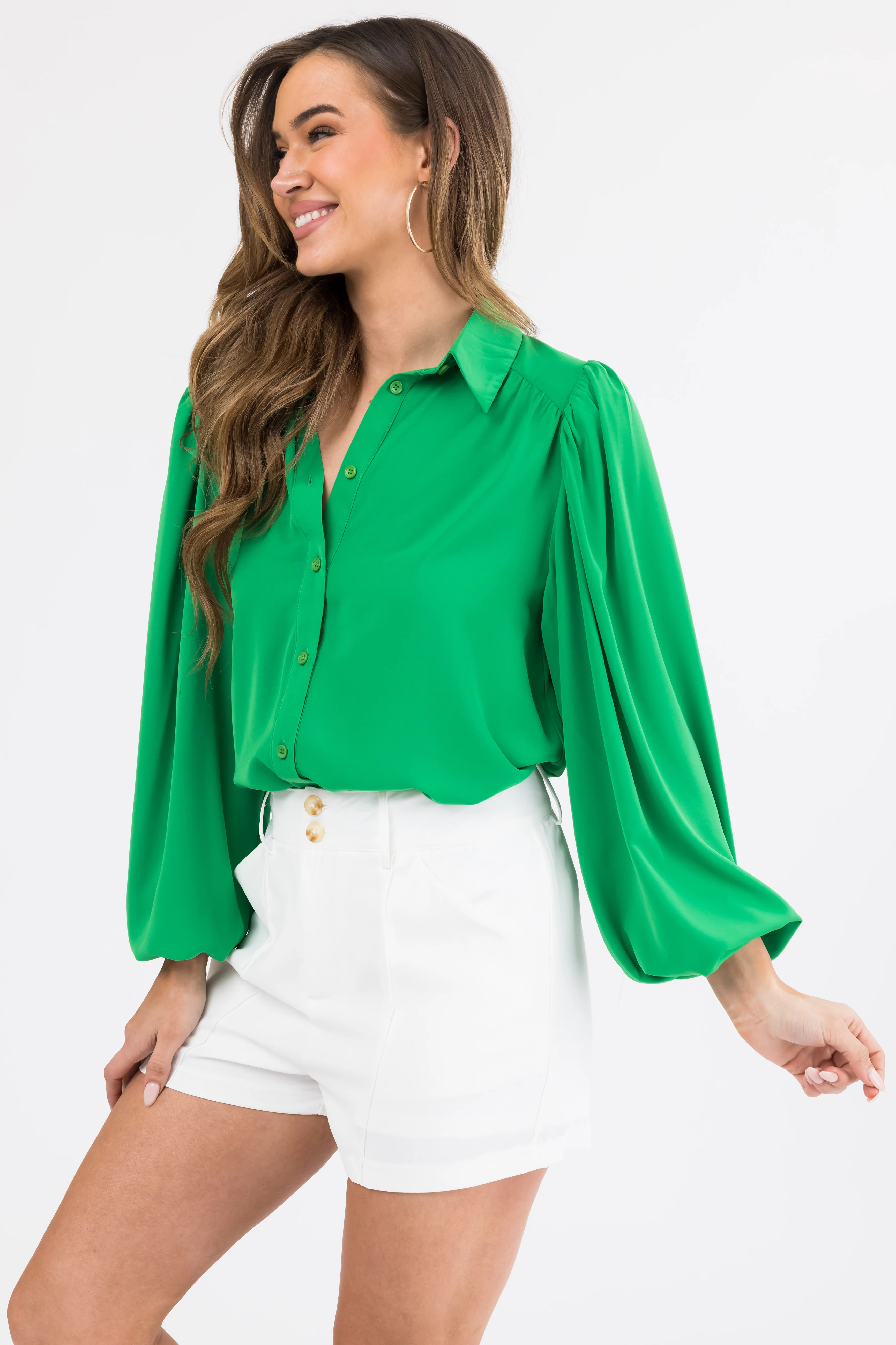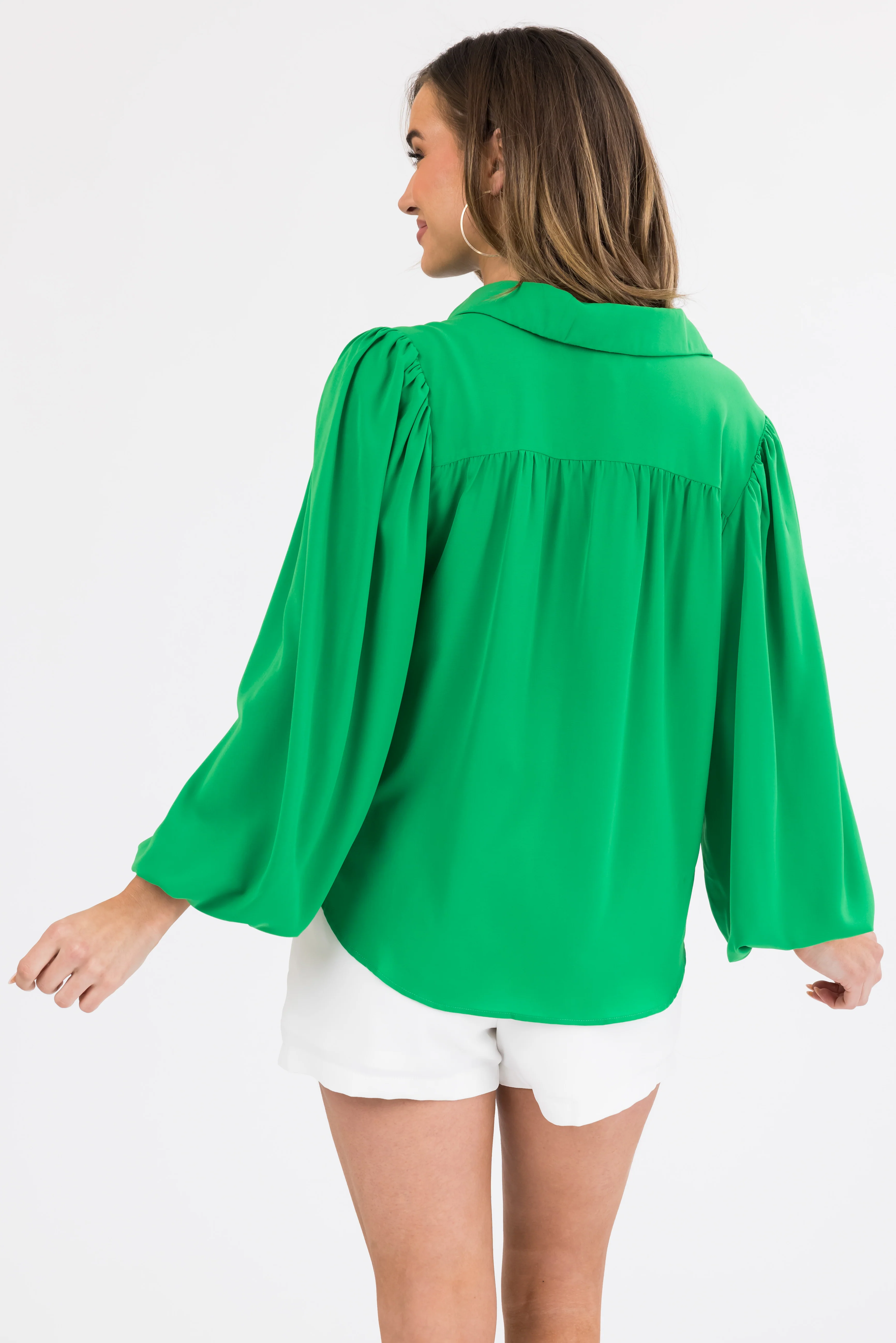 Flying Tomato Jade Bubble Sleeve Button Blouse
