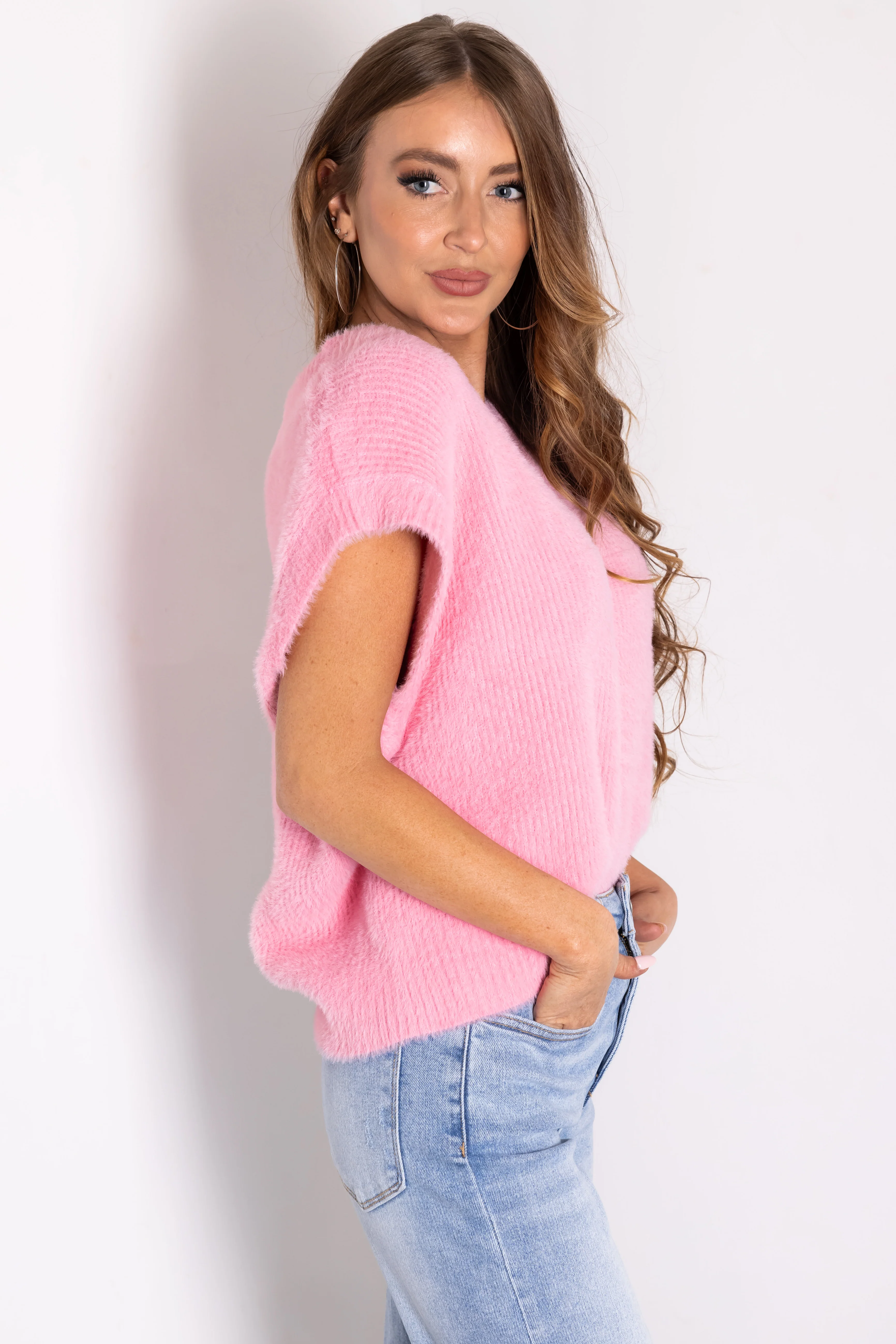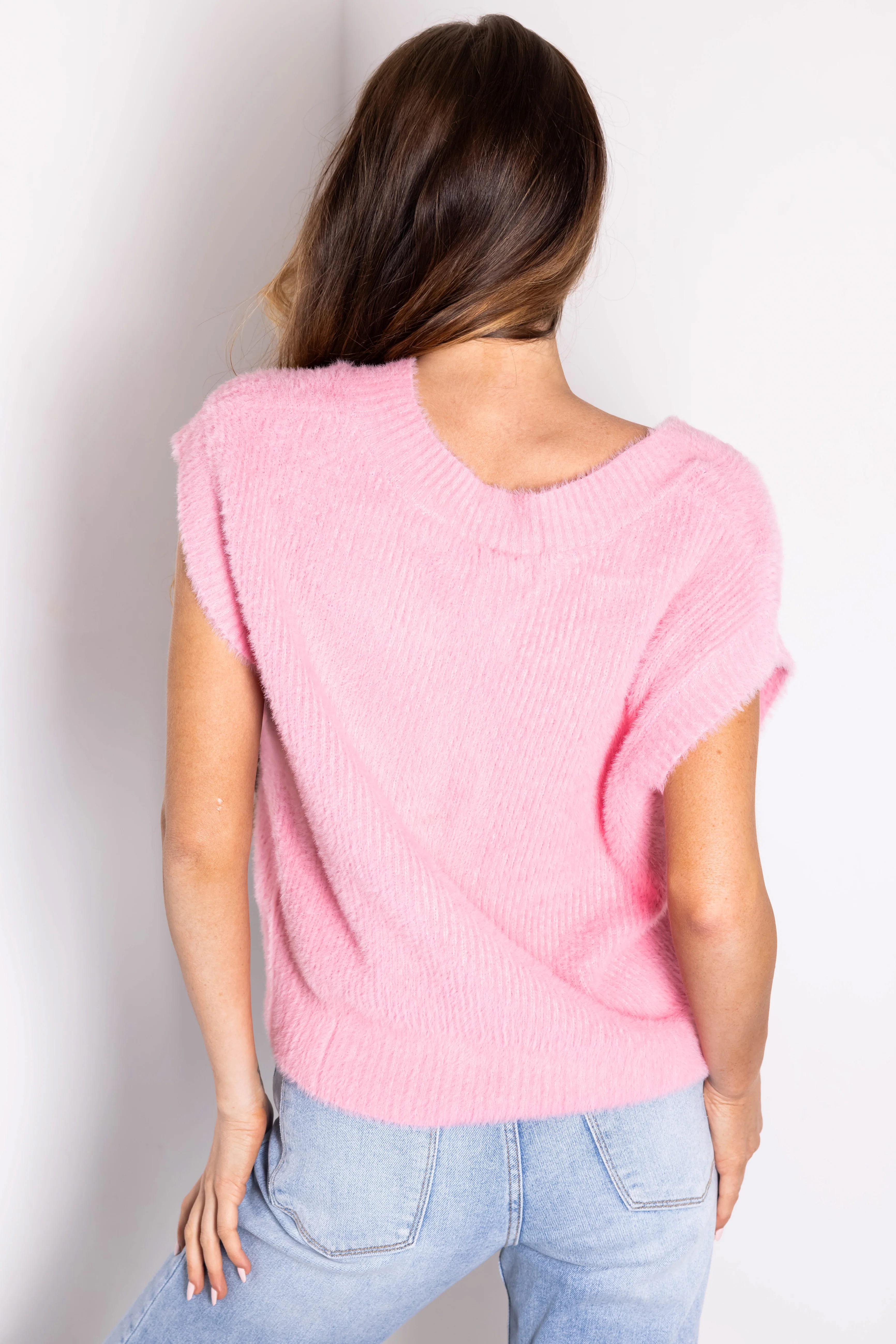 She+Sky Carnation V Neck Textured Sweater Vest