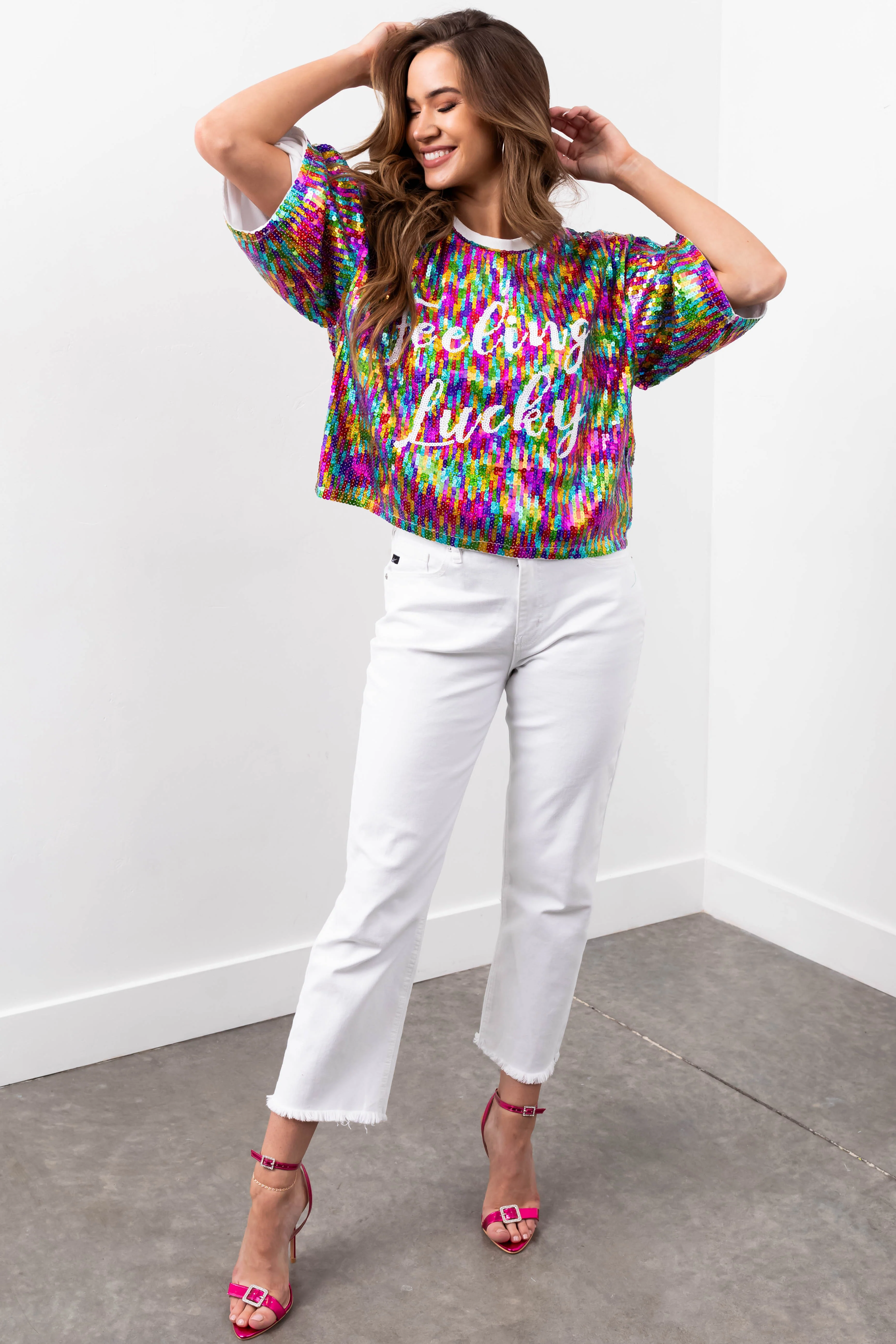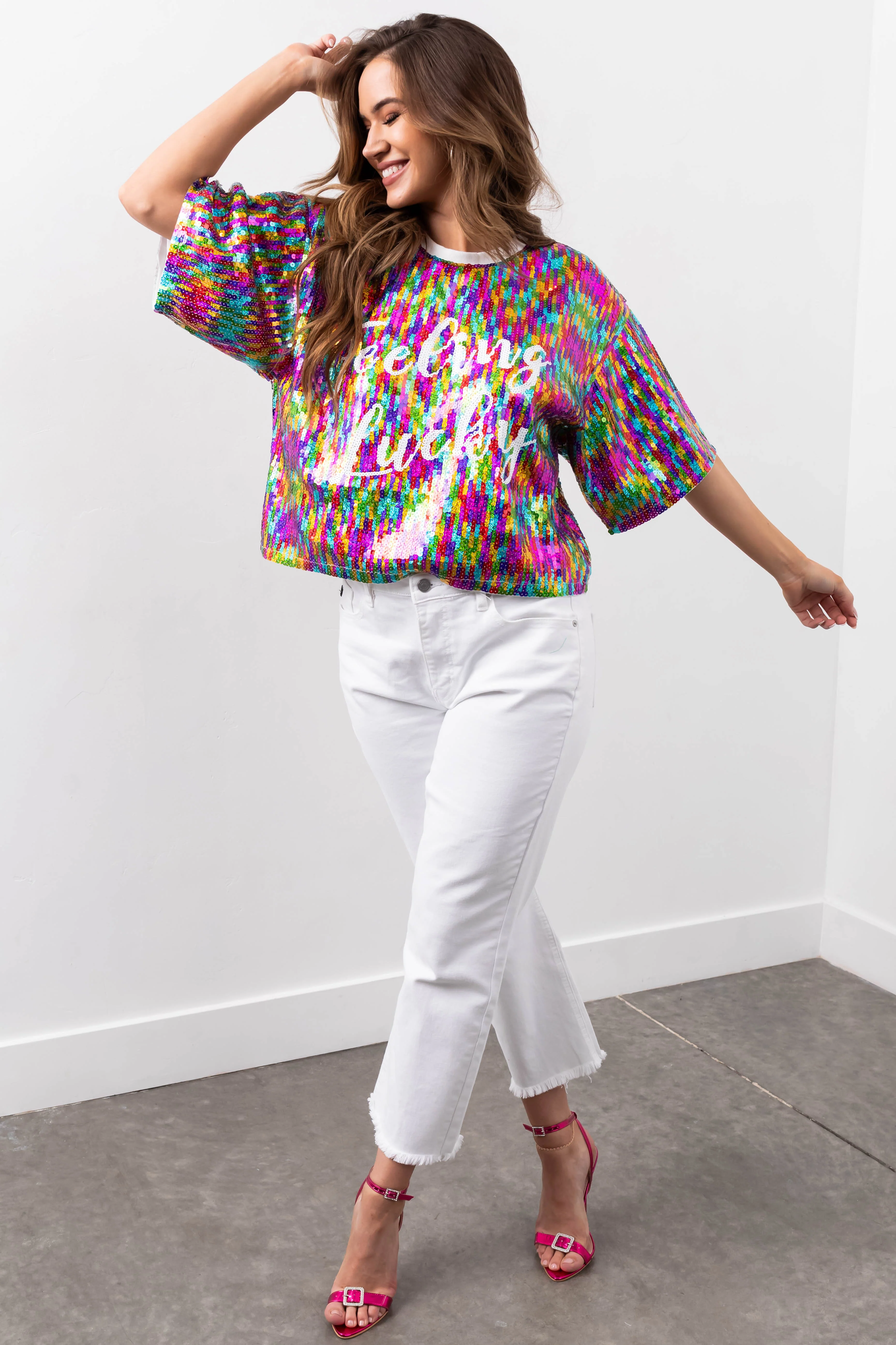 Multicolor 'Feeling Lucky' Sequined Top