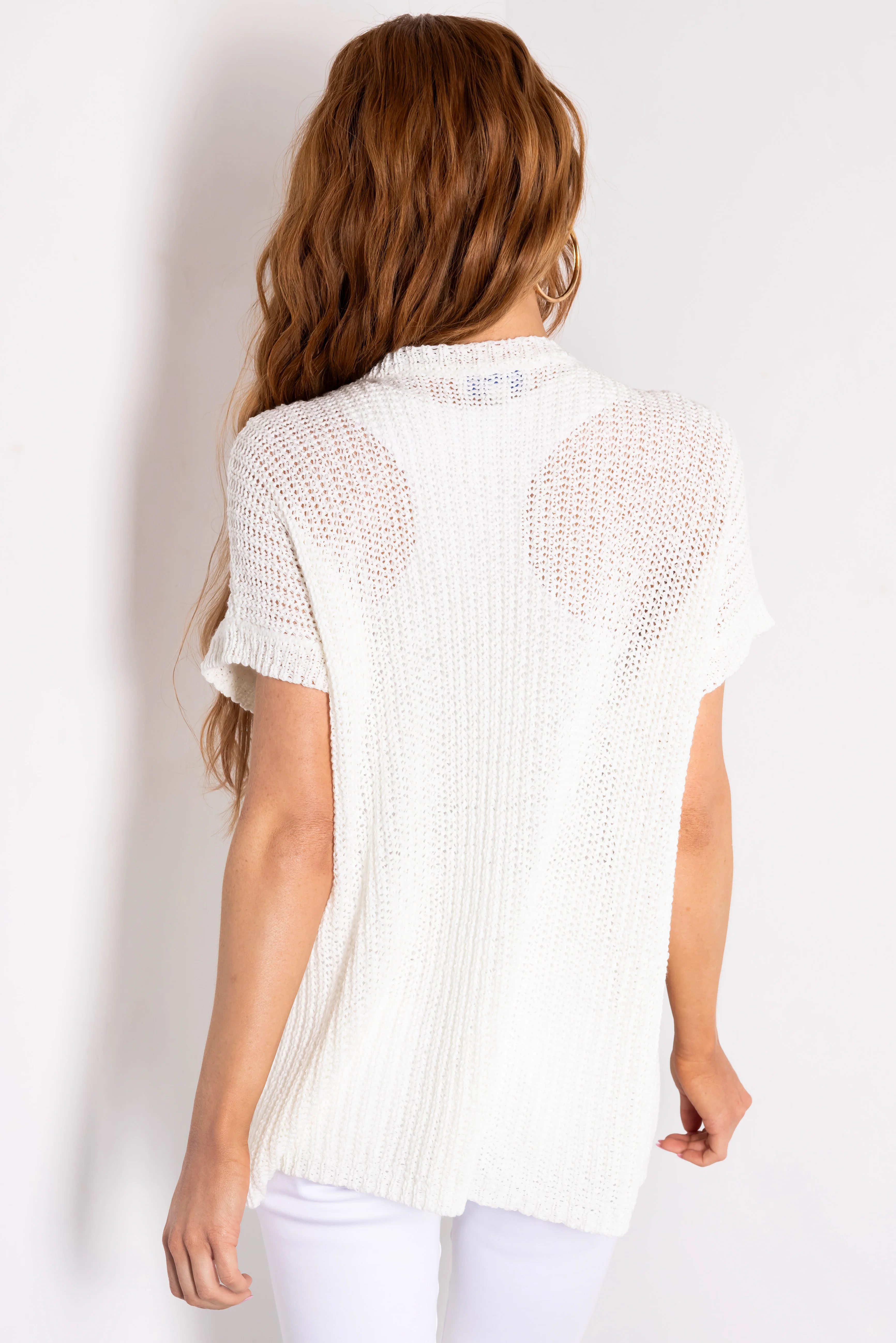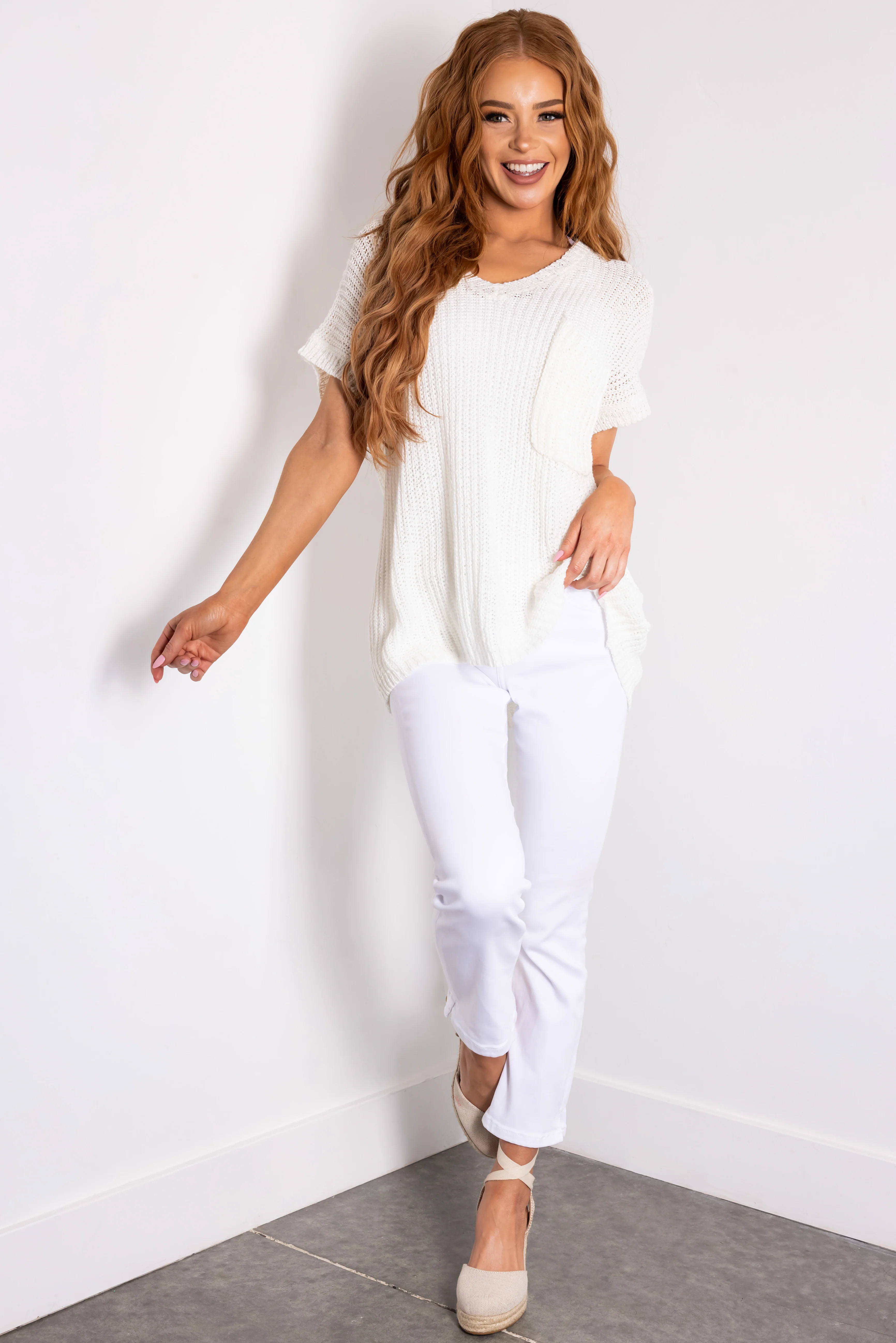 She+Sky Ivory V Neck Short Sleeve Sweater
