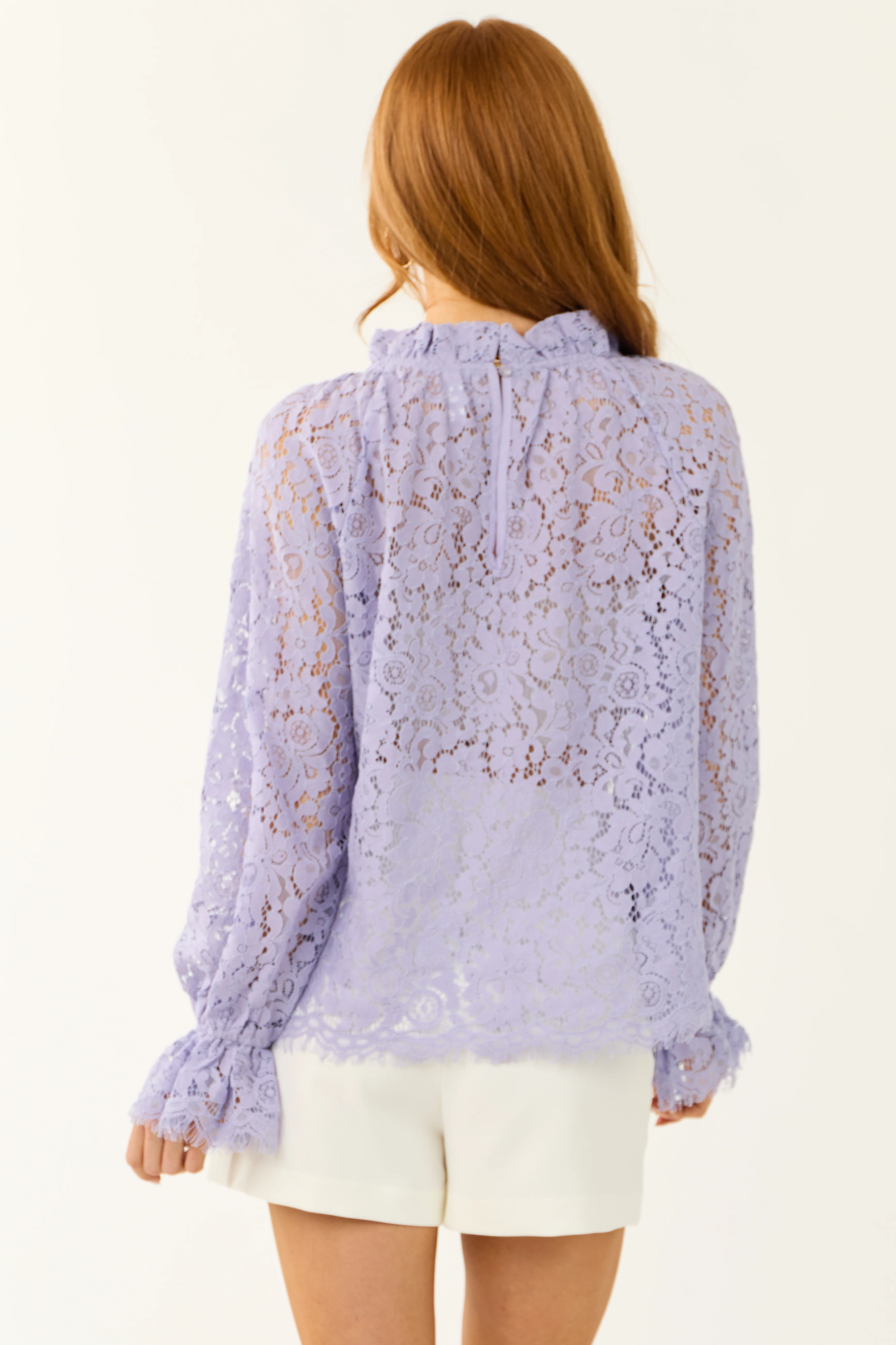 Lavender High Neck Eyelash Trim Lace Blouse