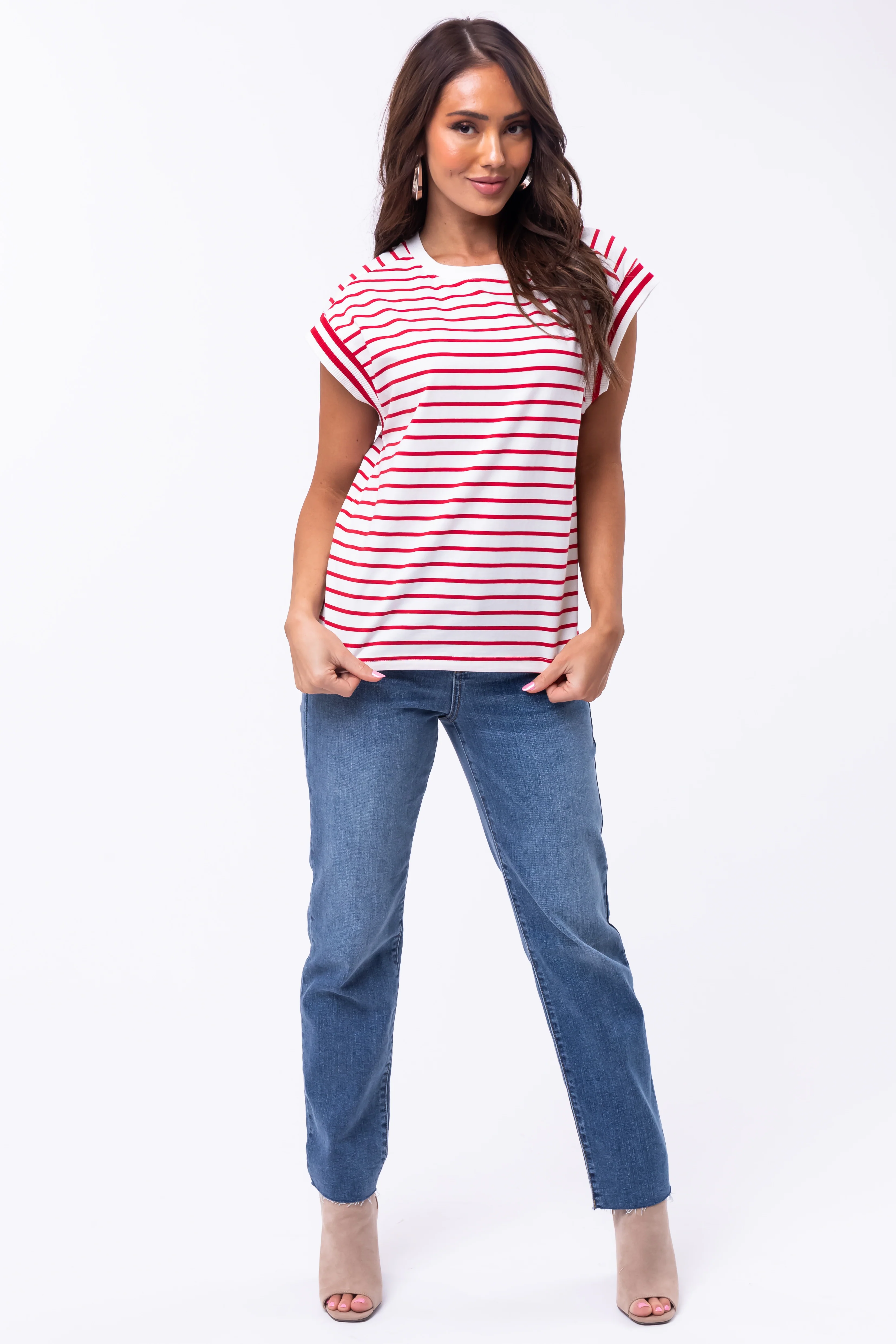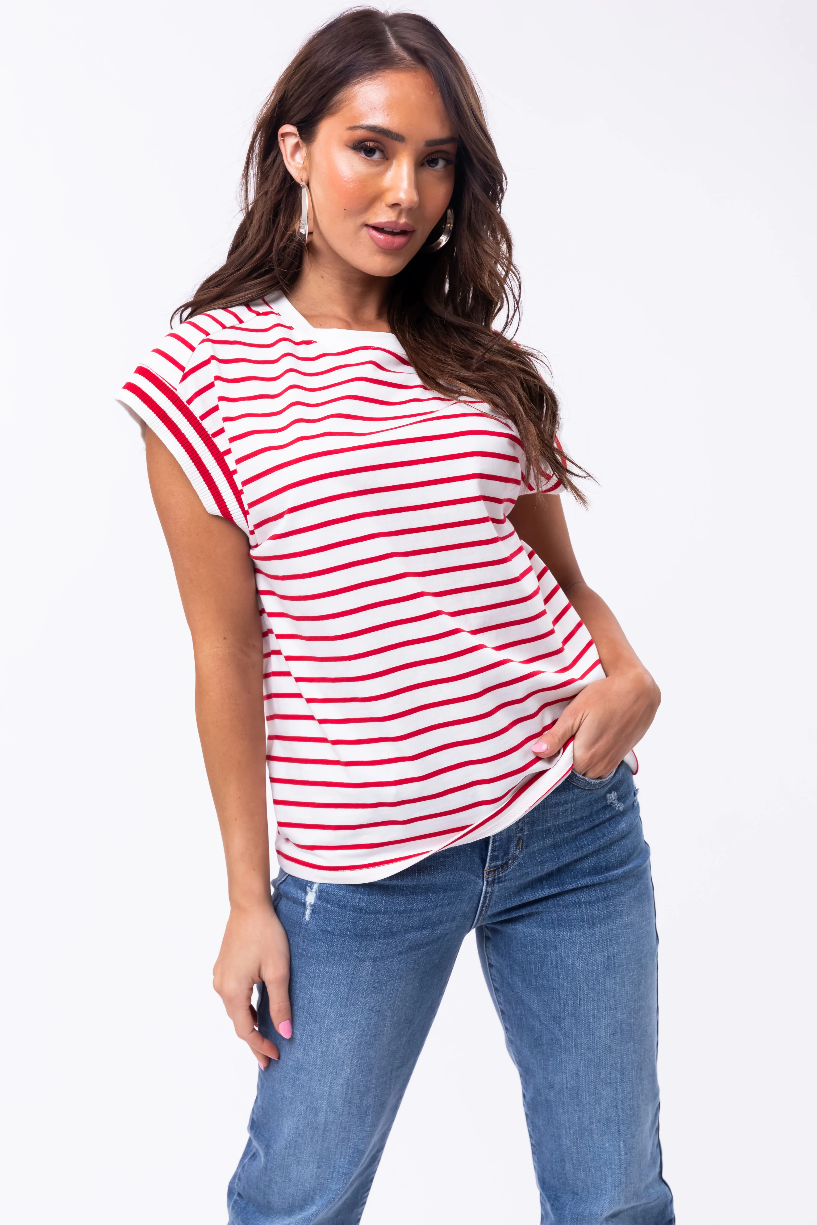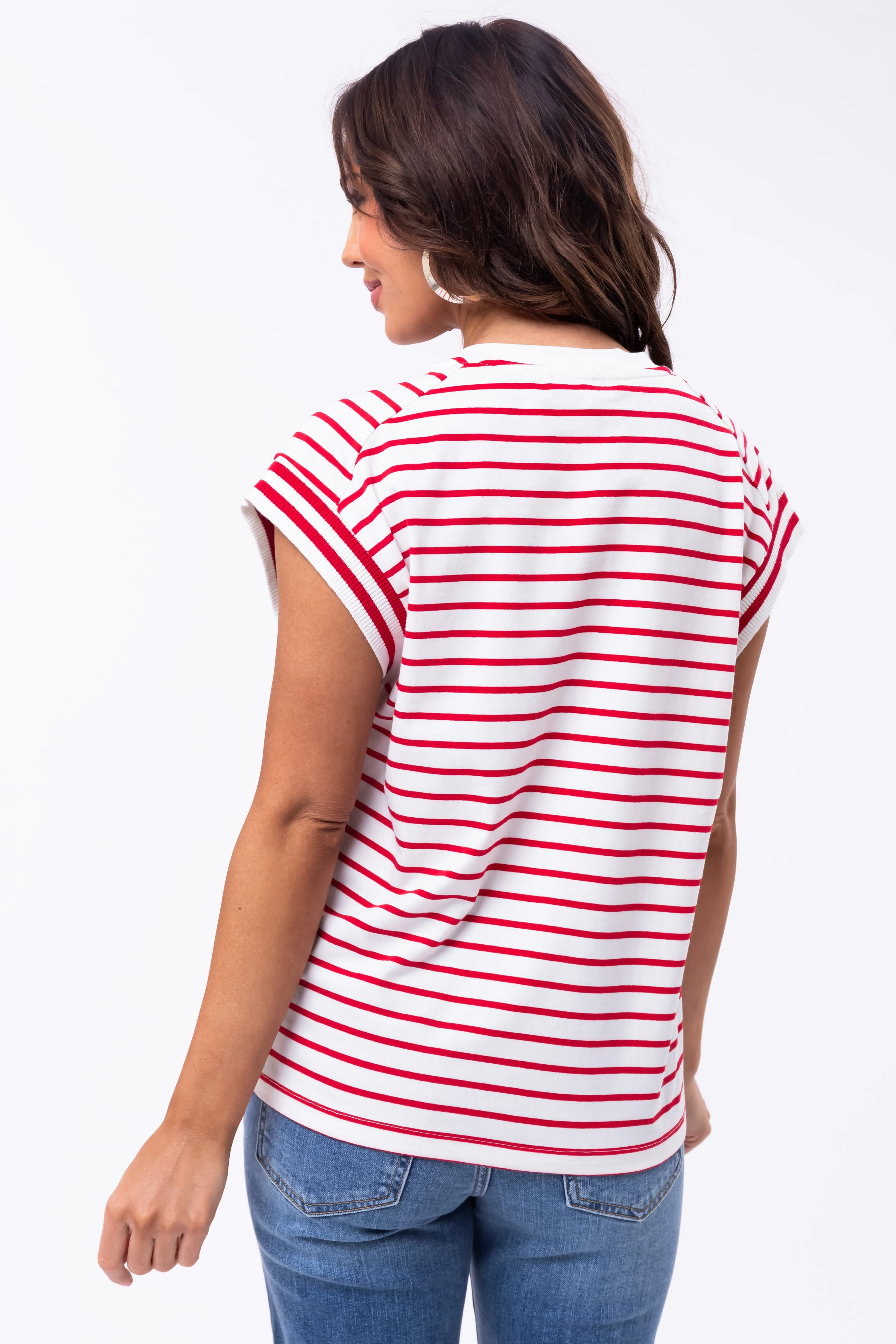 Flying Tomato Cherry Striped Cap Sleeve Top