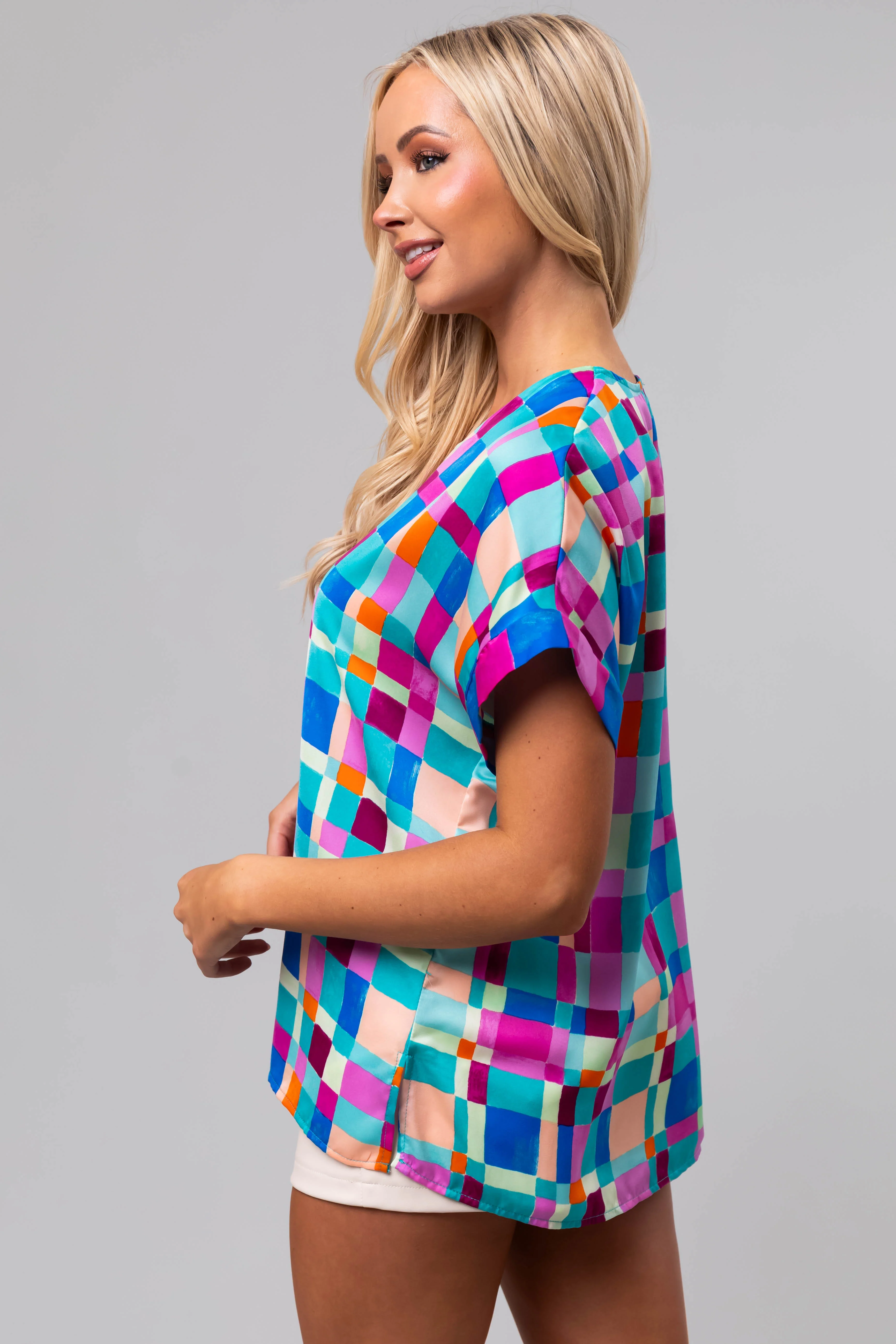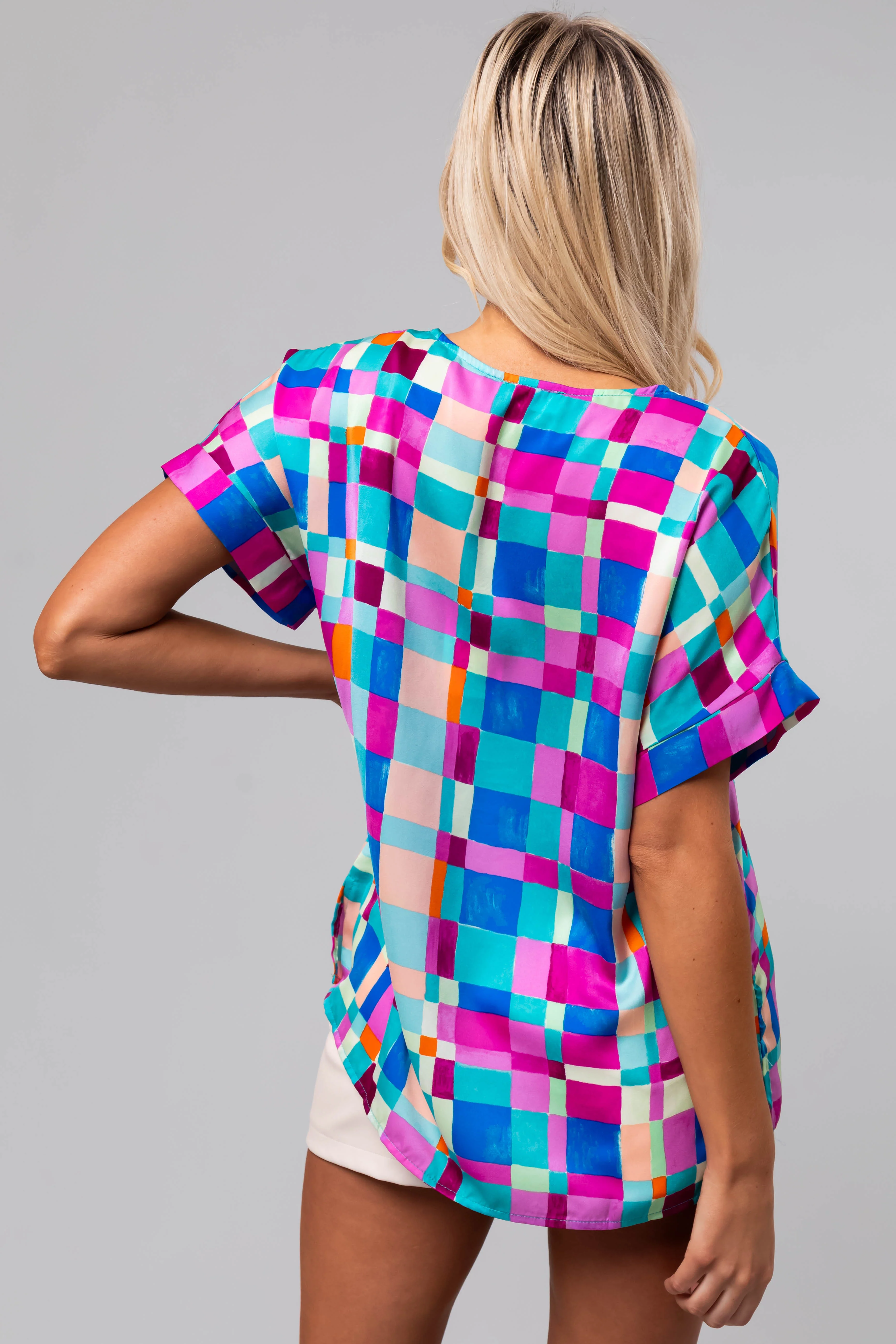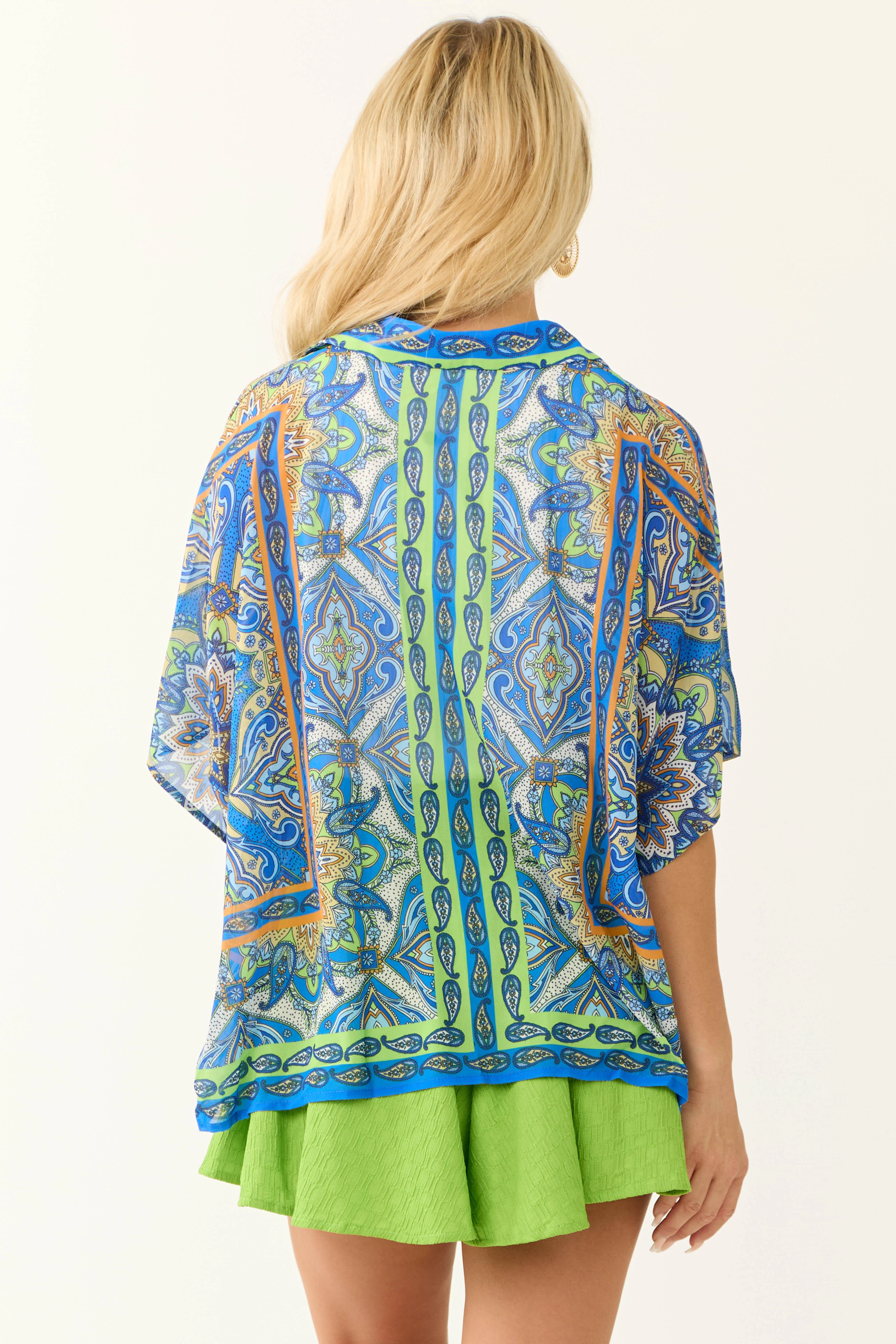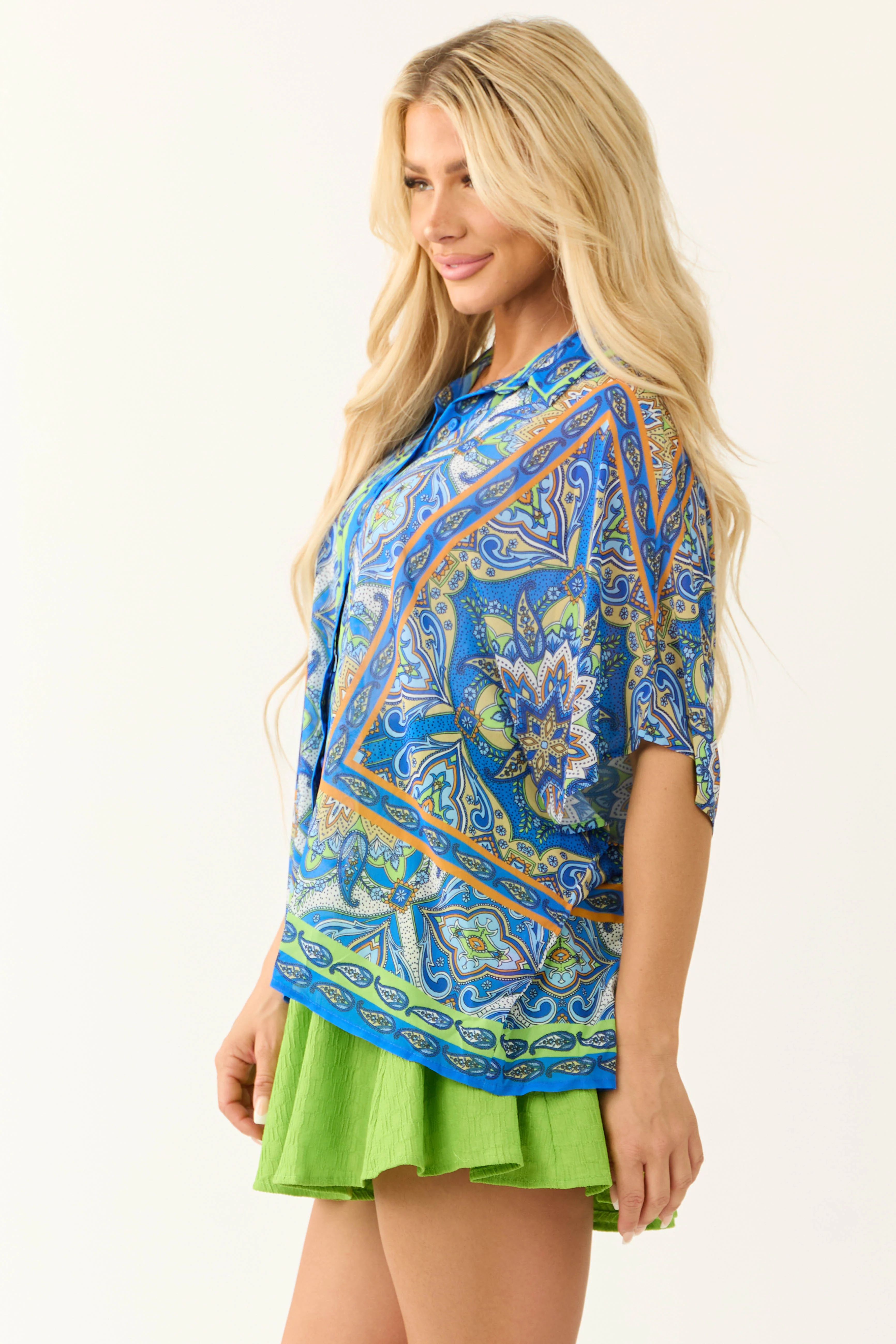Turquoise Geo Print Relaxed Fit Blouse