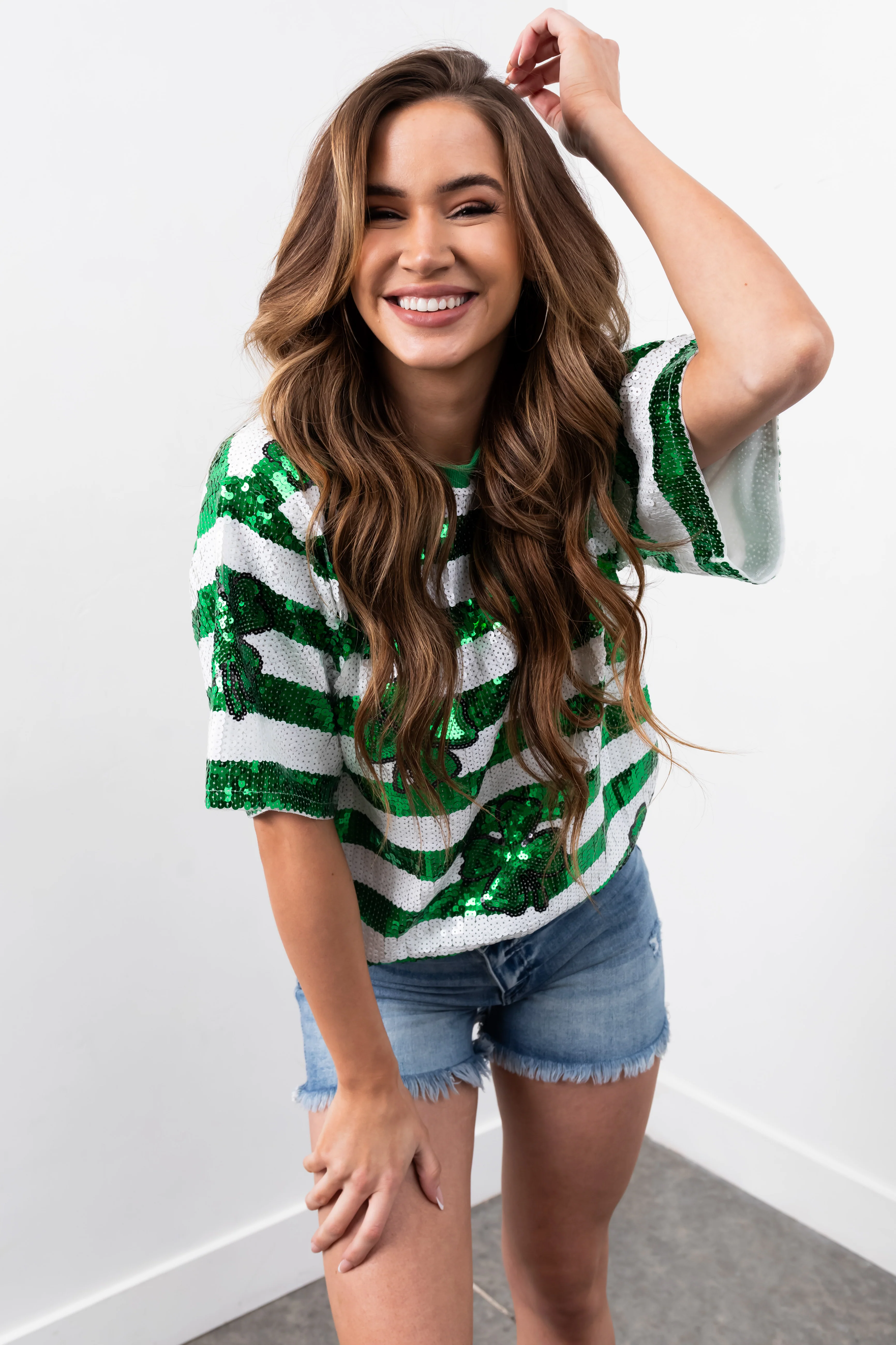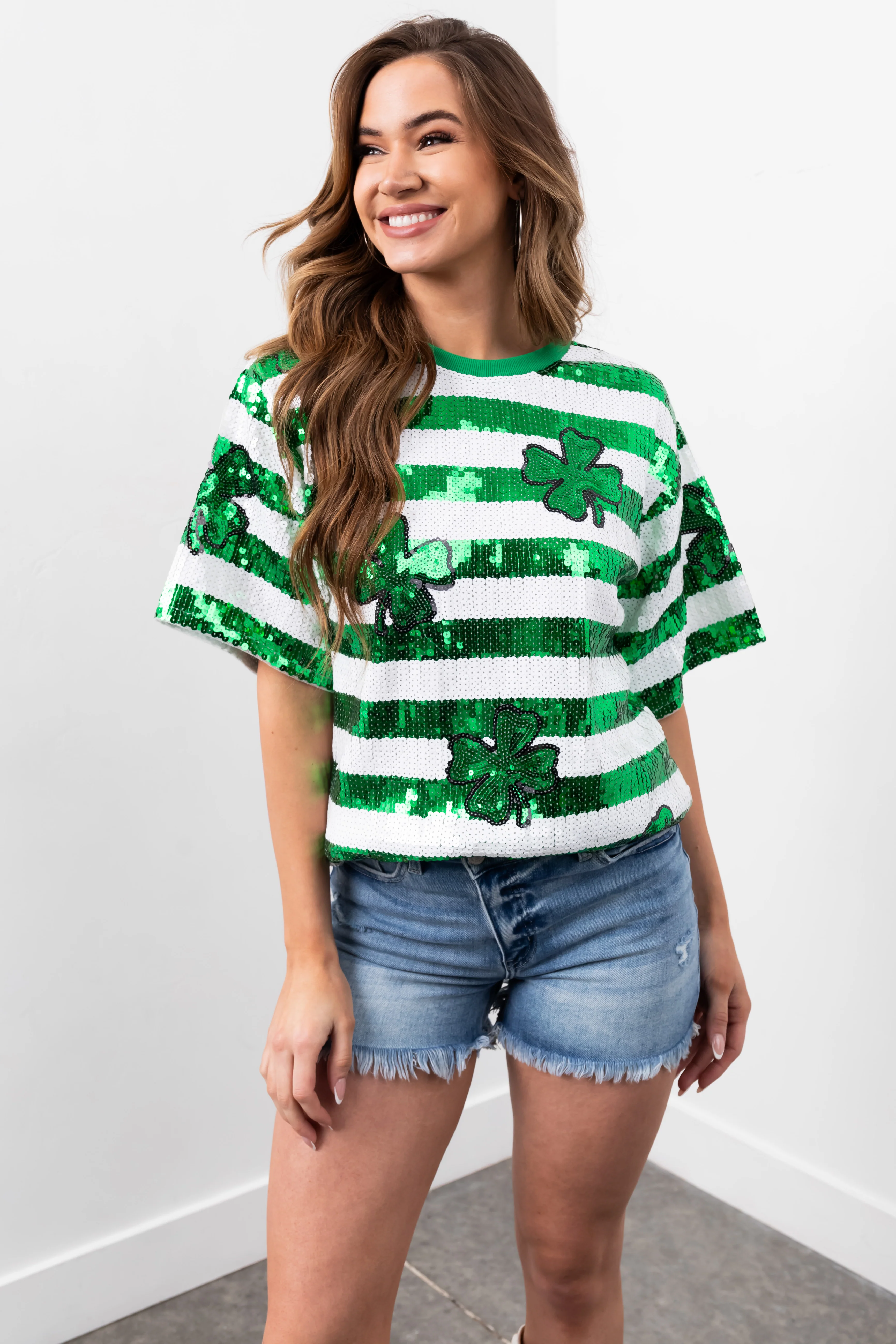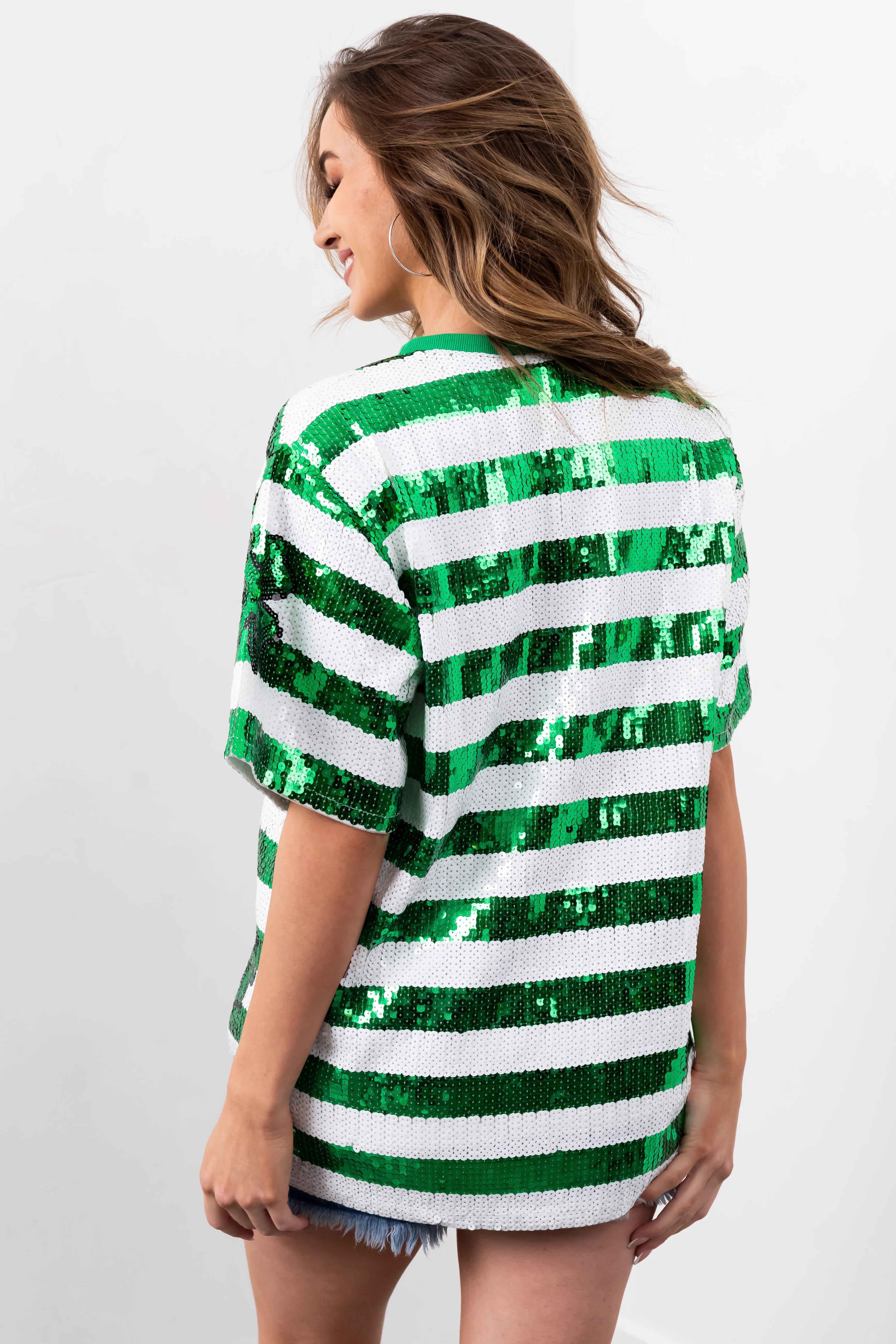 Shamrock and Off White Sequin Tunic Top