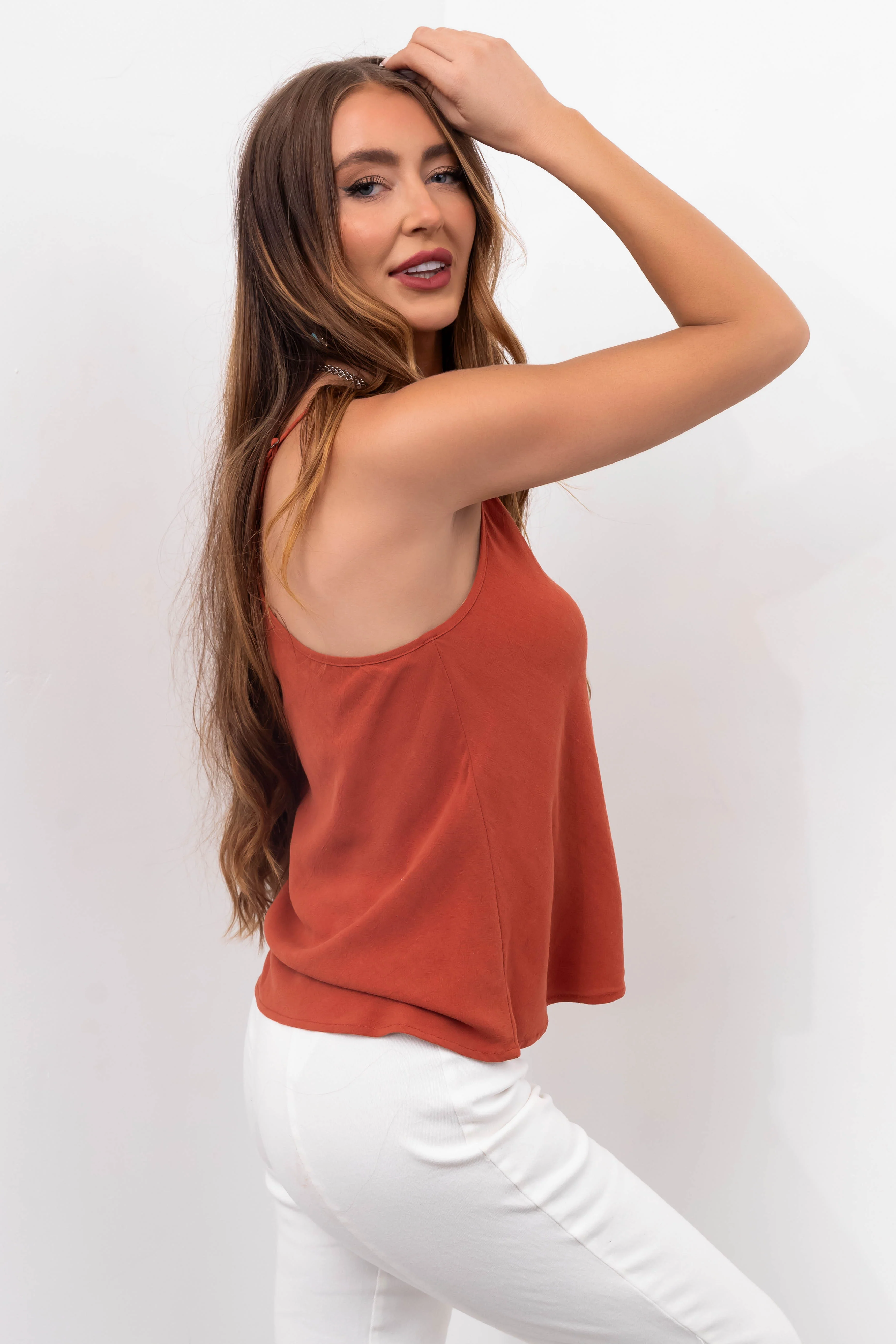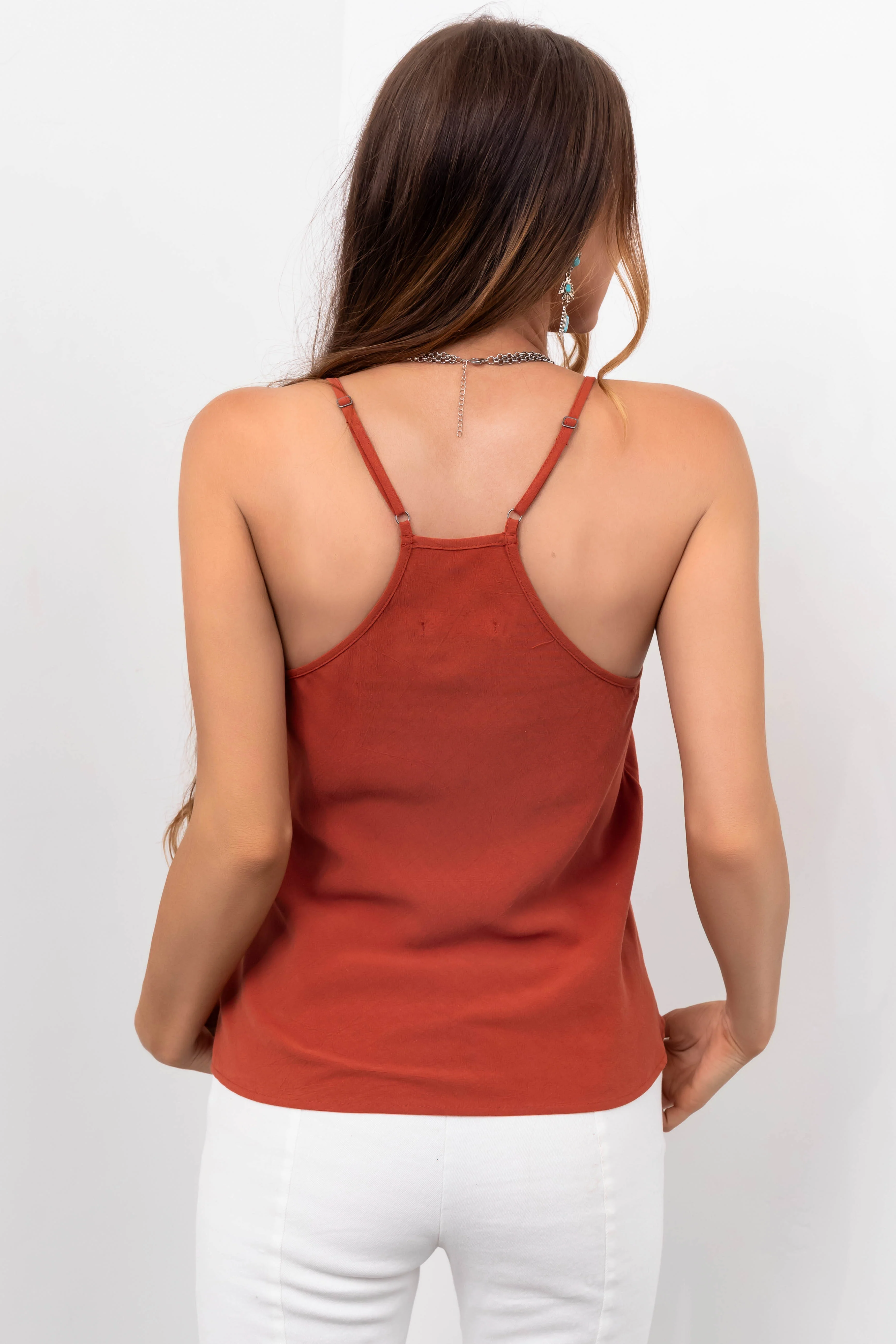 Rust Racerback V Neck Linen Tank Top
