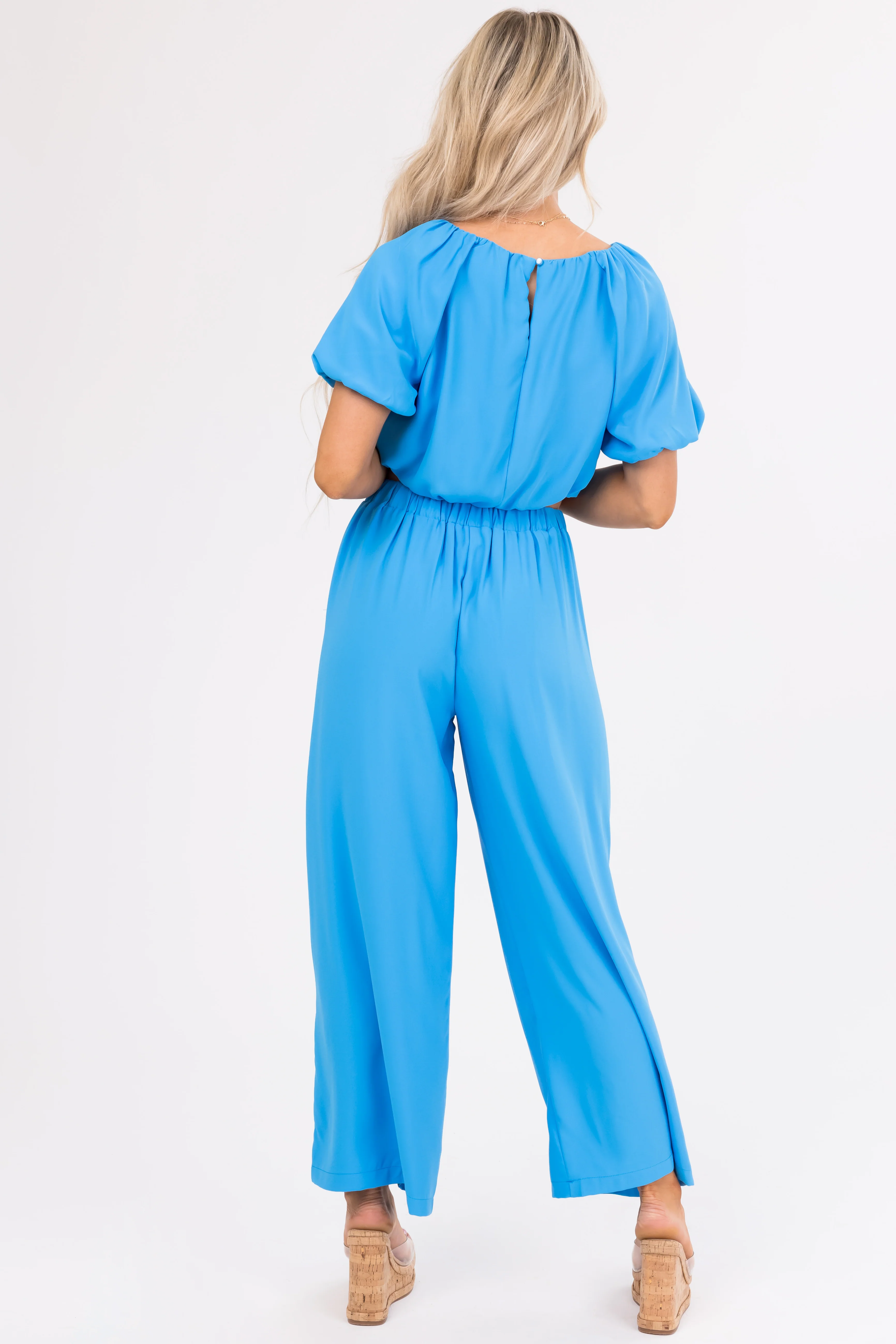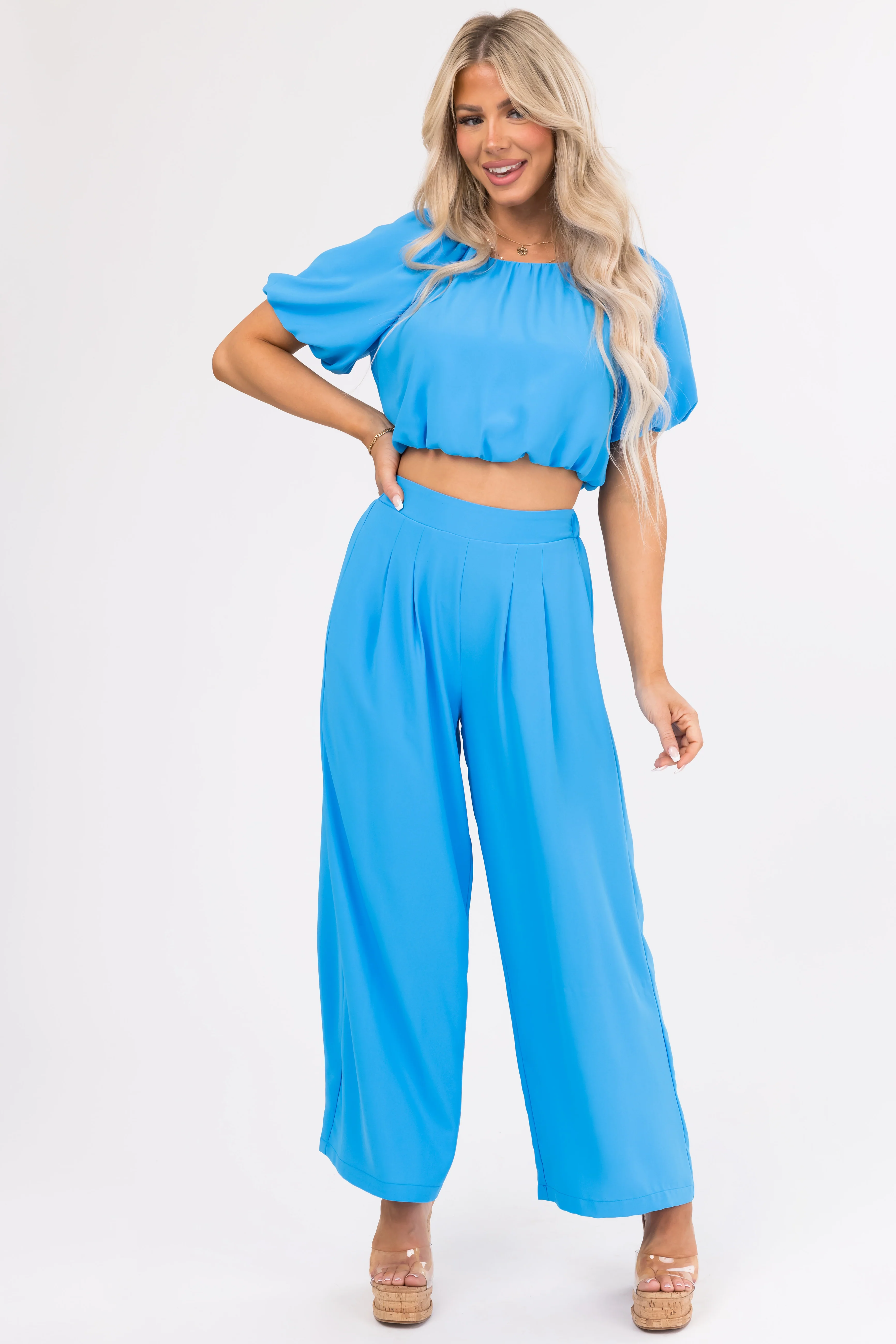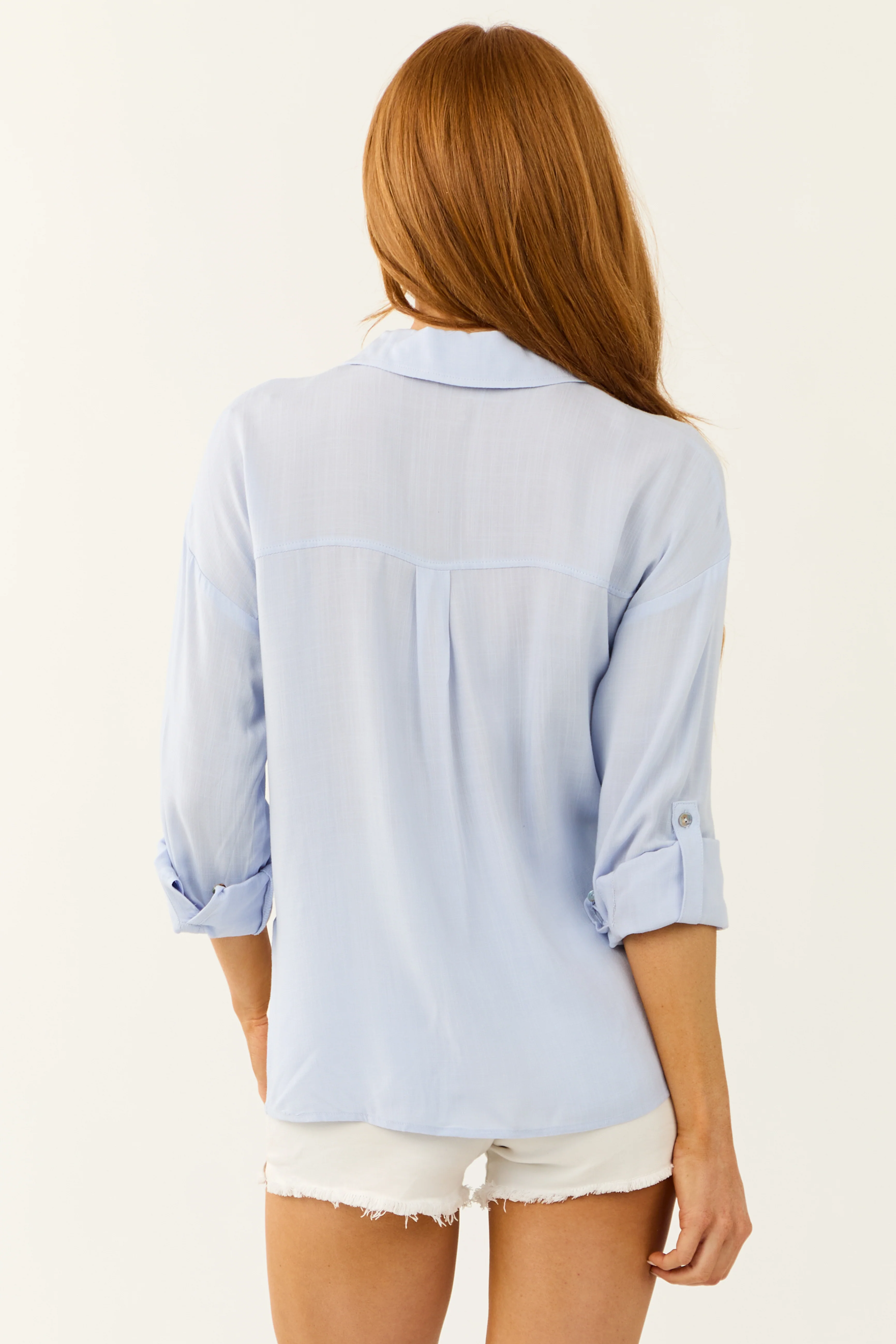 Powder Blue Faux Linen Hem Tie V Neck Shirt