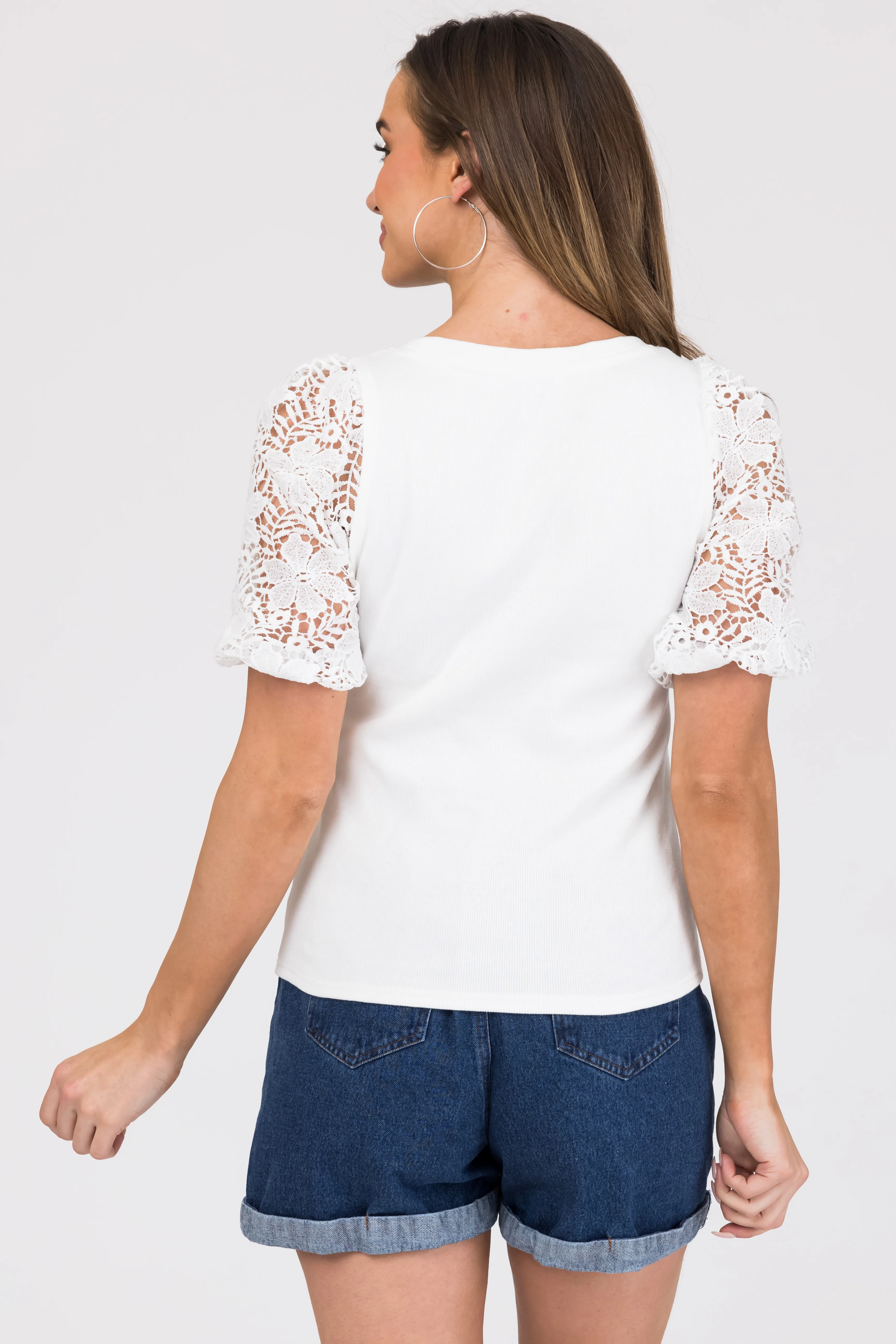 She+Sky Ivory Ruffle Cropped Knit Sweater