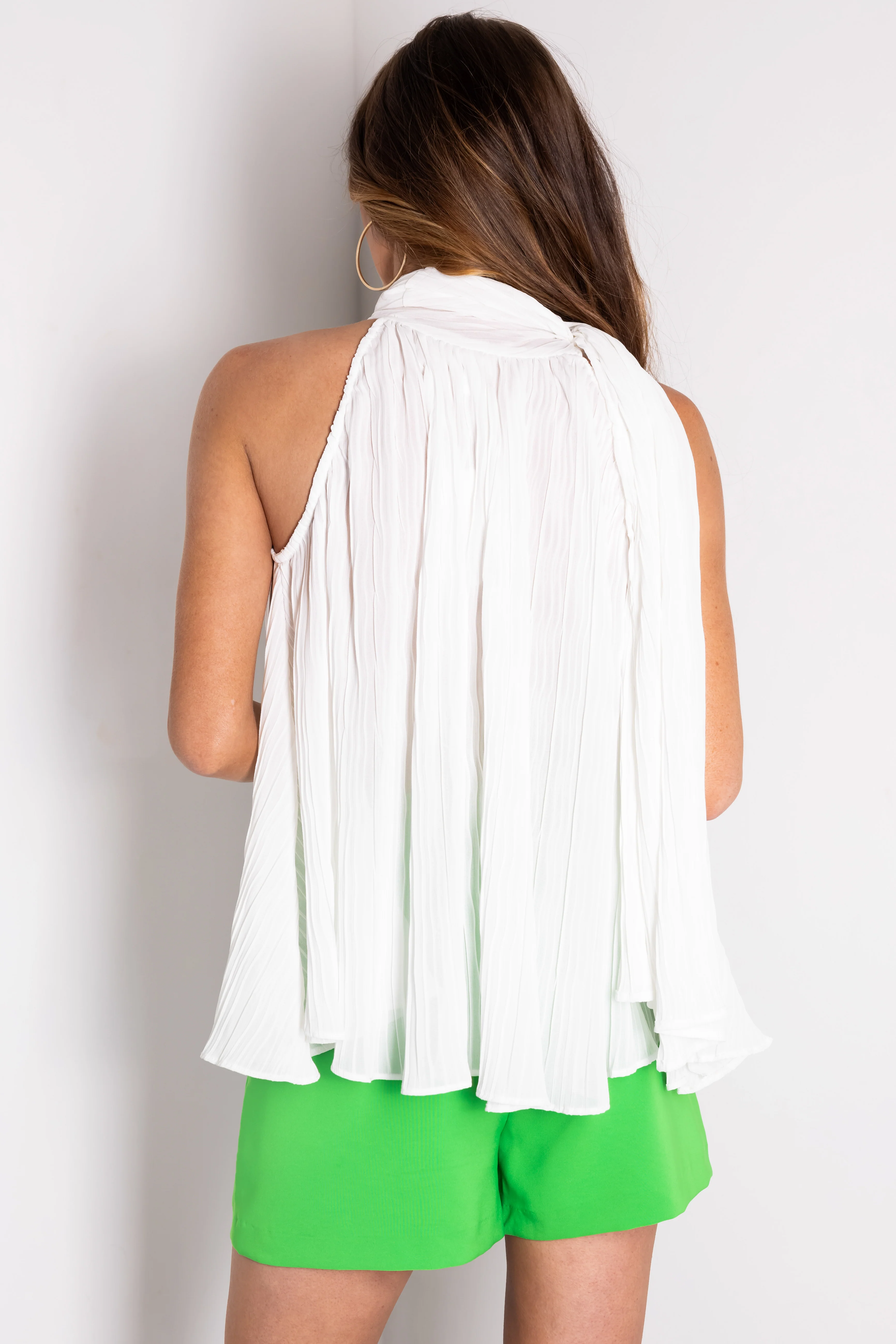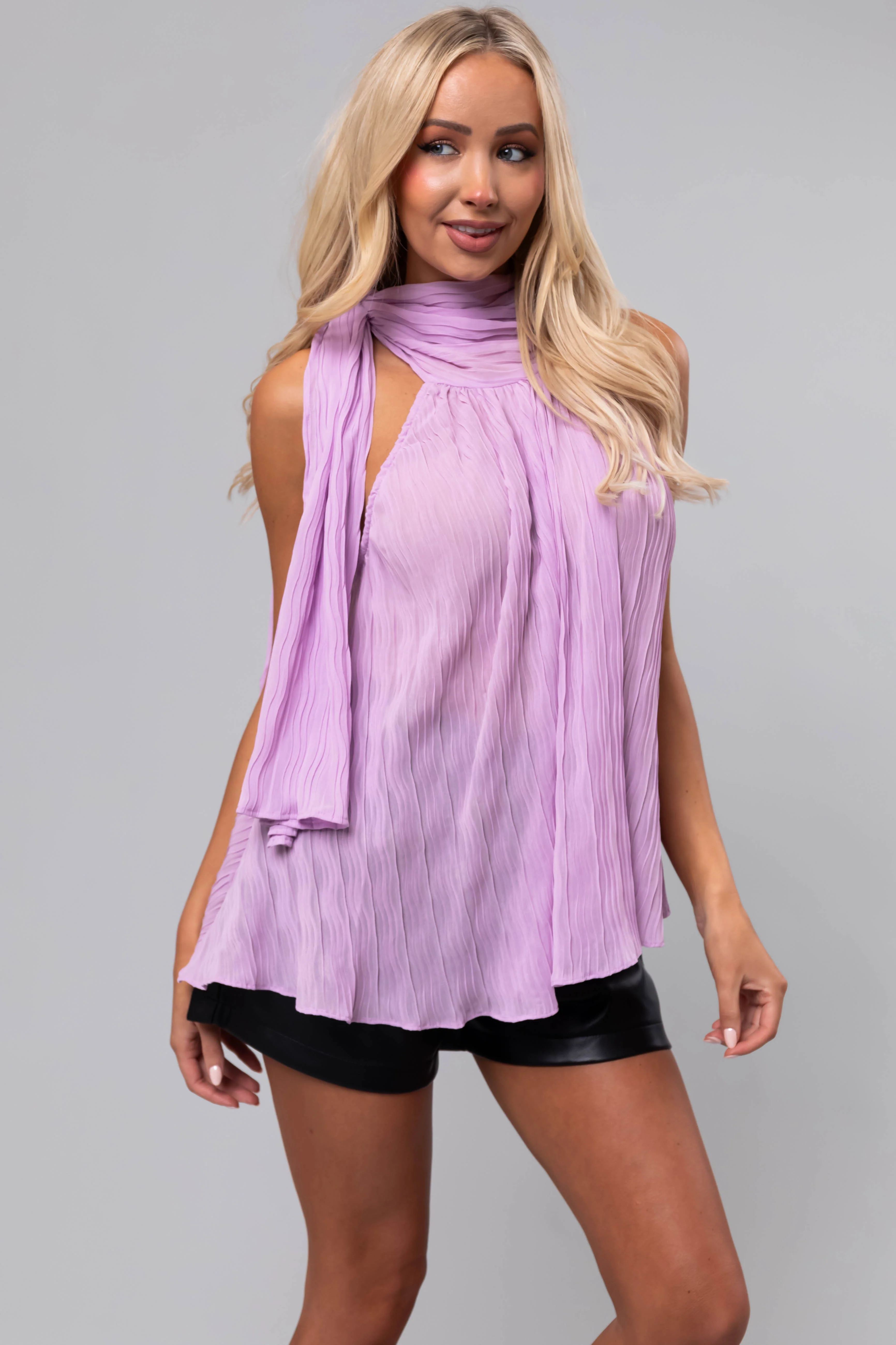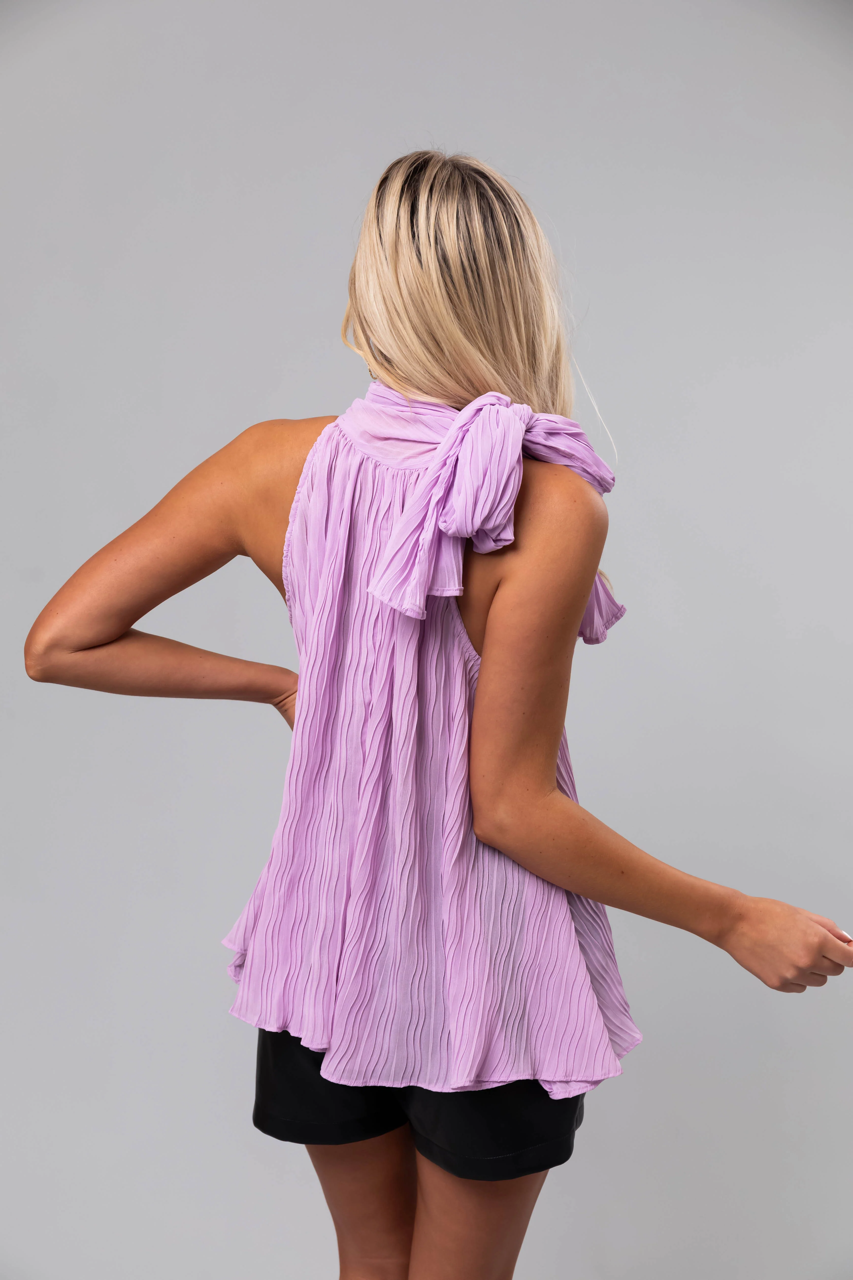 Lavender Sleeveless Neck Tie Pleated Blouse
