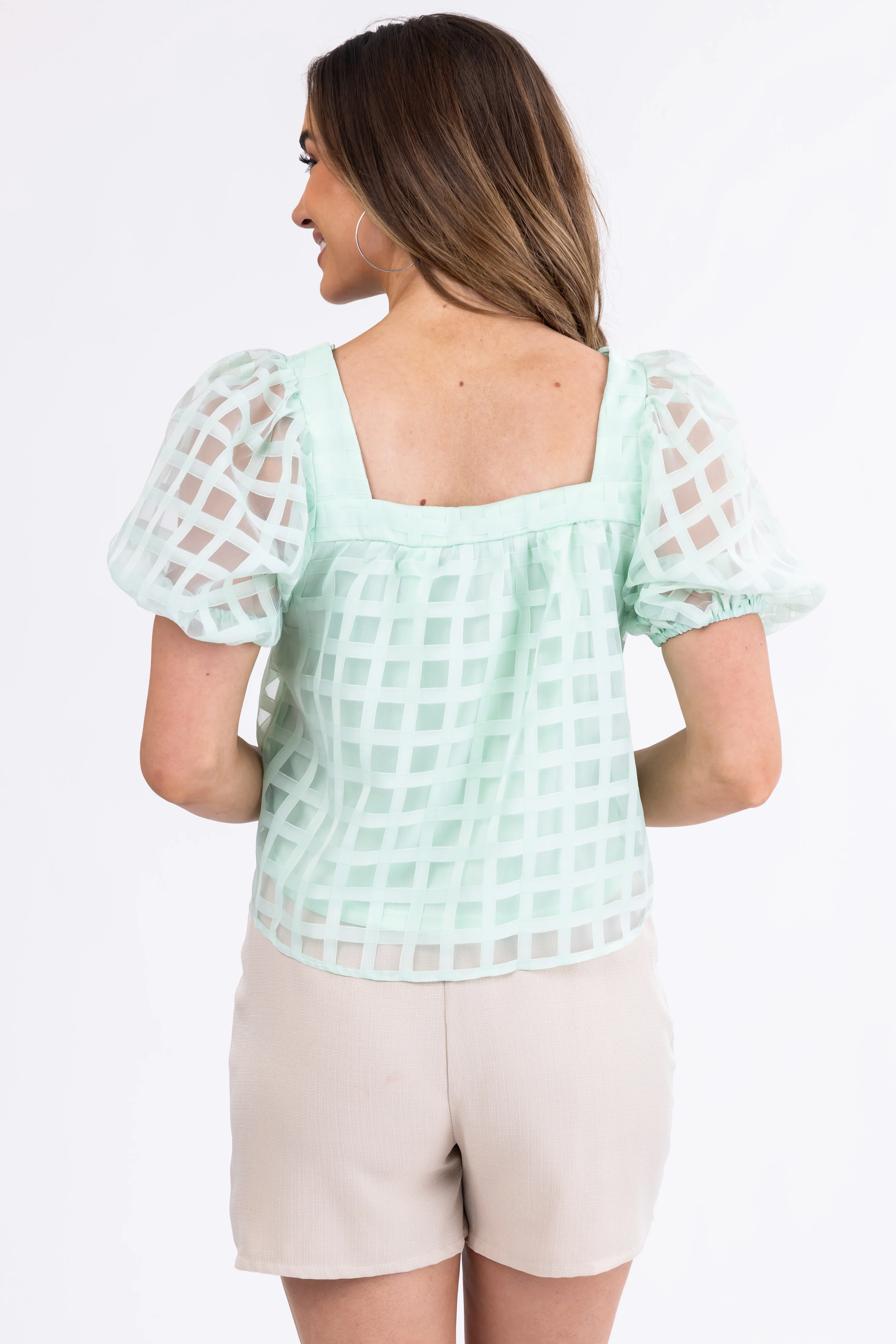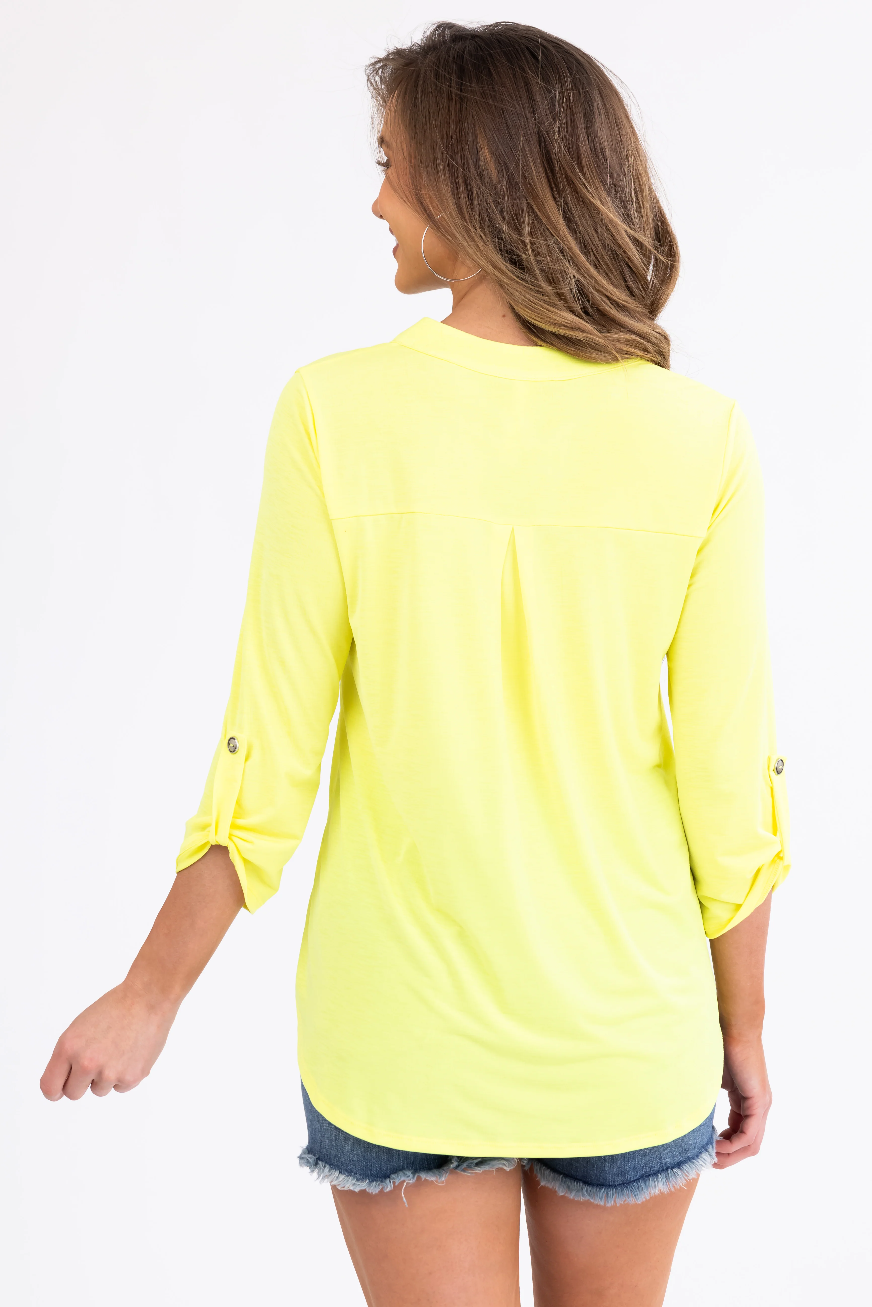 Neon Yellow Notch Neck Cuffed Sleeve Top